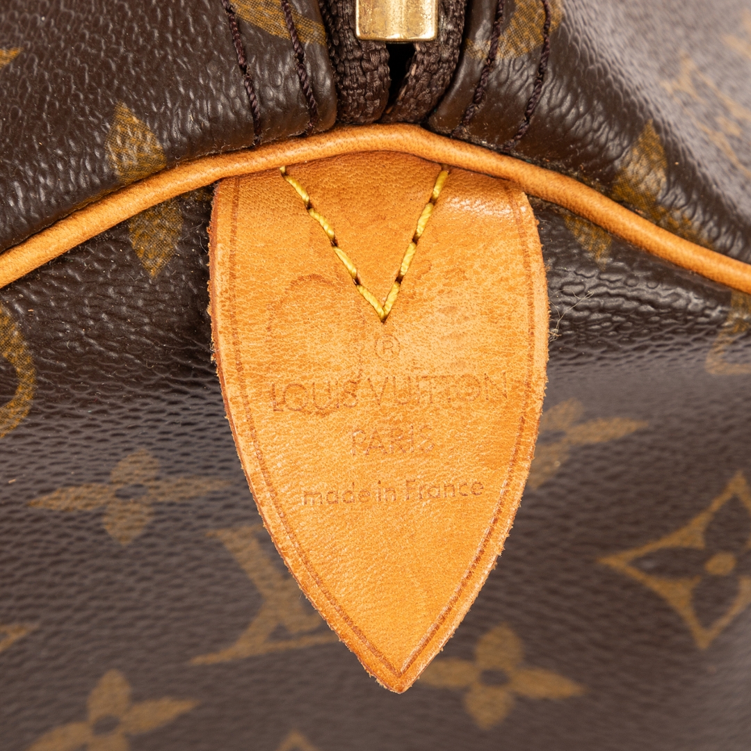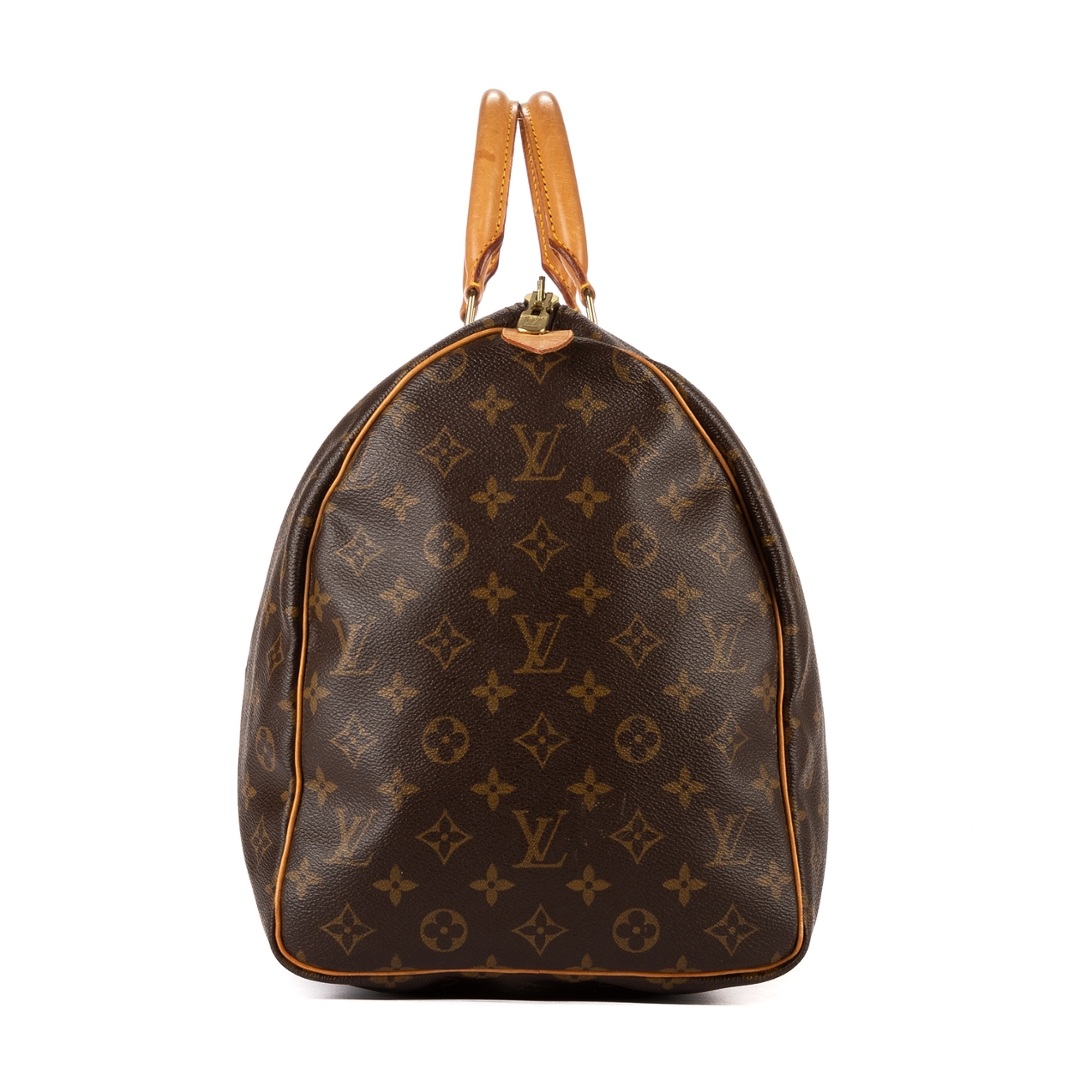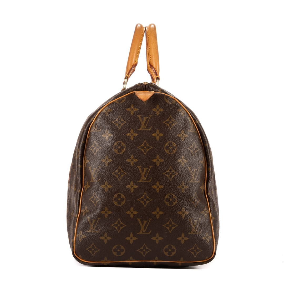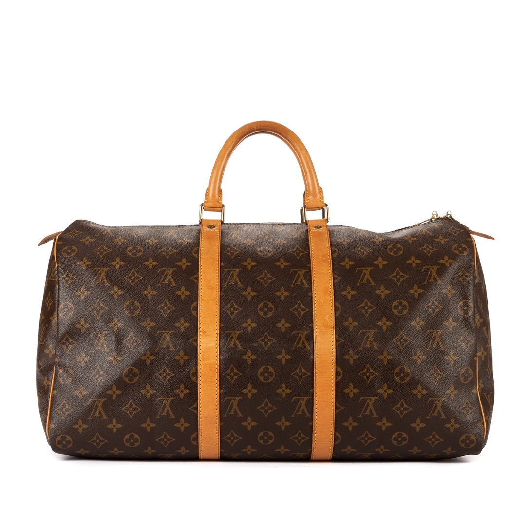 A vintage Louis Vuitton monogram coated canvas Keepall bag with a certificate of authenticity. Approximately 26cm height, 50cm width.