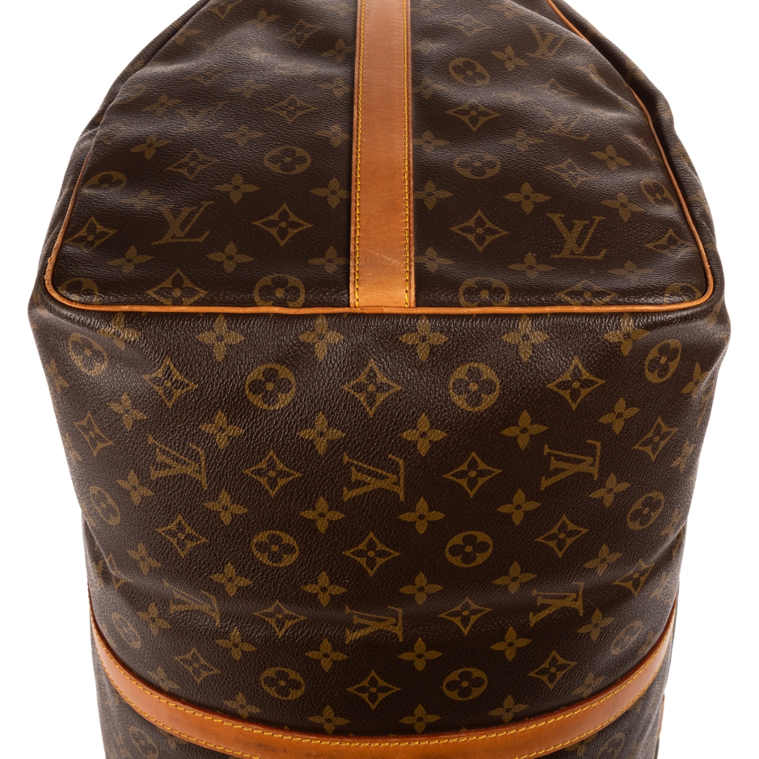 A vintage Louis Vuitton monogram coated canvas Keepall bag with a certificate of authenticity, Approximately 32cm height, 60cm width.
