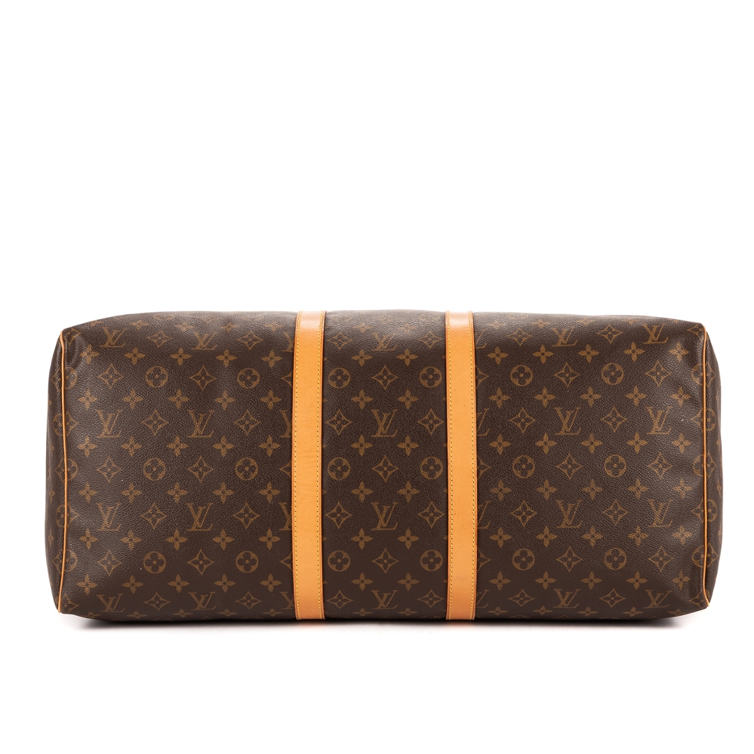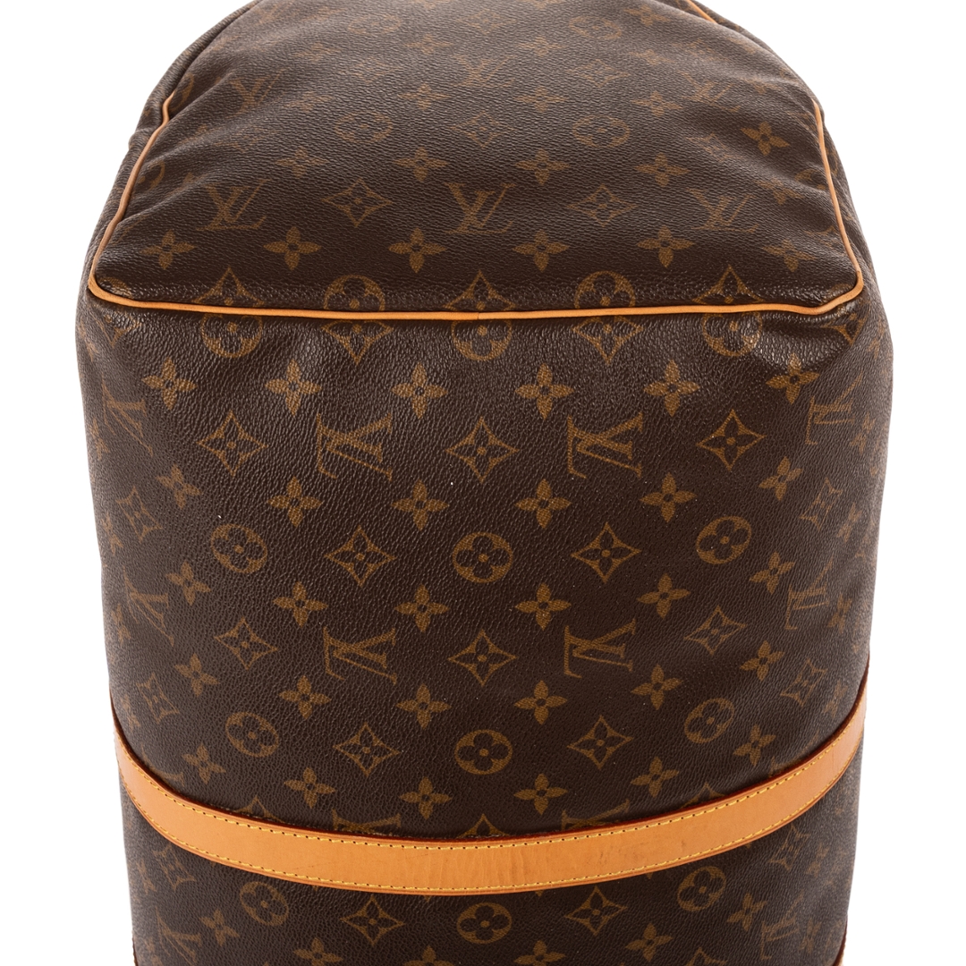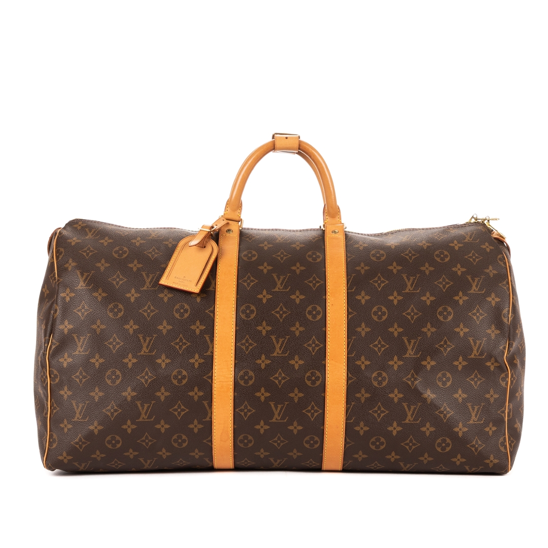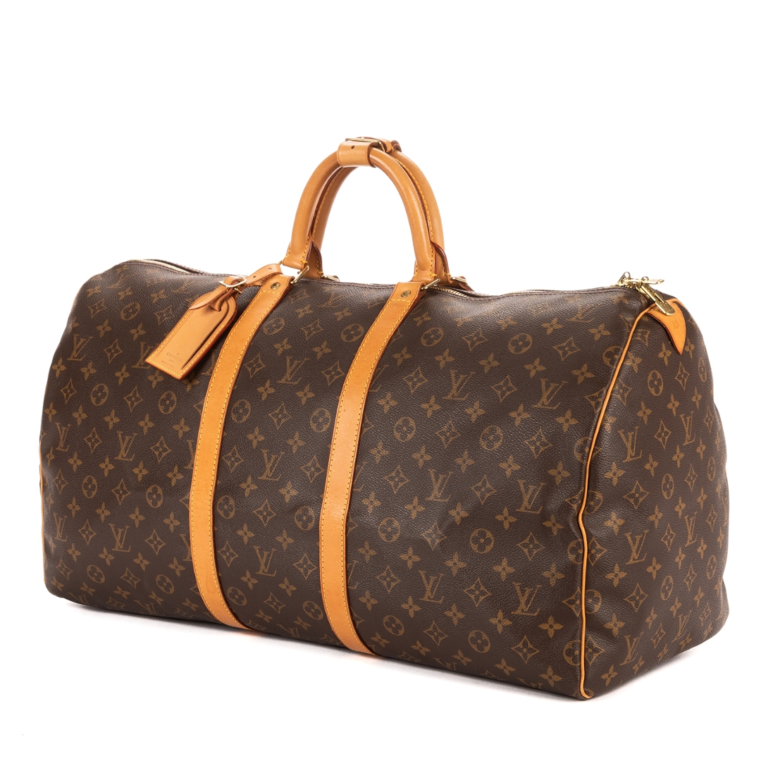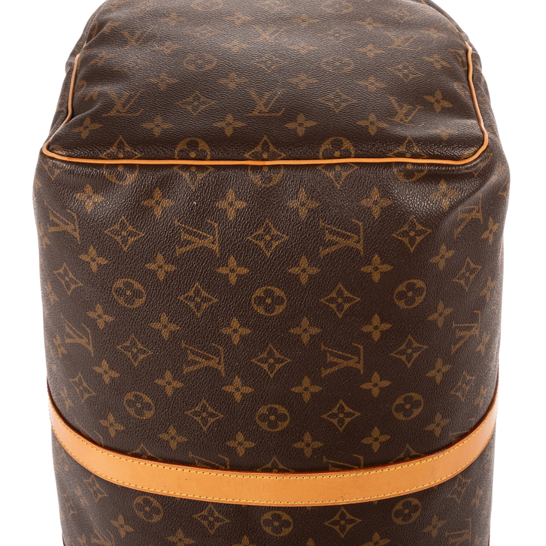 A vintage Louis Vuitton monogram coated canvas Keepall bag with a certificate of authenticity. Approximately 28cm height, 55cm width.