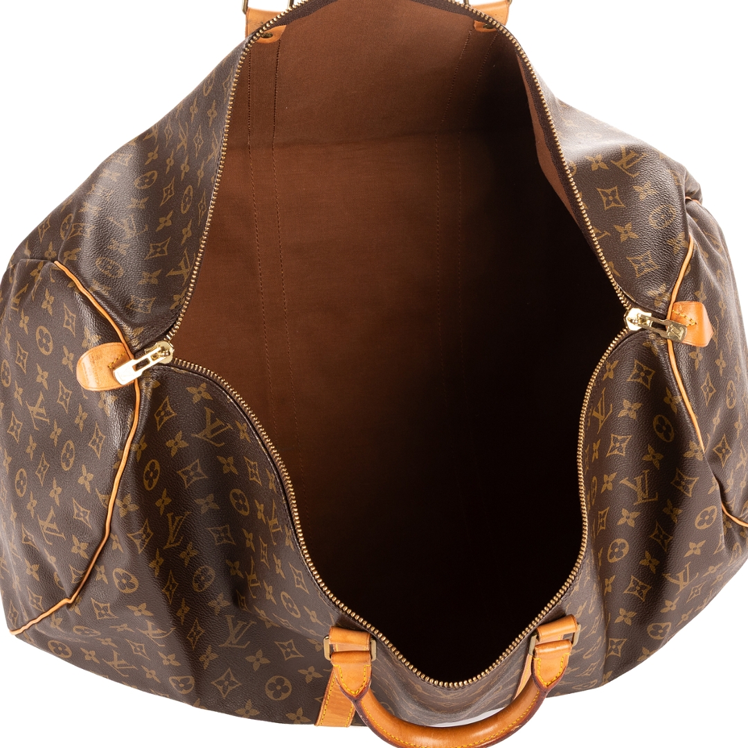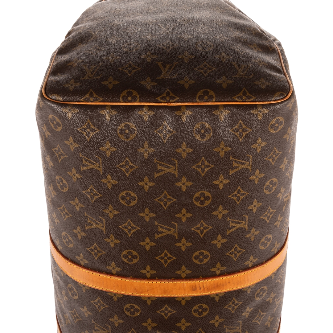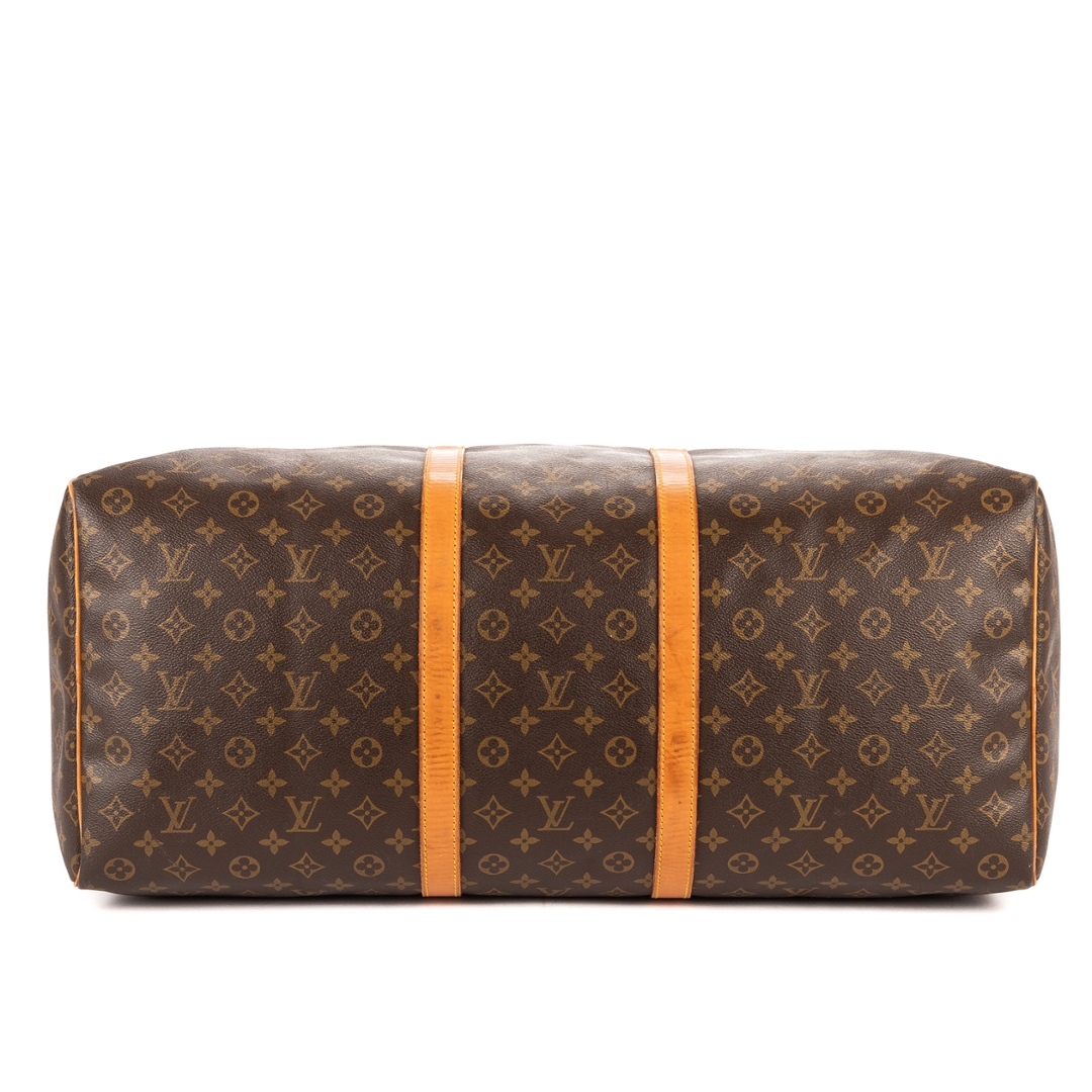 A vintage Louis Vuitton monogram coated canvas Keepall bag with a certificate of authenticity. Approximately 30cm height, 60cm width.
