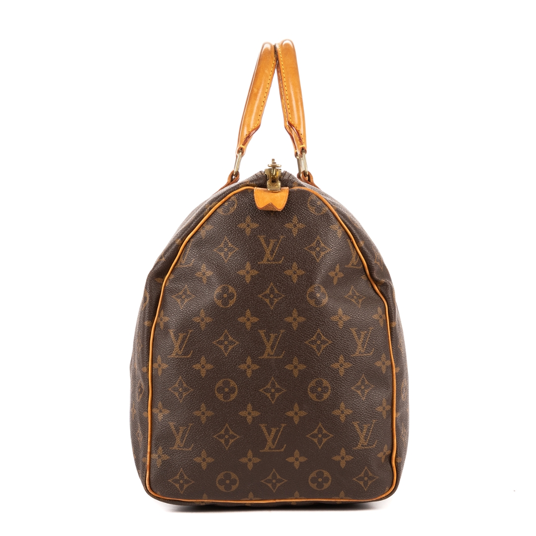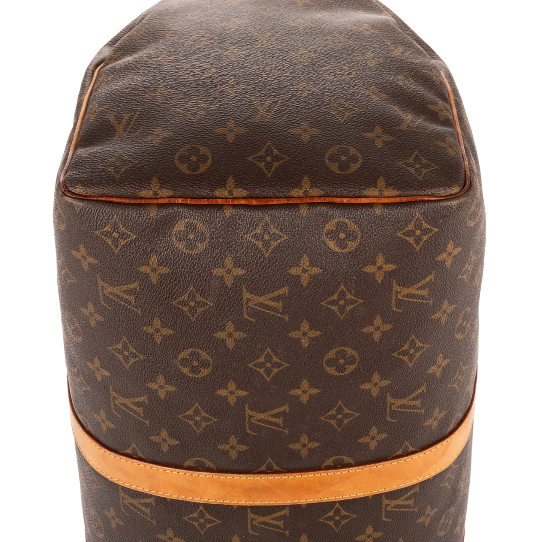 A vintage Louis Vuitton monogram coated canvas Keepall bag with a certificate of authenticity. Approximately 25cm height, 48cm width.