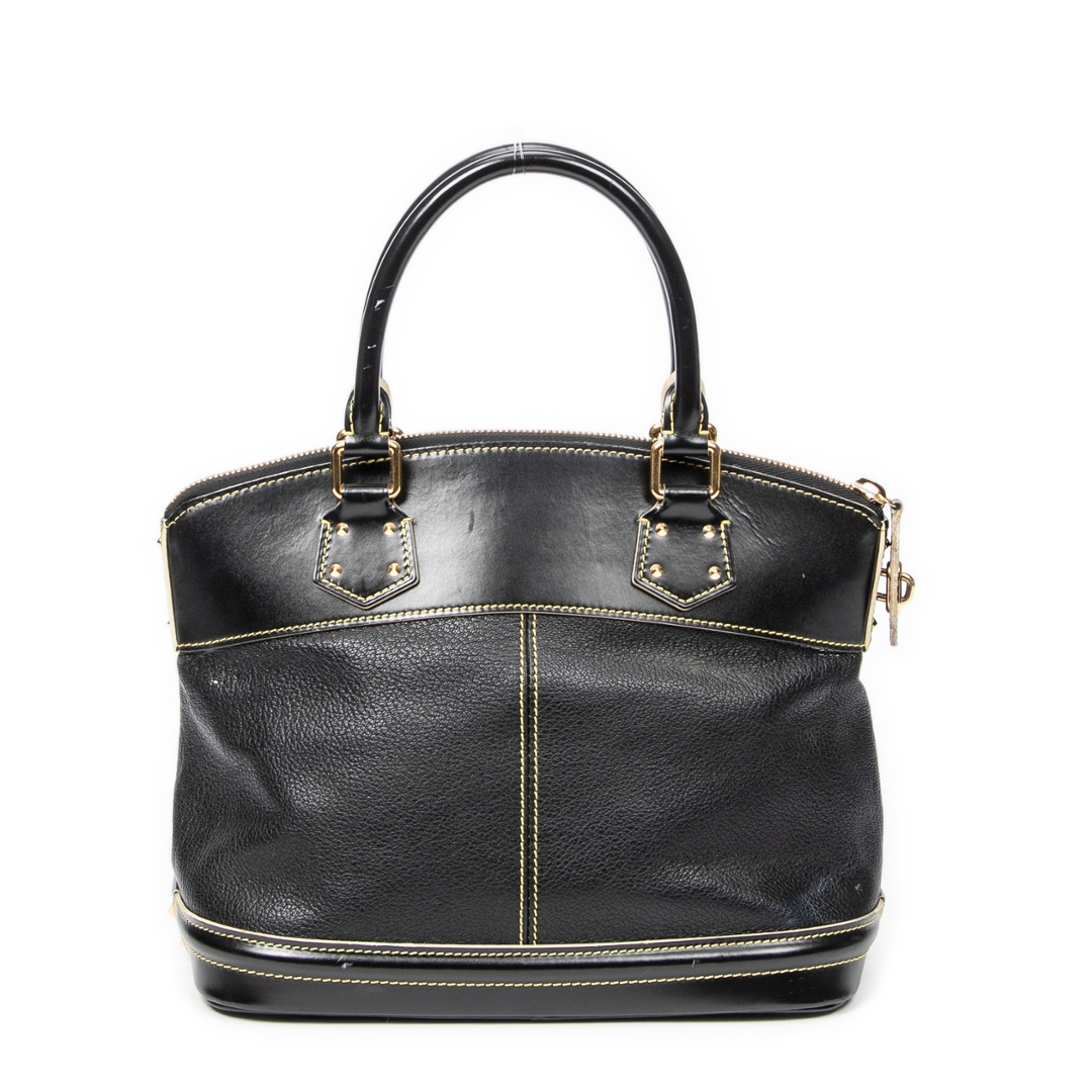 A vintage Louis Vuitton black calf leather Lockit bag with a certificate of authenticity. Approximately 25cm height, 28cm width.