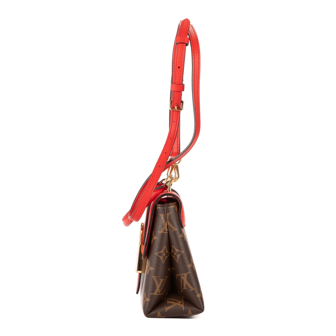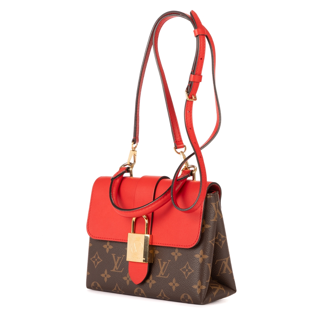 A vintage Louis Vuitton brown/red coated canvas Locky BB bag with a certificate of authenticity, Approximately 15cm height, 21cm width.