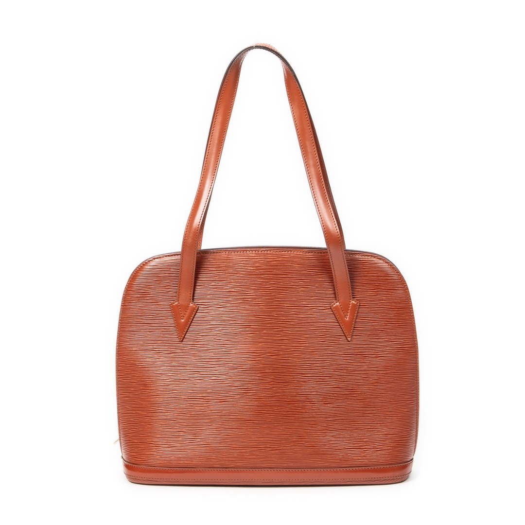 A vintage Louis Vuitton tan calf leather Lussac bag with a certificate of authenticity. Approximately 30cm height, 38cm width.
