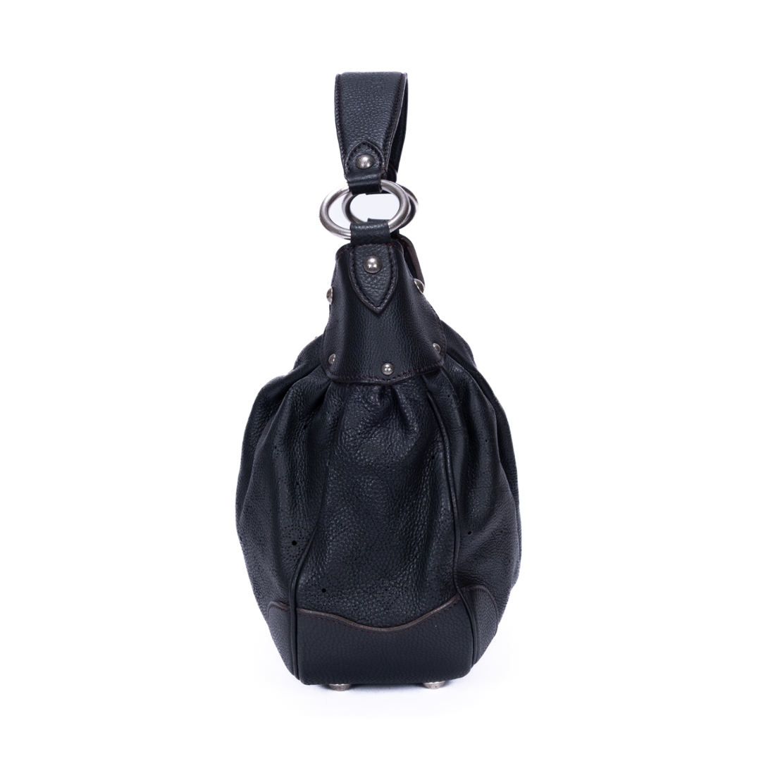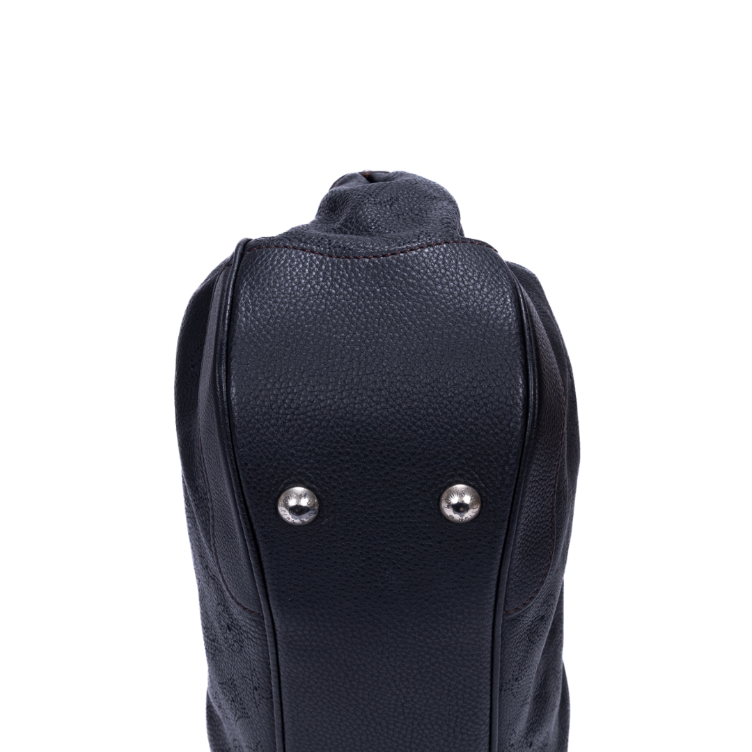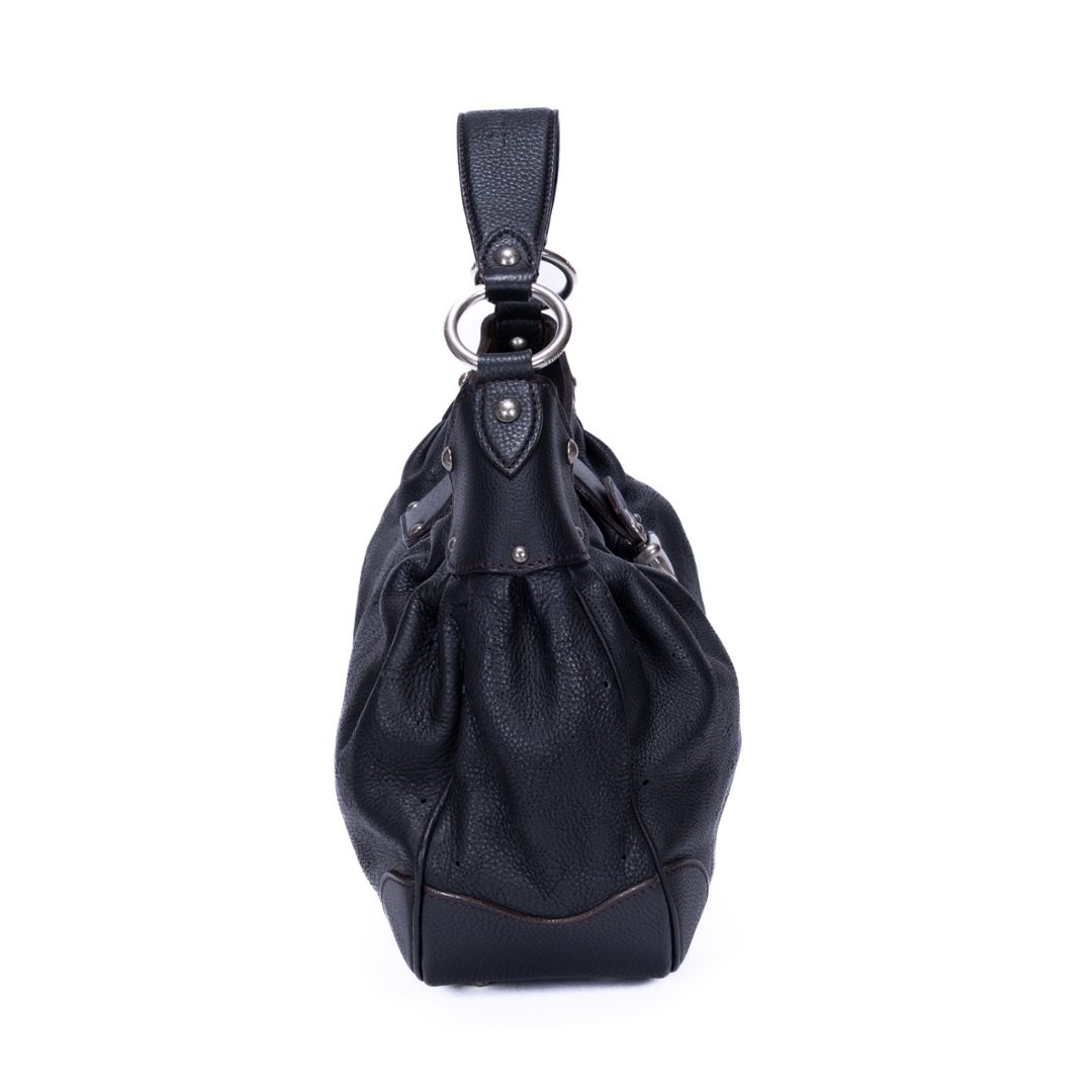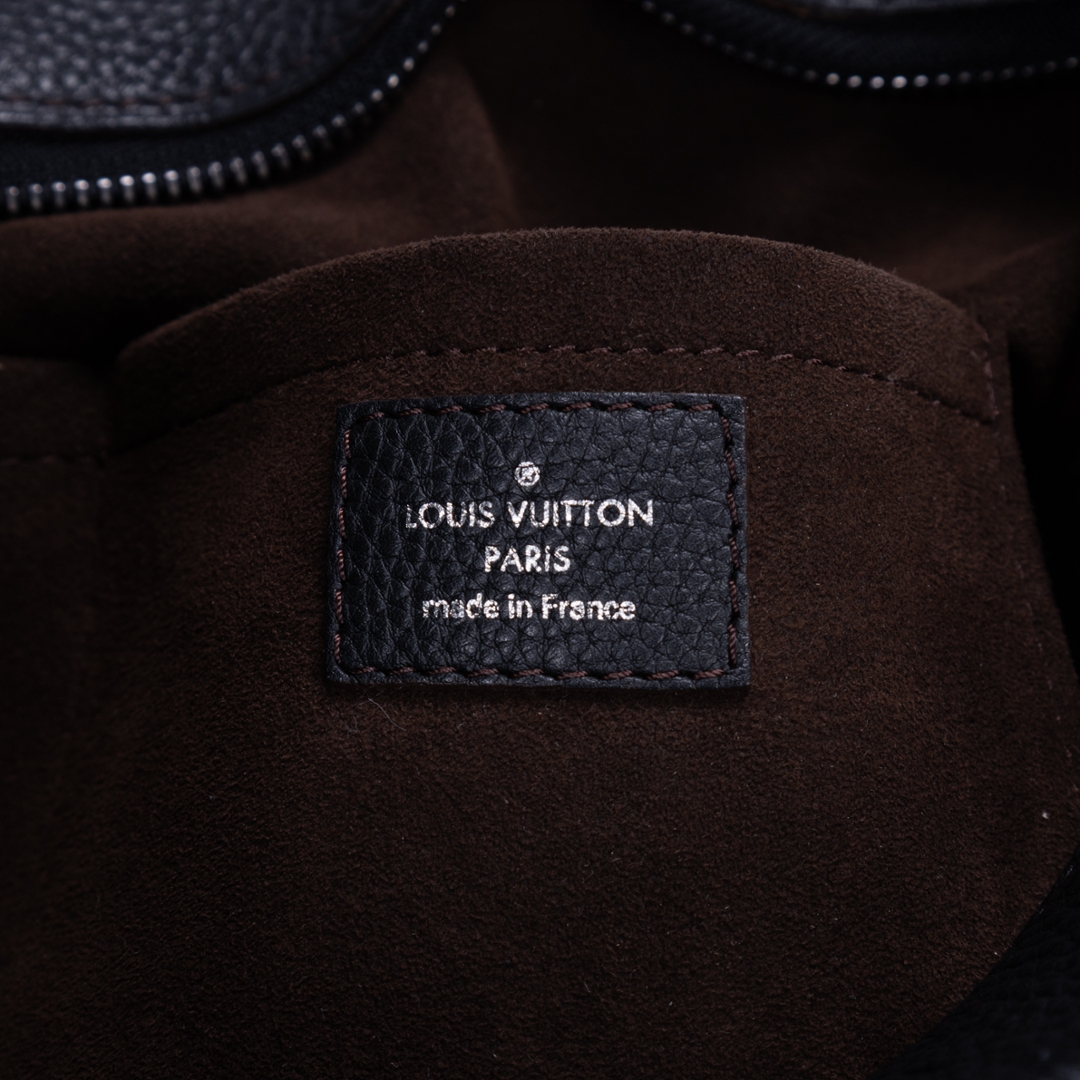 A vintage Louis Vuitton black calf leather Mahina Solar bag with a certificate of authenticity. Approximately 32cm height, 39cm width.
