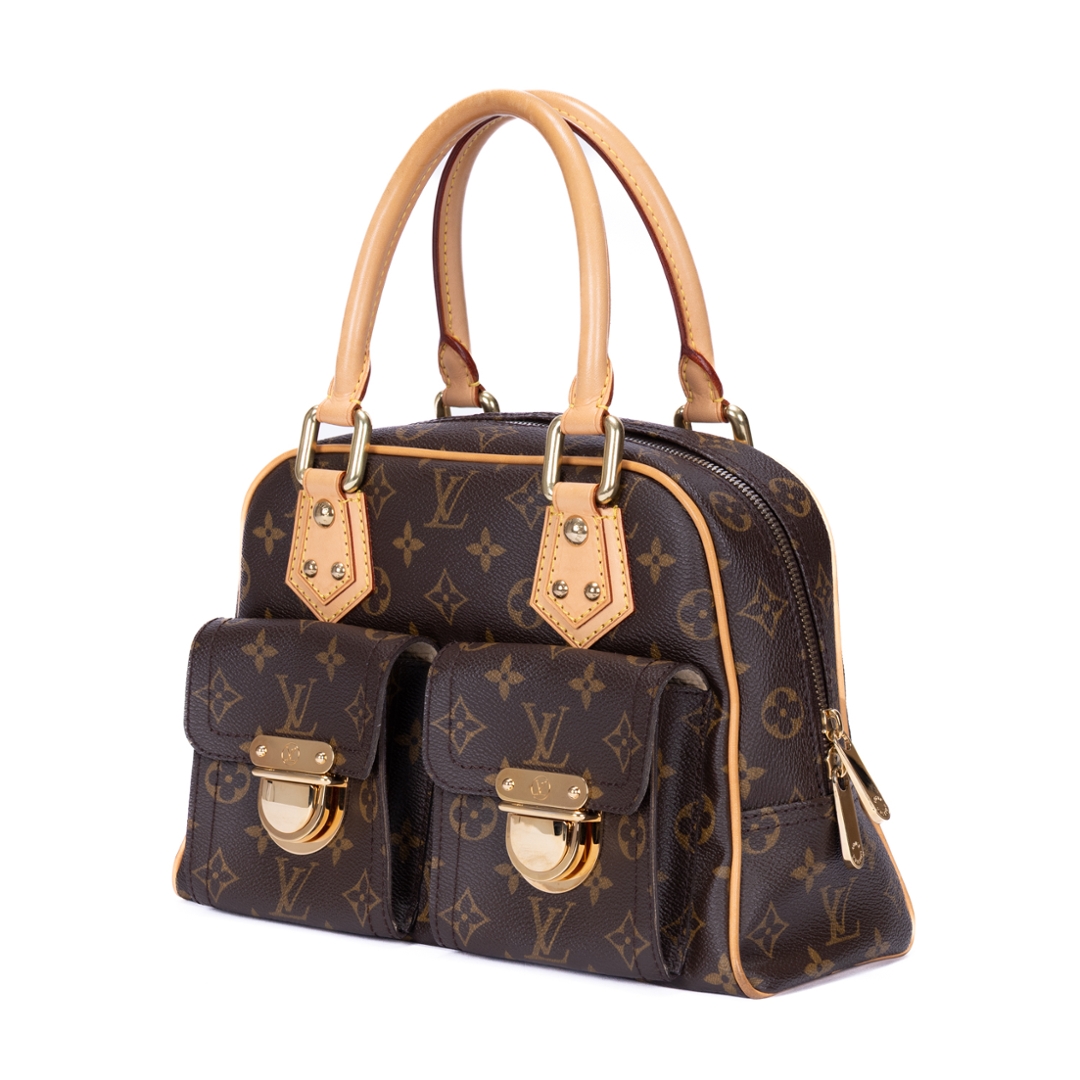 A vintage Louis Vuitton monogram coated canvas Manhattan bag with a certificate of authenticity. Approximately 21cm height, 30cm width.