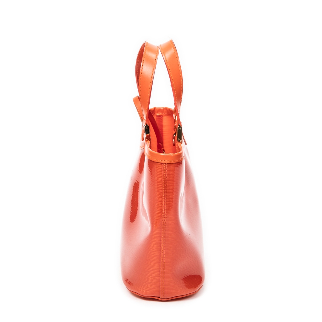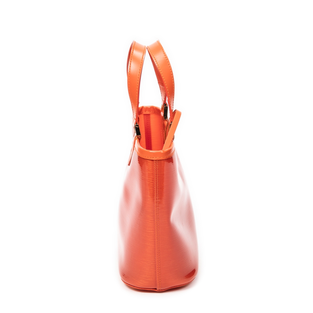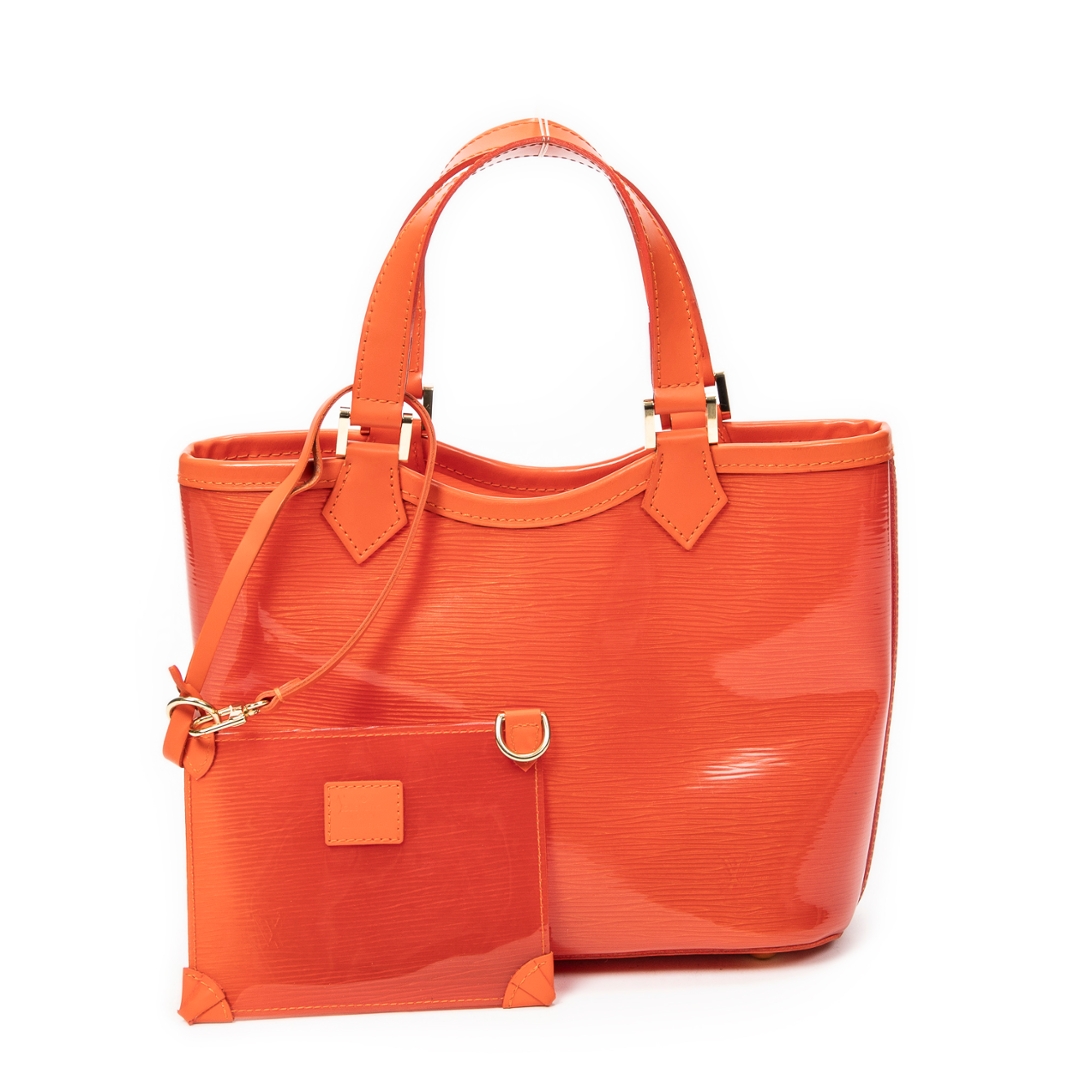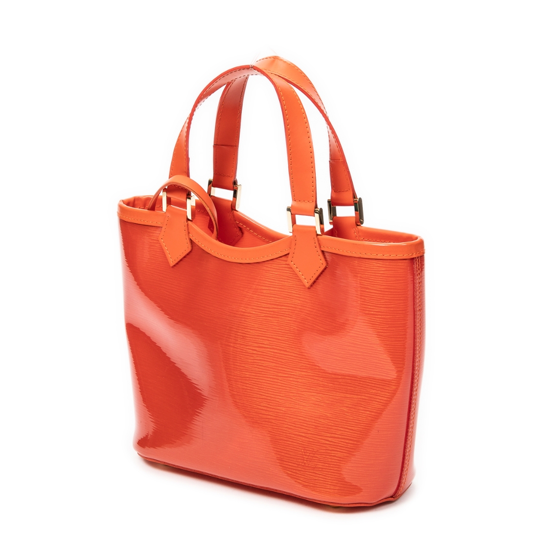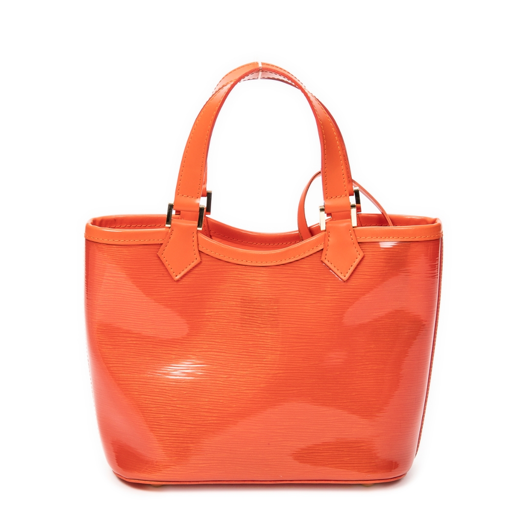 A vintage Louis Vuitton orange calf leather Mini Lagoon Bay bag with a certificate of authenticity. Approximately 20cm height, 24cm width.