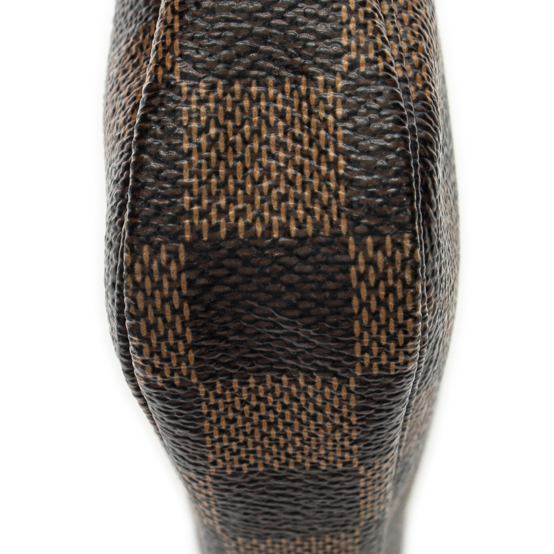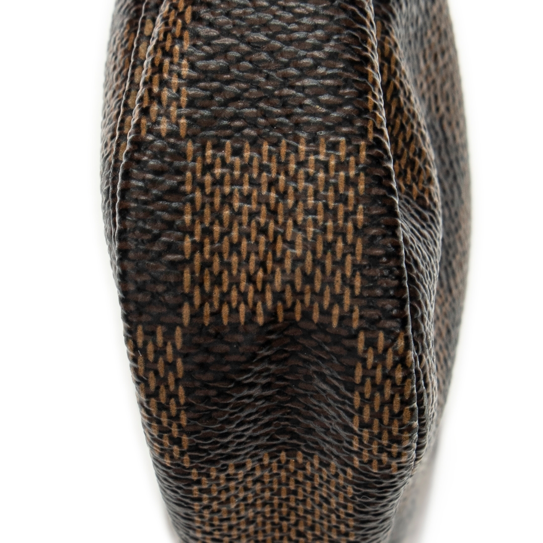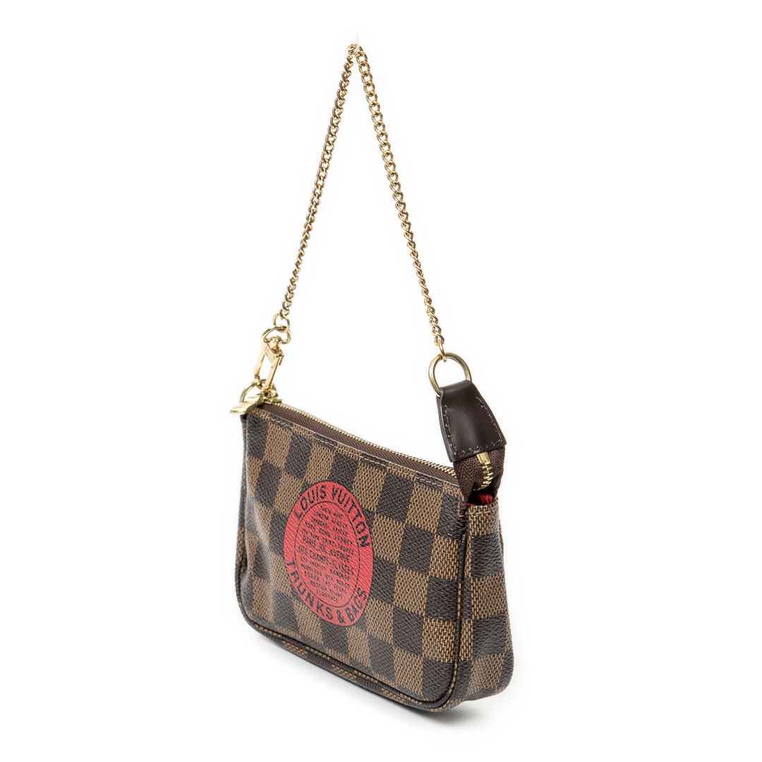 A vintage Louis Vuitton damier coated canvas Mini Pochette Accessoires bag with a certificate of authenticity, Approximately 10cm height, 15cm width.