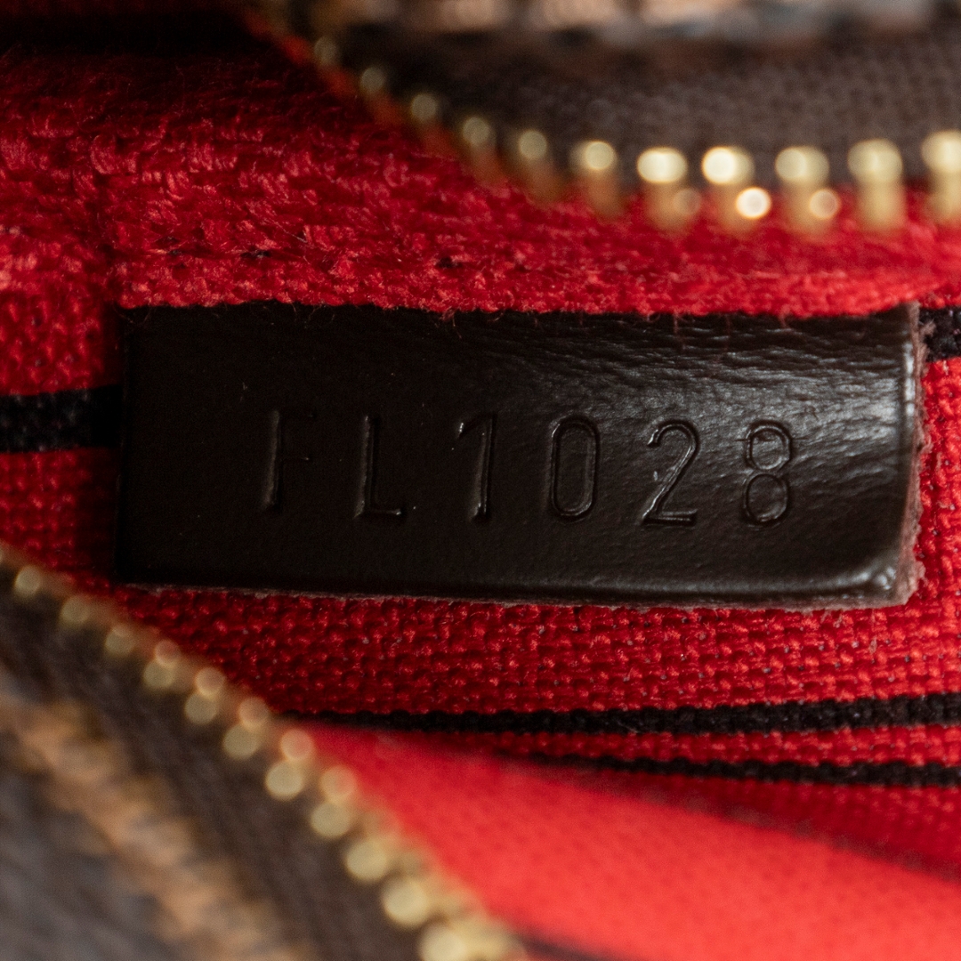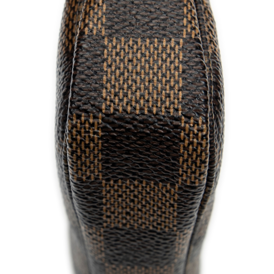 A vintage Louis Vuitton brown/red coated canvas Mini Pochette Accessoires bag with a certificate of authenticity. Approximately 10cm height, 15cm width.