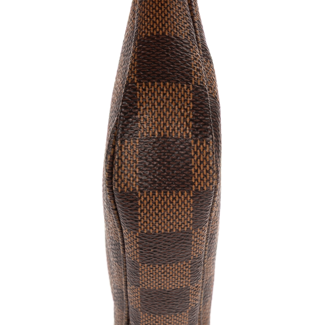 A vintage Louis Vuitton damier coated canvas Mini Pochette Accessoires bag with a certificate of authenticity. Approximately 10cm height, 15cm width.