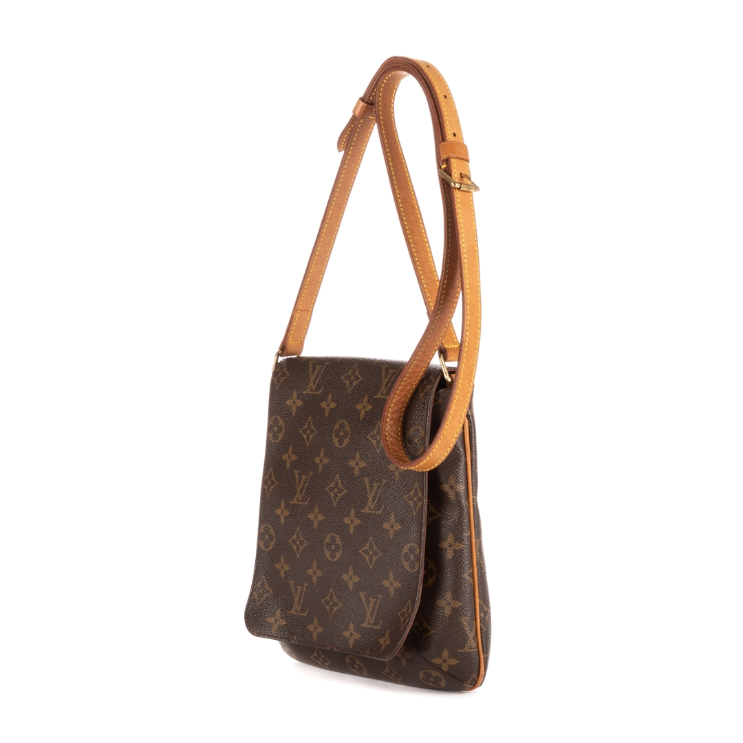 A vintage Louis Vuitton monogram coated canvas Musette Salsa bag with a certificate of authenticity. Approximately 22cm height, 23cm width.