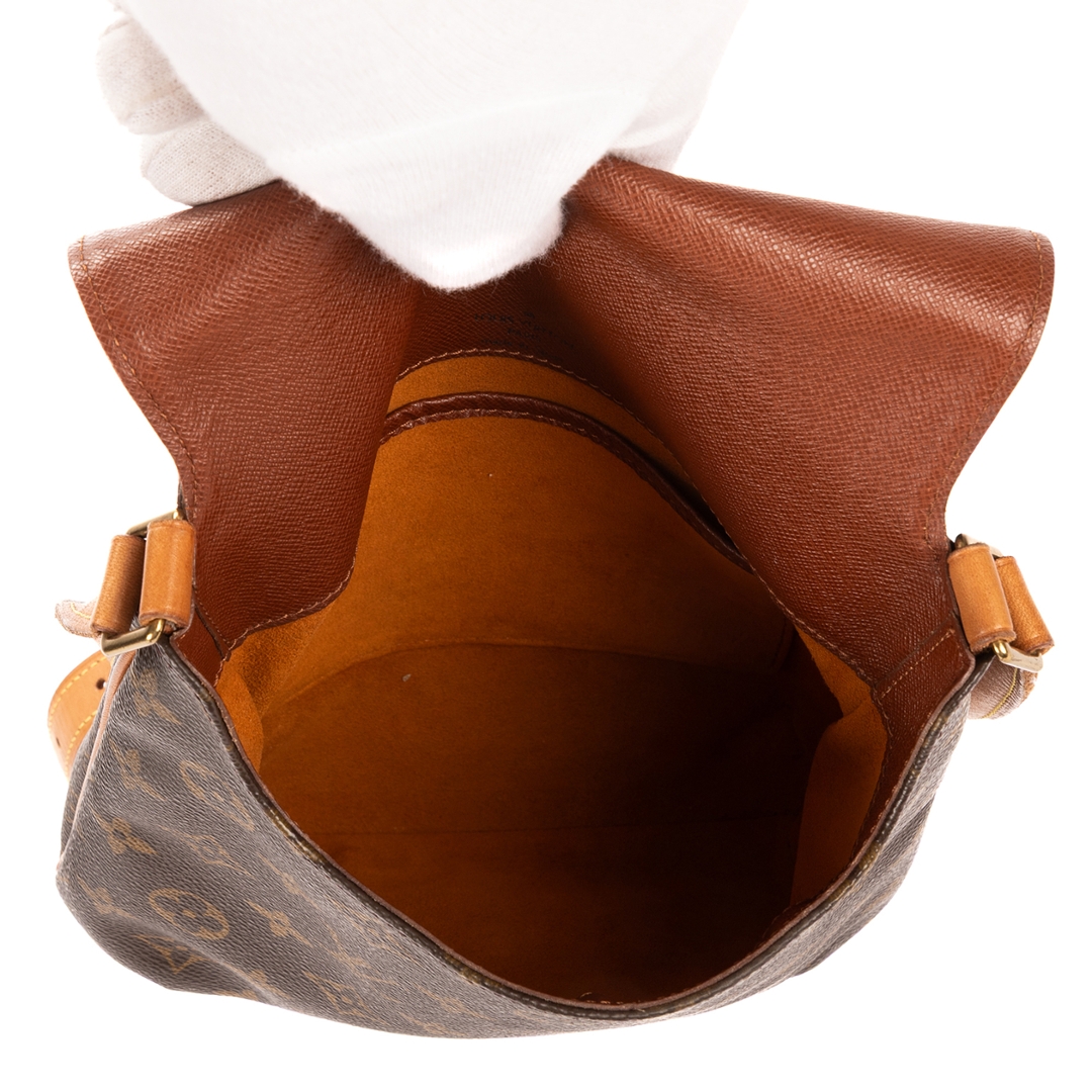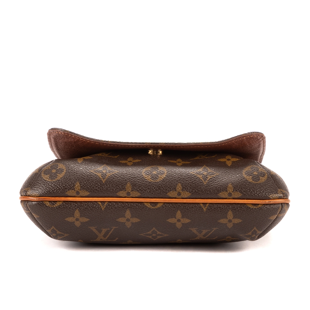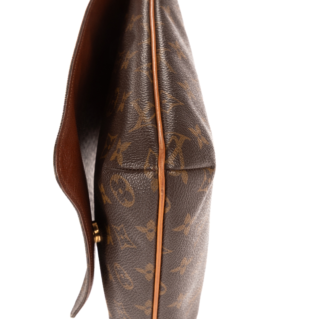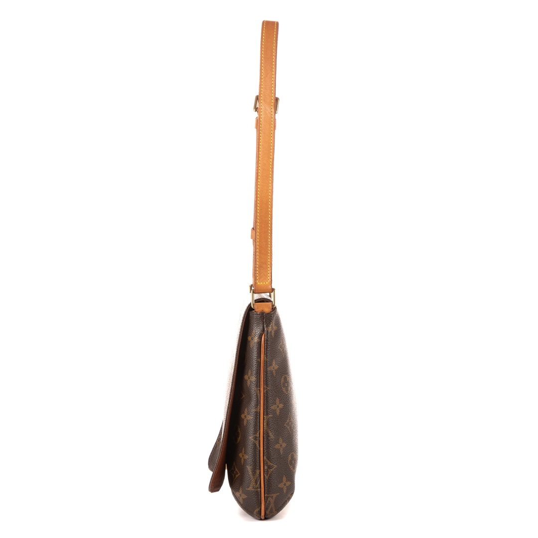 A vintage Louis Vuitton Musette Salsa bag crafted in the iconic brown Monogram coated canvas, complemented by natural leather trim and gold-tone hardware. This refined shoulder style highlights the house’s timeless design, featuring a sleek flap-front closure and a softly structured silhouette.