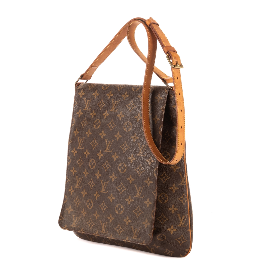 A vintage Louis Vuitton Musette Salsa Long Strap bag crafted in the signature brown Monogram coated canvas, paired with natural leather trim and gold-tone hardware. The clean, structured silhouette reflects the timeless appeal of this classic shoulder style, elevated by the longer adjustable strap for a more versatile, modern look.