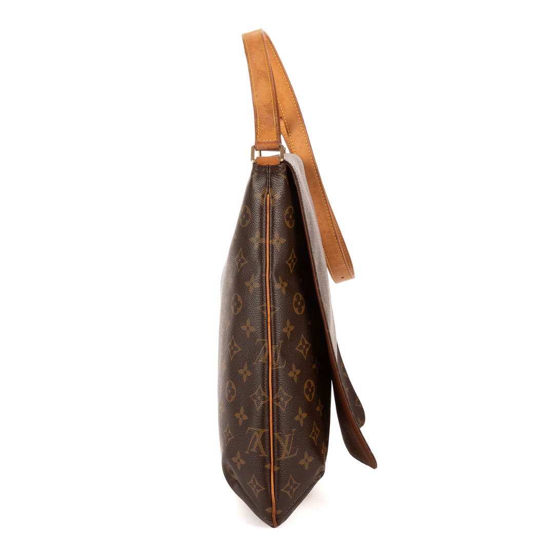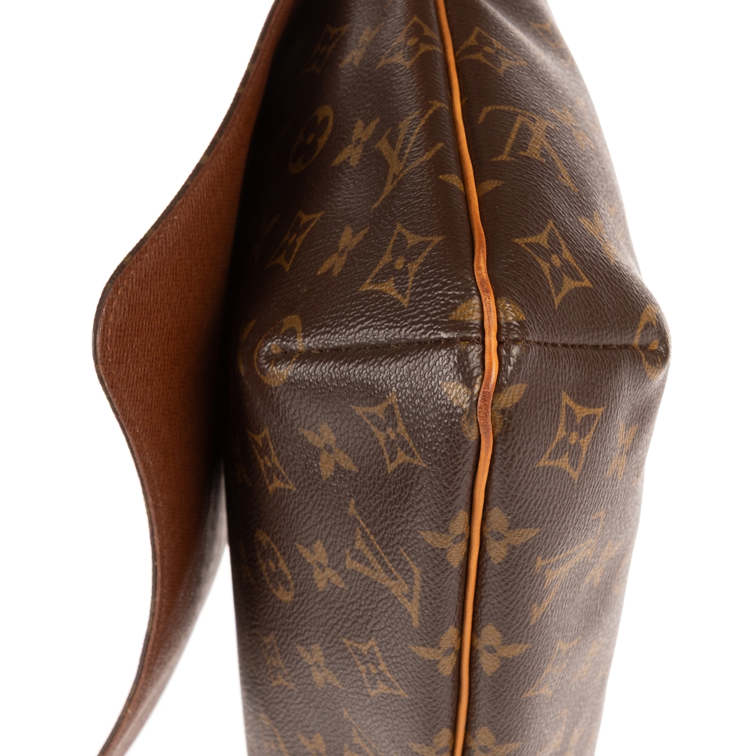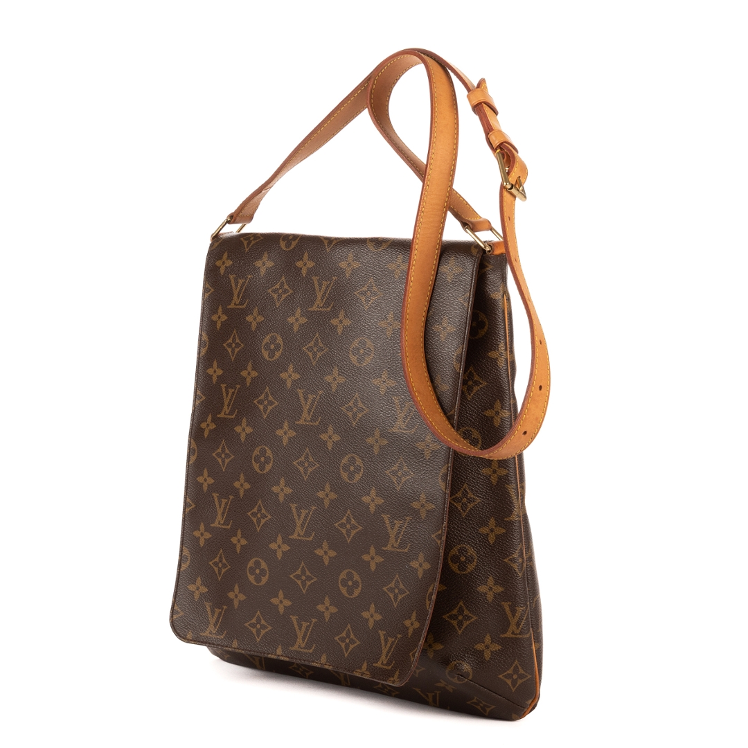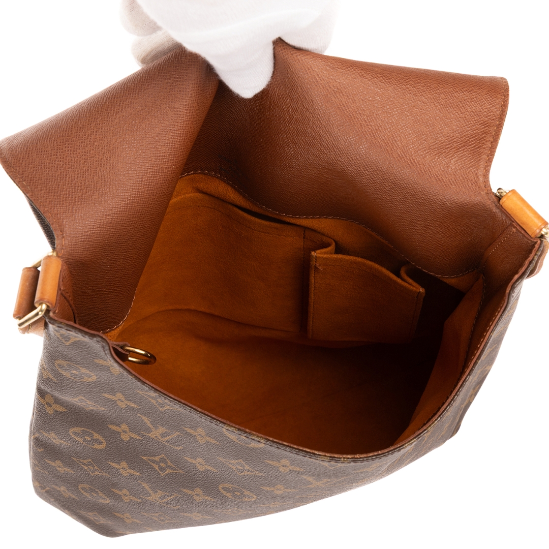 A vintage Louis Vuitton Musette Salsa Long Strap bag crafted in the iconic brown Monogram coated canvas, complemented by natural leather trim and gold-tone hardware. The sleek, structured silhouette highlights the enduring appeal of this classic design, with the longer adjustable strap offering added versatility for modern wear.