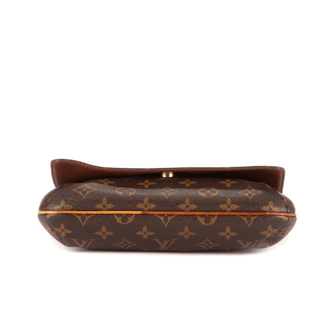 A vintage Louis Vuitton monogram coated canvas Musette Tango bag with a certificate of authenticity. Approximately 20cm height, 25cm width.