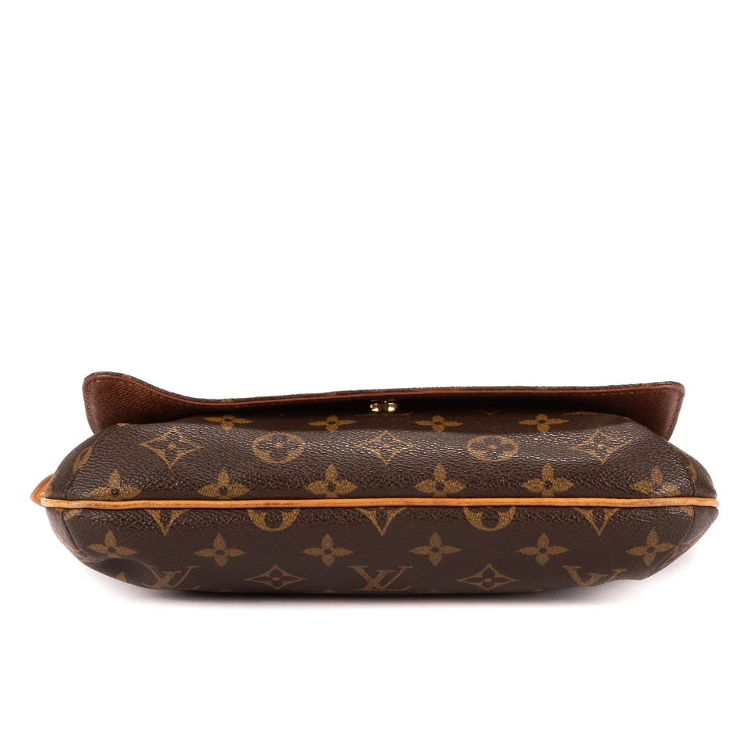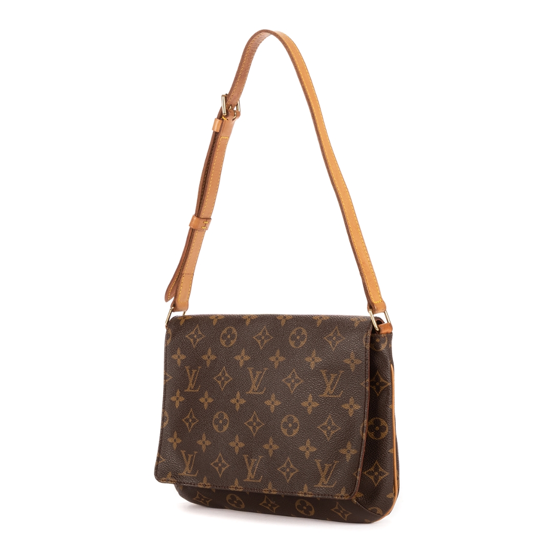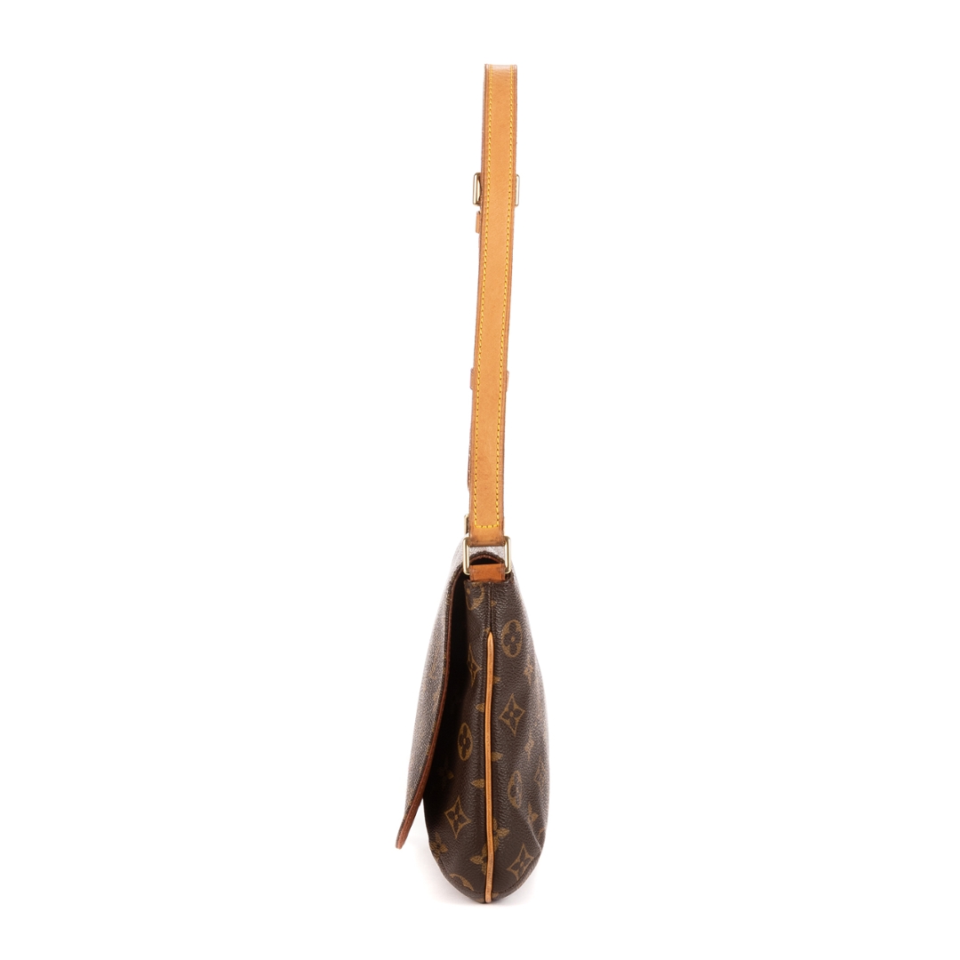 A vintage Louis Vuitton monogram coated canvas Musette Tango bag with a certificate of authenticity, Approximately 19cm height, 25cm width.