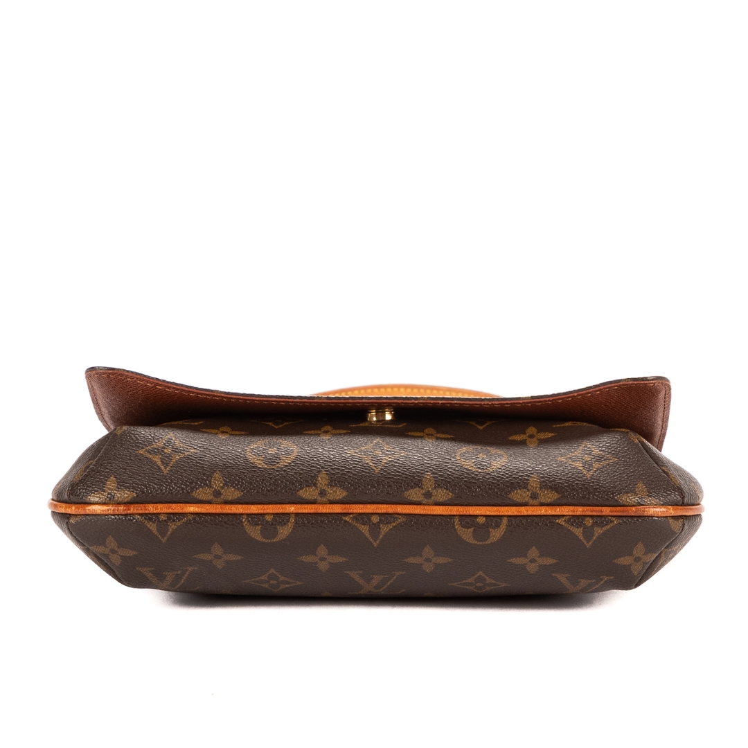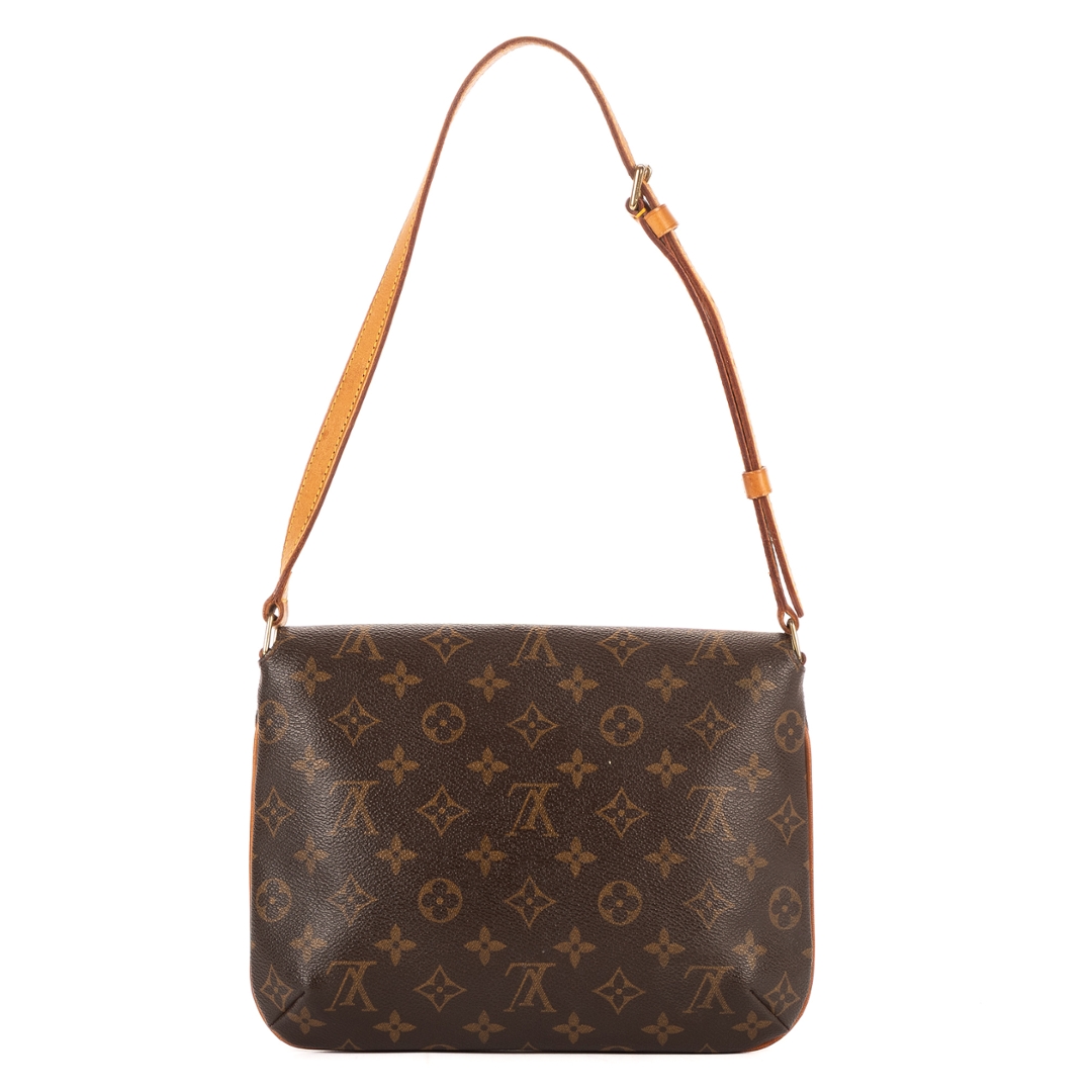 A vintage Louis Vuitton monogram coated canvas Musette Tango bag with a certificate of authenticity. Approximately 19cm height, 25cm width.
