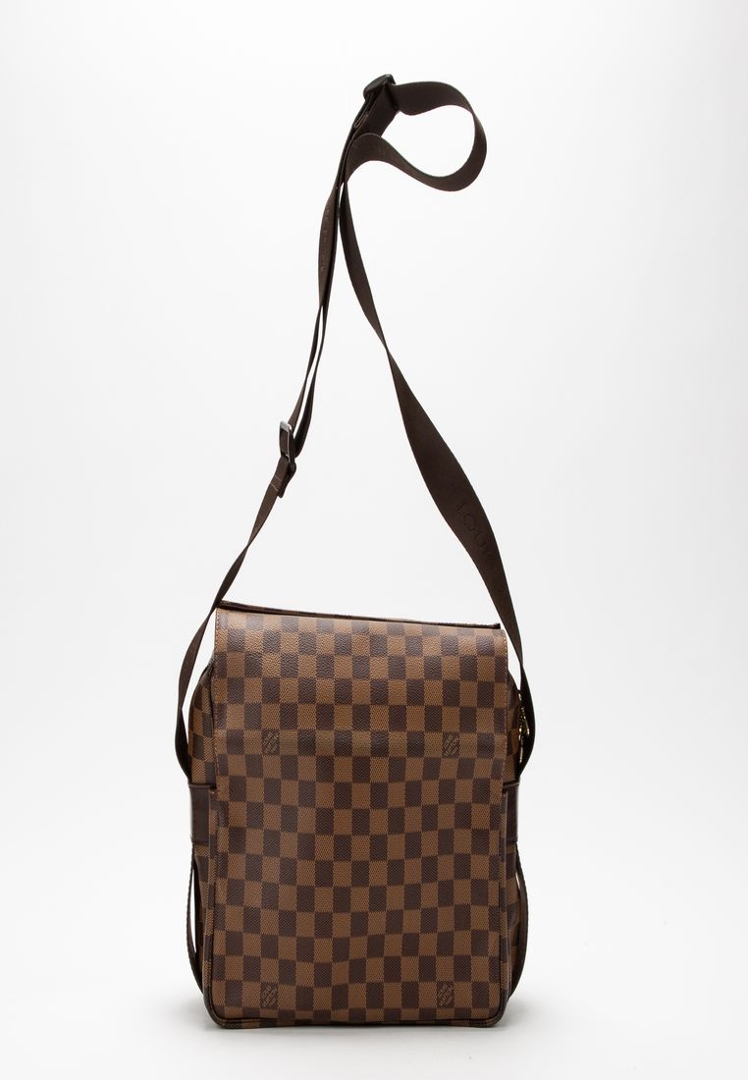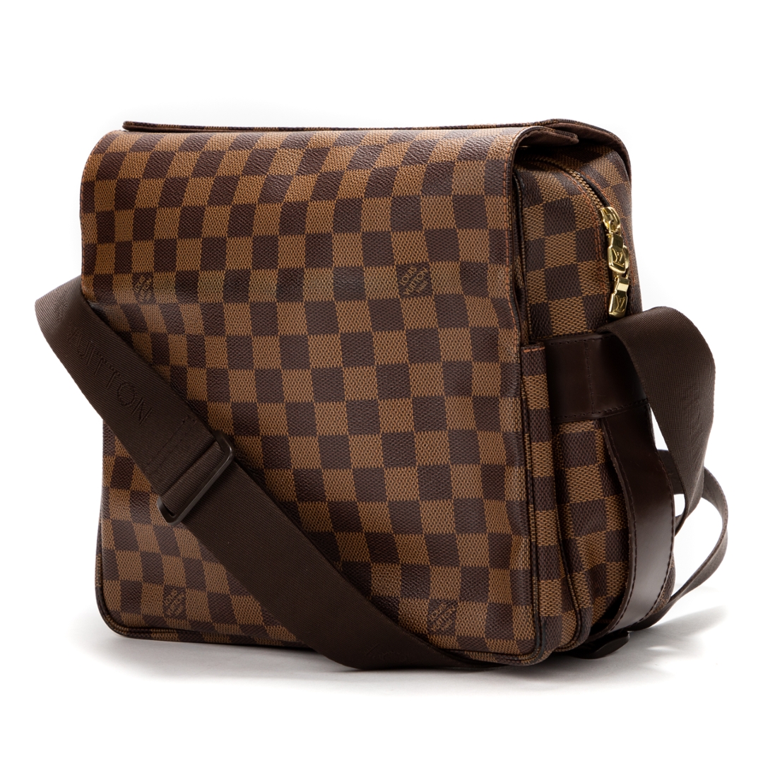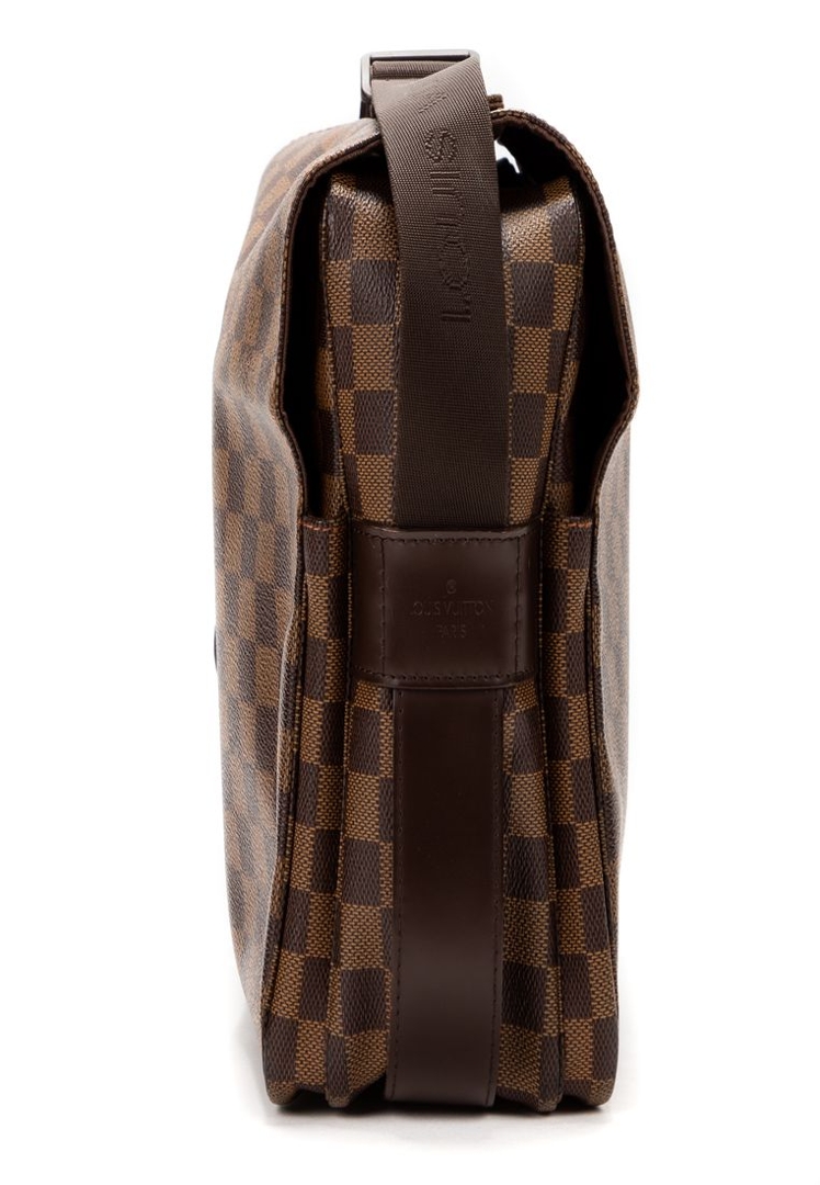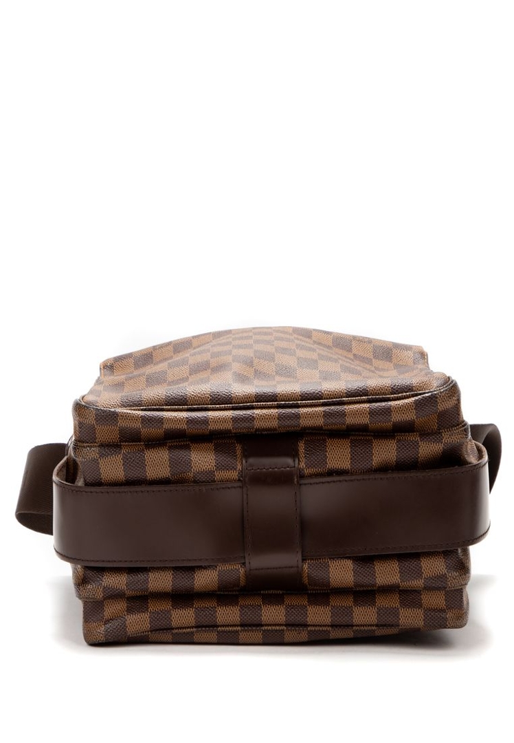 A vintage Louis Vuitton Naviglio bag crafted in the classic brown Damier Ebene coated canvas, complemented by dark leather trim and understated hardware. The structured, flap-front design delivers a refined yet practical aesthetic, with the signature checkerboard pattern offering a timeless alternative to the Monogram line.