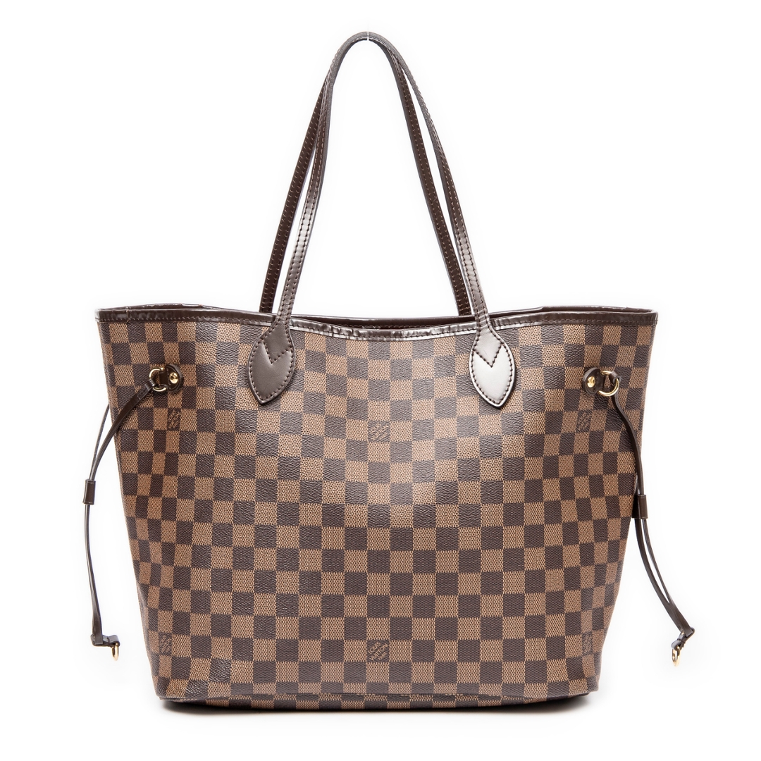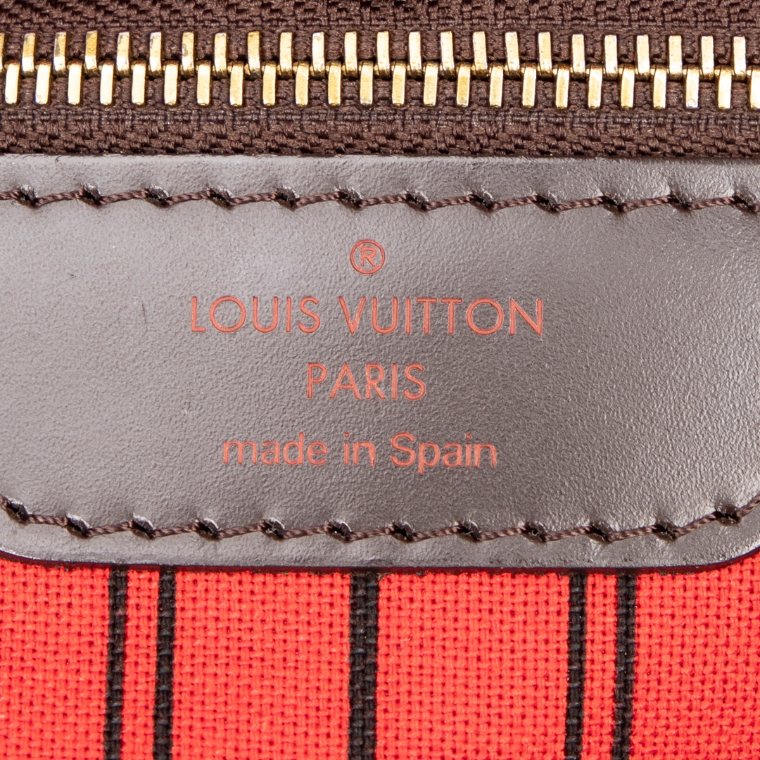 A vintage Louis Vuitton damier coated canvas Neverfull bag with a certificate of authenticity, Approximately 29cm height, 32cm width.