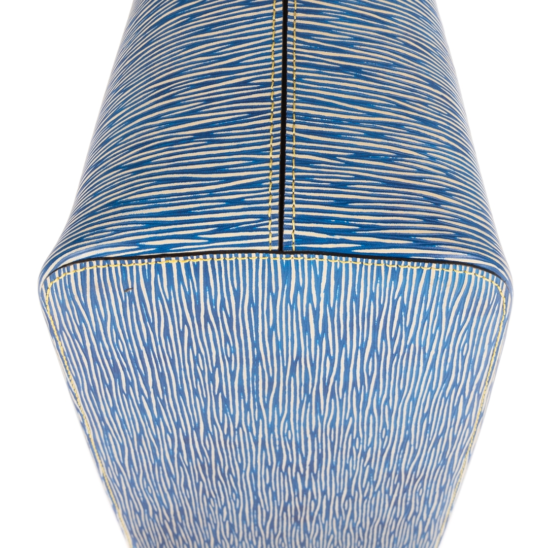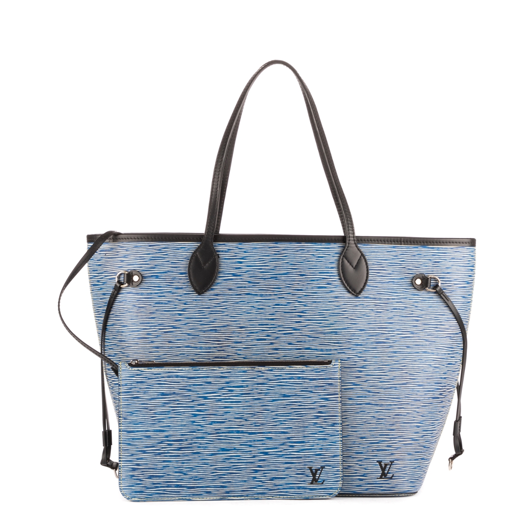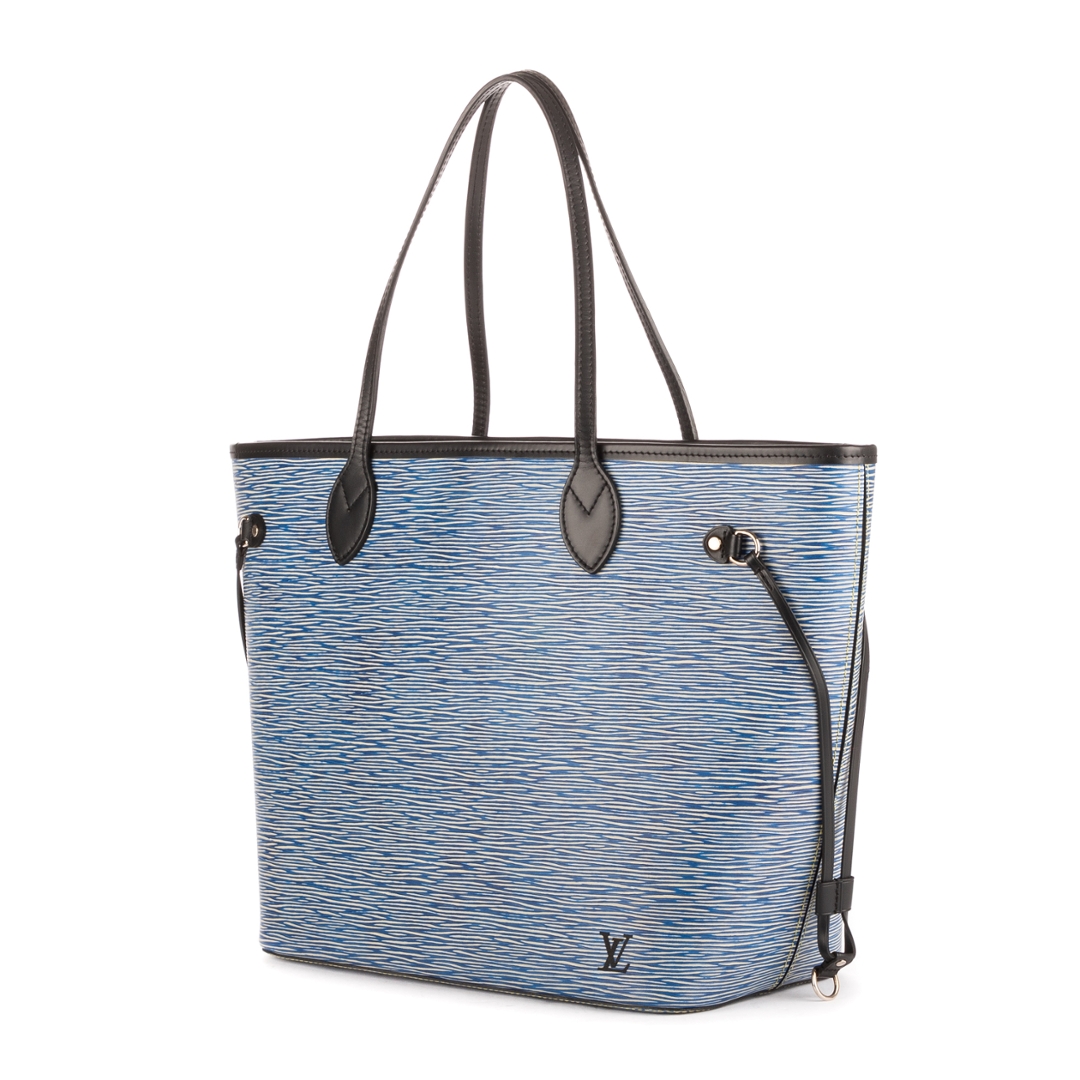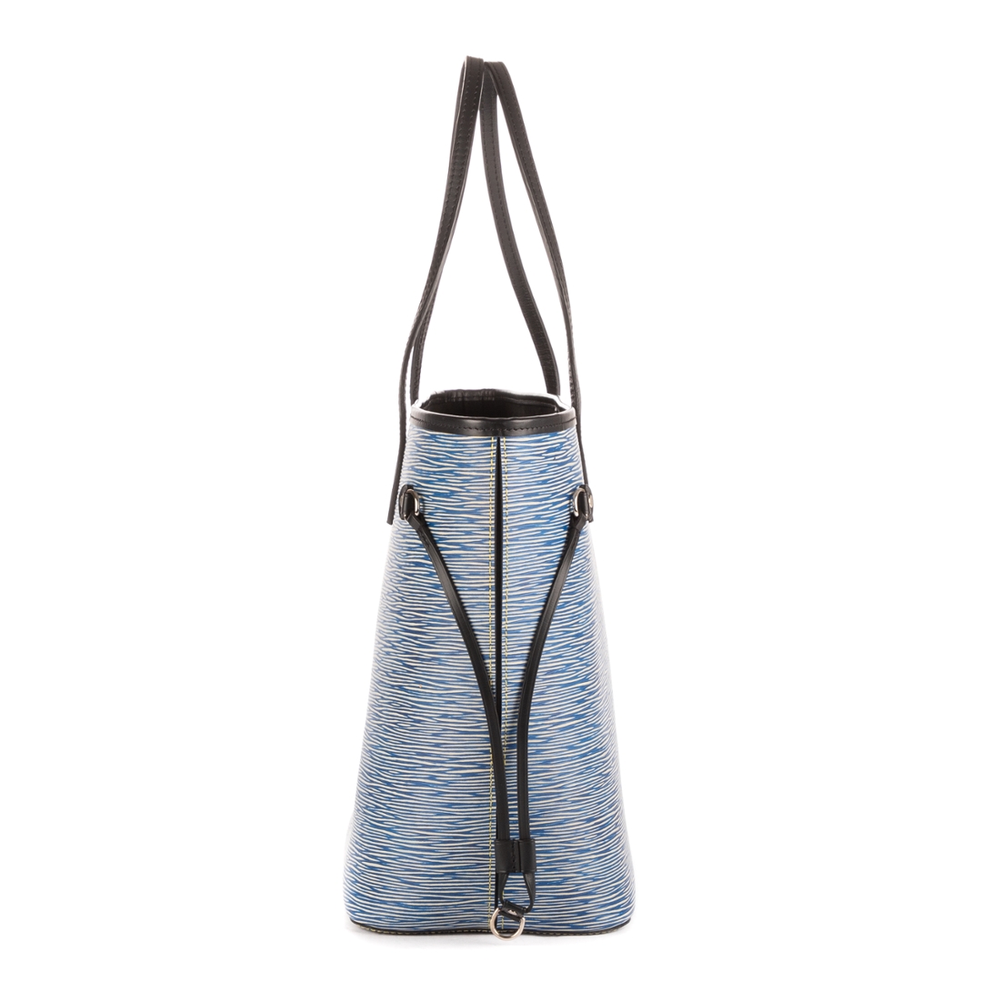 A vintage Louis Vuitton blue calf leather Neverfull bag with a certificate of authenticity. Approximately 29cm height, 33cm width.