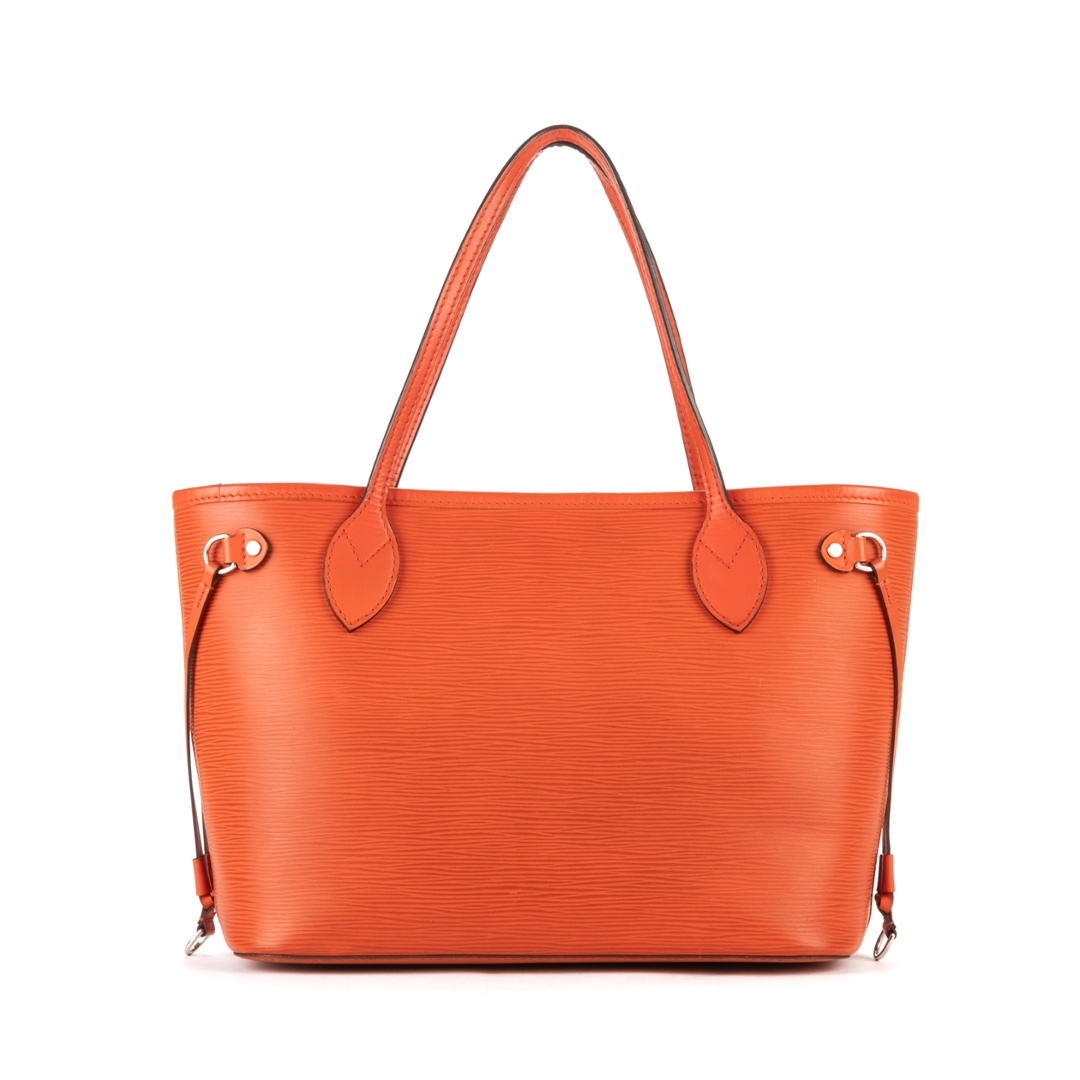 A vintage Louis Vuitton orange calf leather Neverfull bag with a certificate of authenticity. Approximately 22cm height, 29cm width.