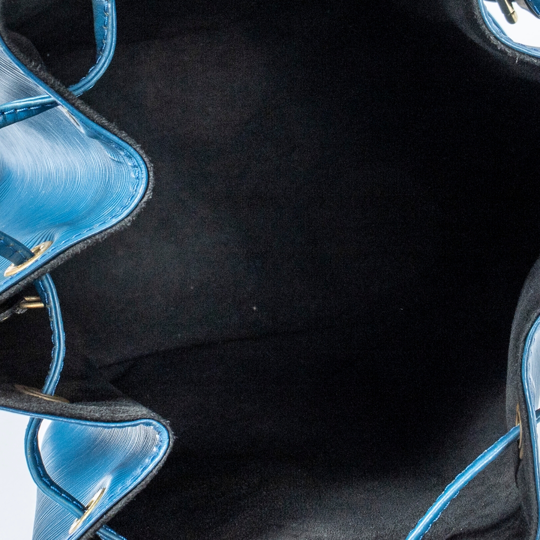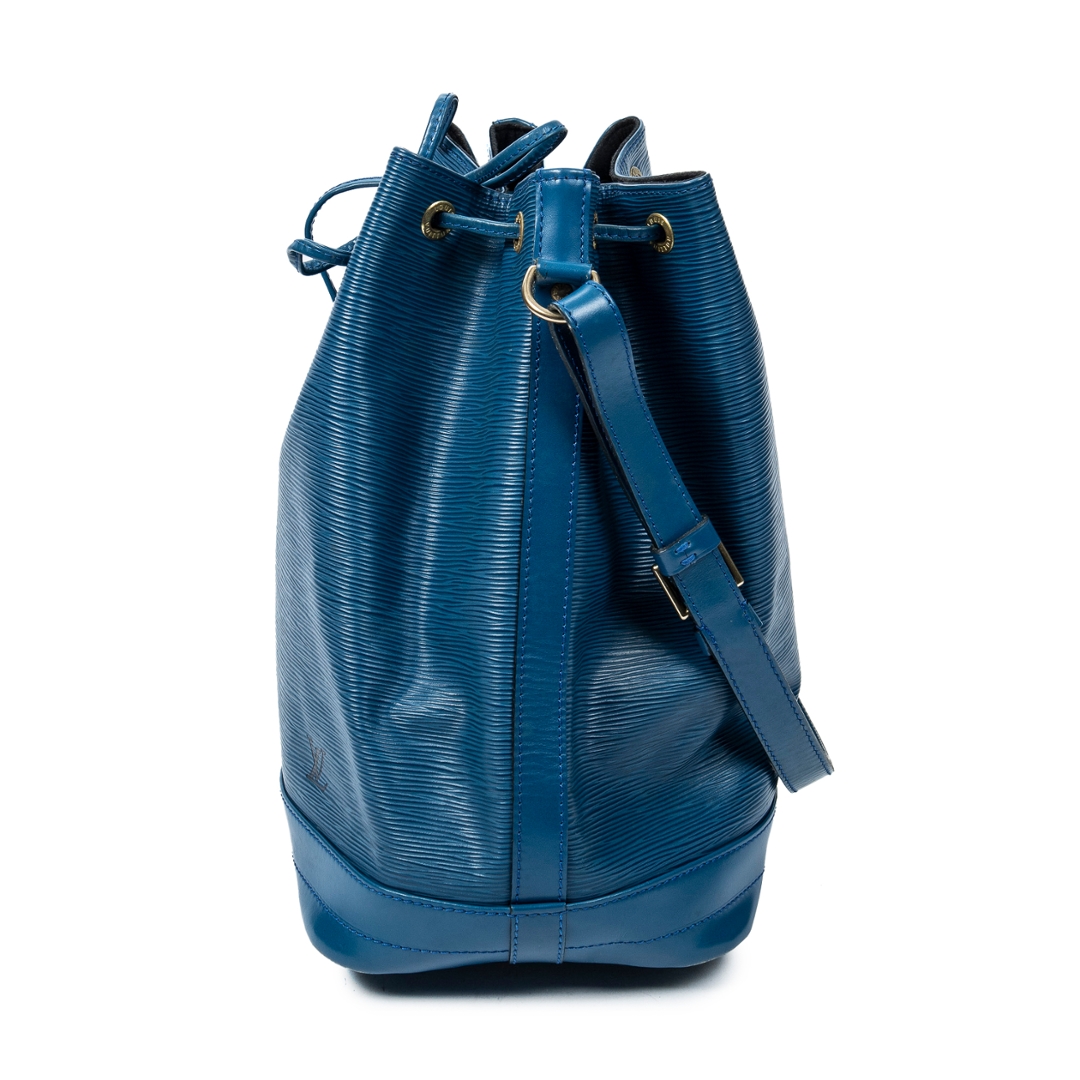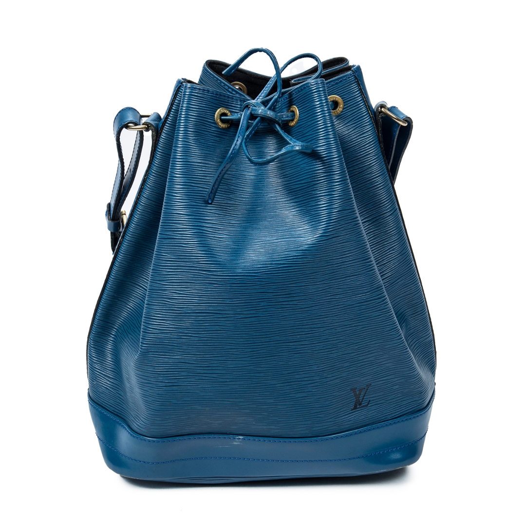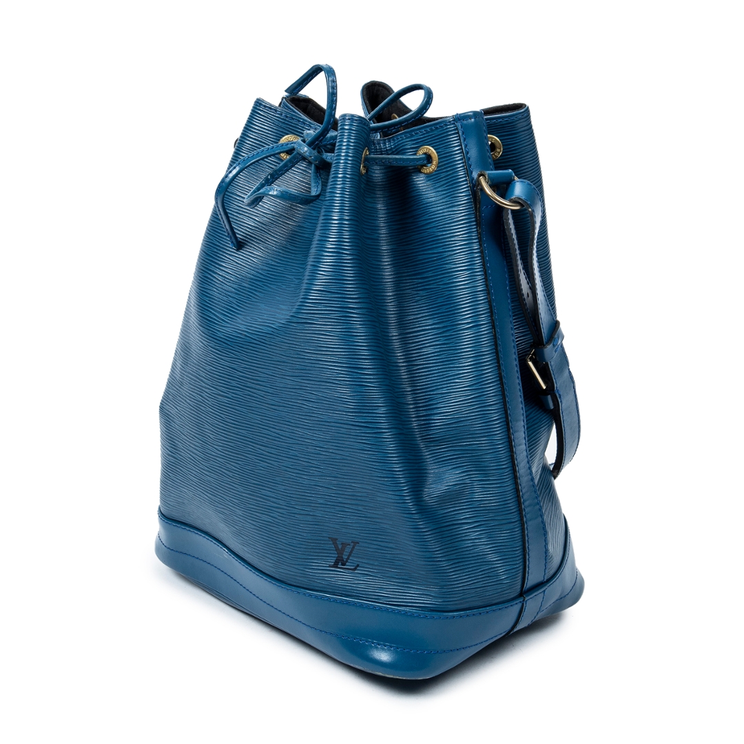 A vintage Louis Vuitton blue calf leather Noe bag with a certificate of authenticity. Approximately 34cm height, 27cm width.