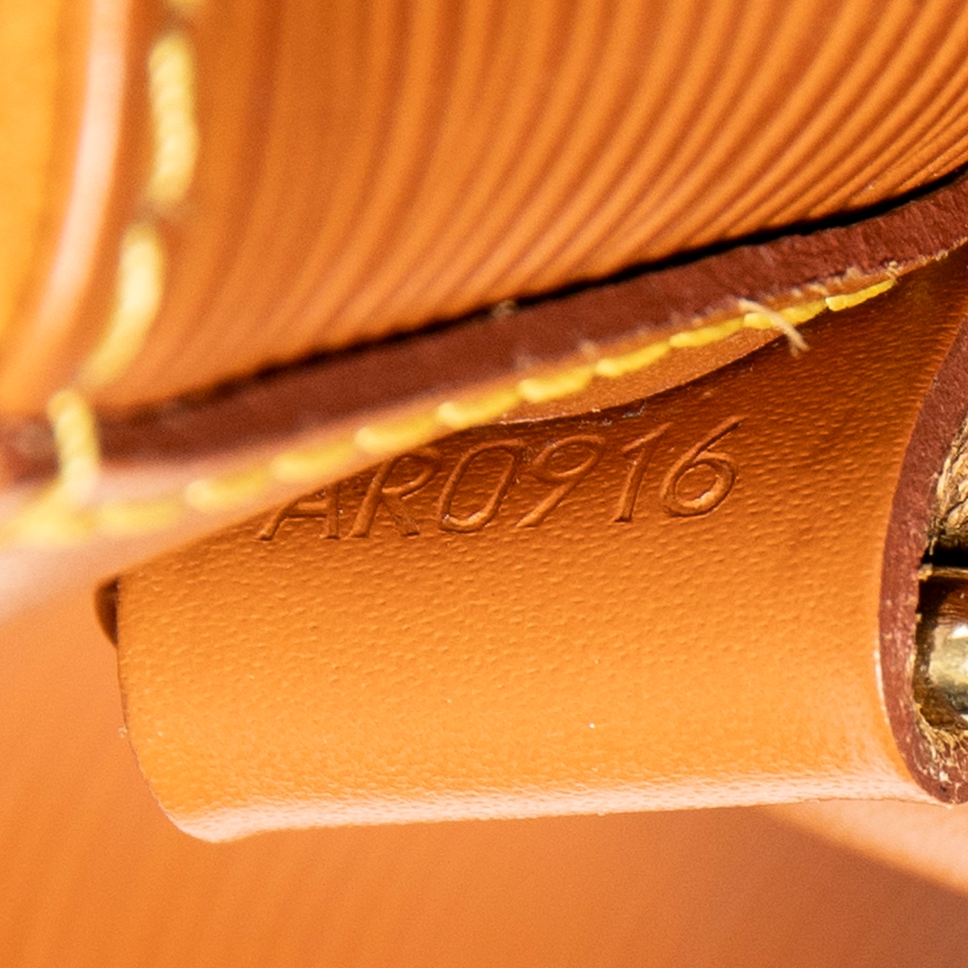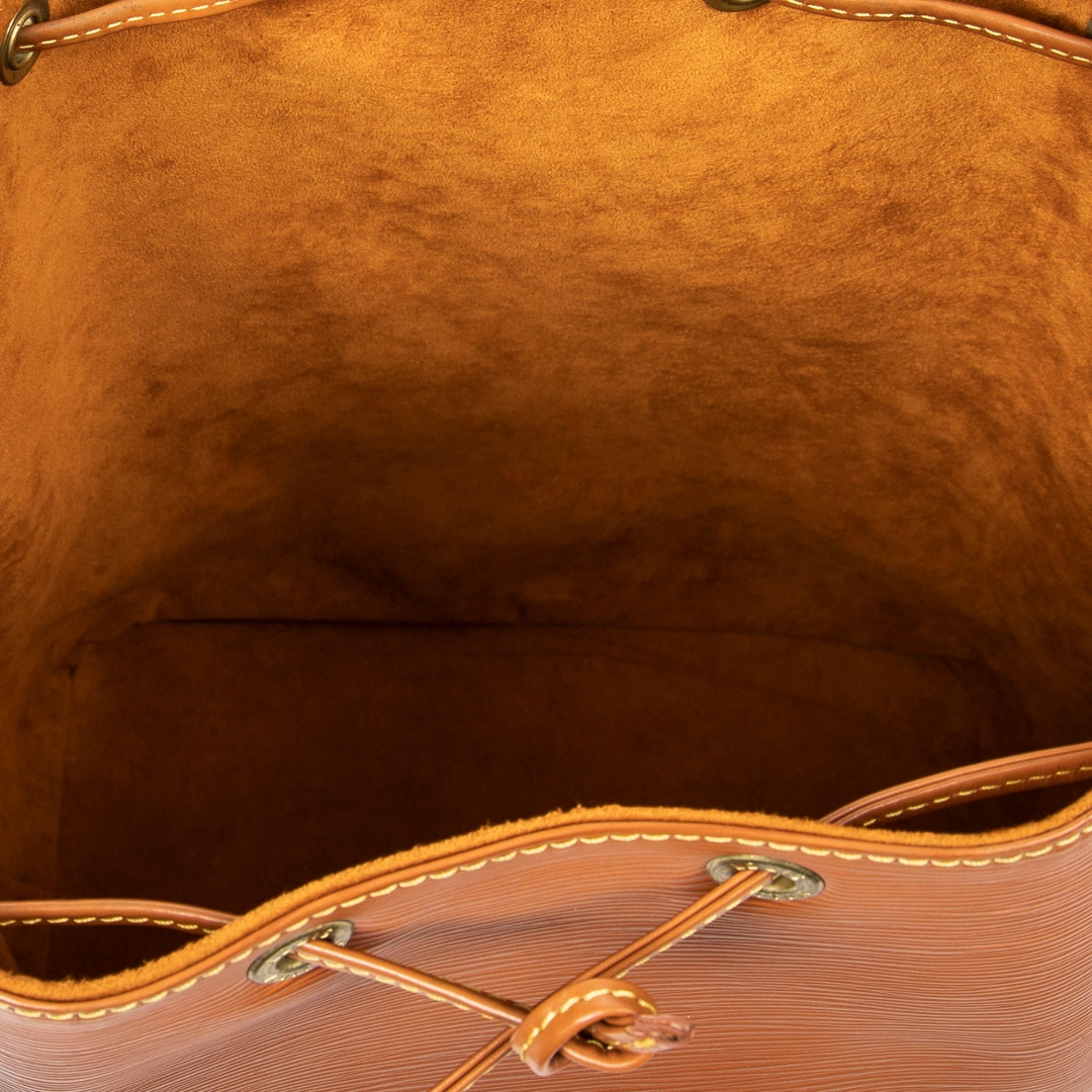A vintage Louis Vuitton gold calf leather Noe bag with a certificate of authenticity. Approximately 34cm height, 27cm width.
