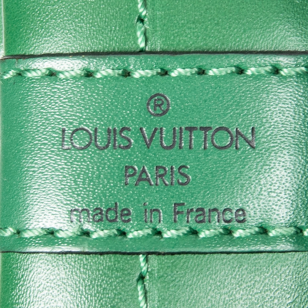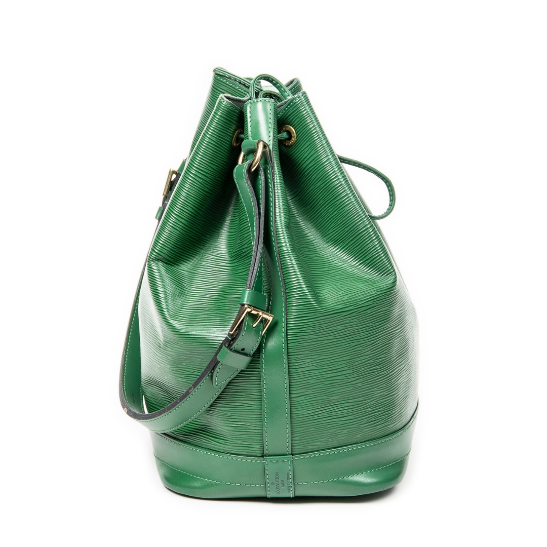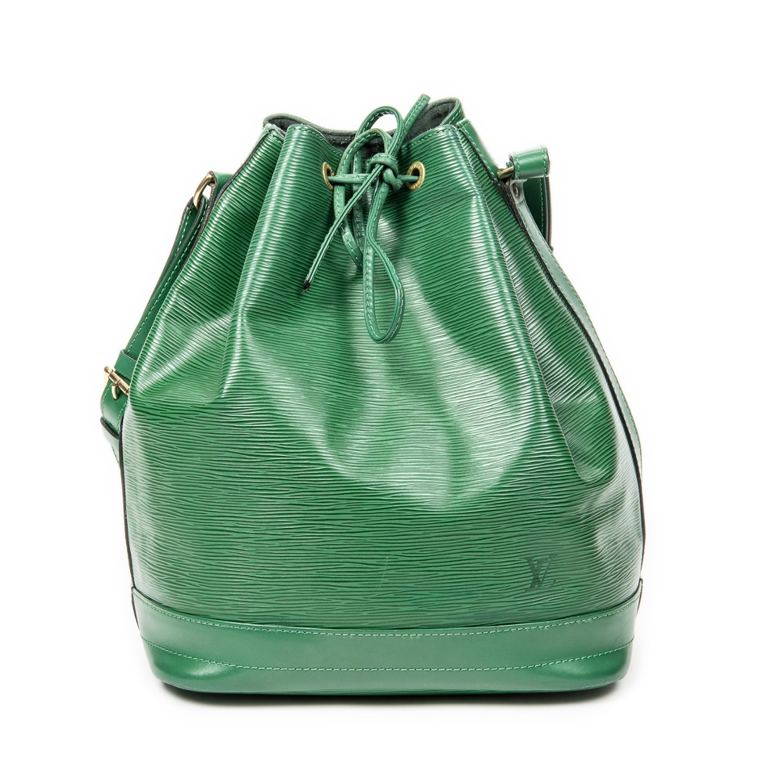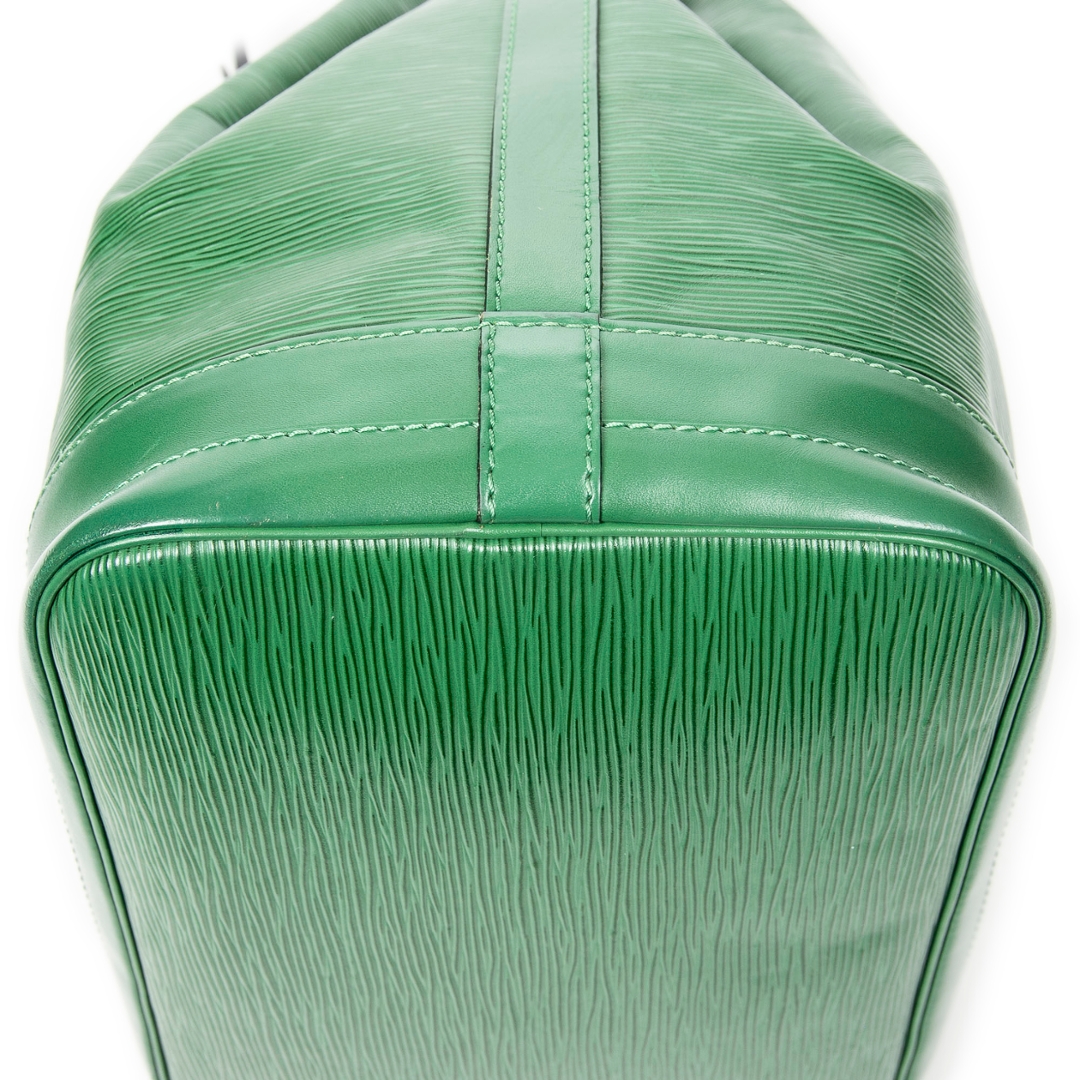 A vintage Louis Vuitton green calf leather Noe bag with a certificate of authenticity. Approximately 34cm height, 27cm width.