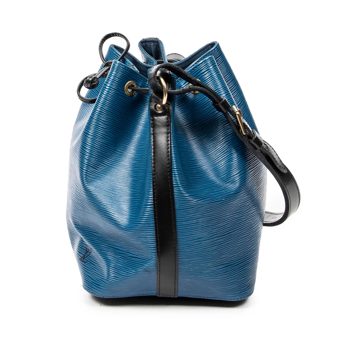 A vintage blue and black calf leather Louis Vuitton Noe Bicolor bag with a certificate of authenticity, Approximately 26cm height, 24cm width.