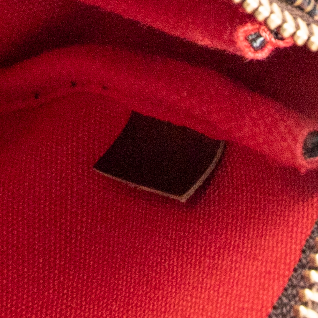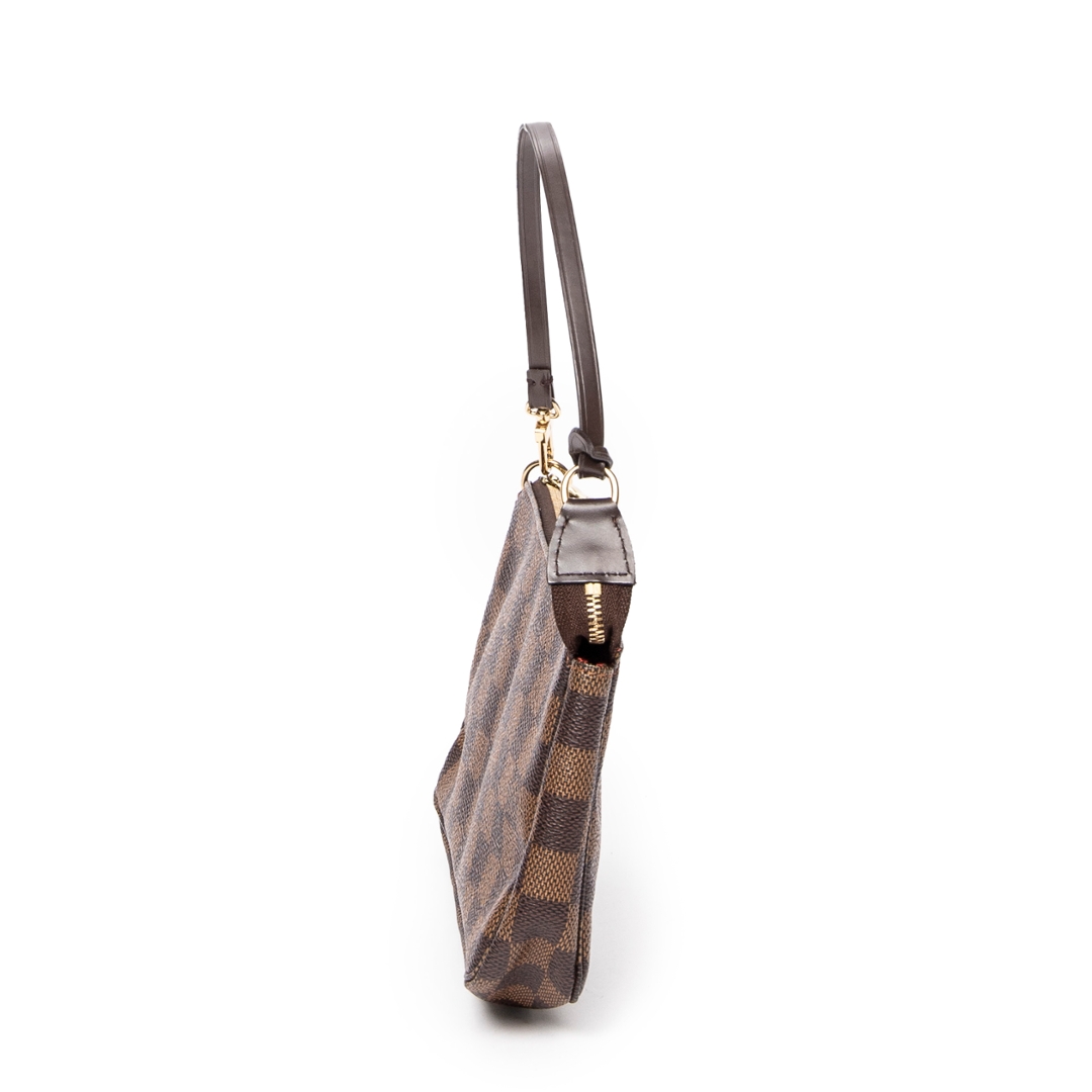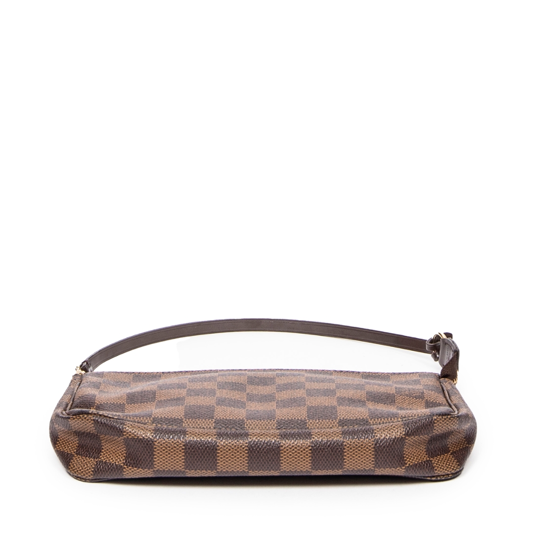 A vintage Louis Vuitton damier coated canvas Pochette Accessoires bag with a certificate of authenticity, Approximately 13cm height, 21cm width.