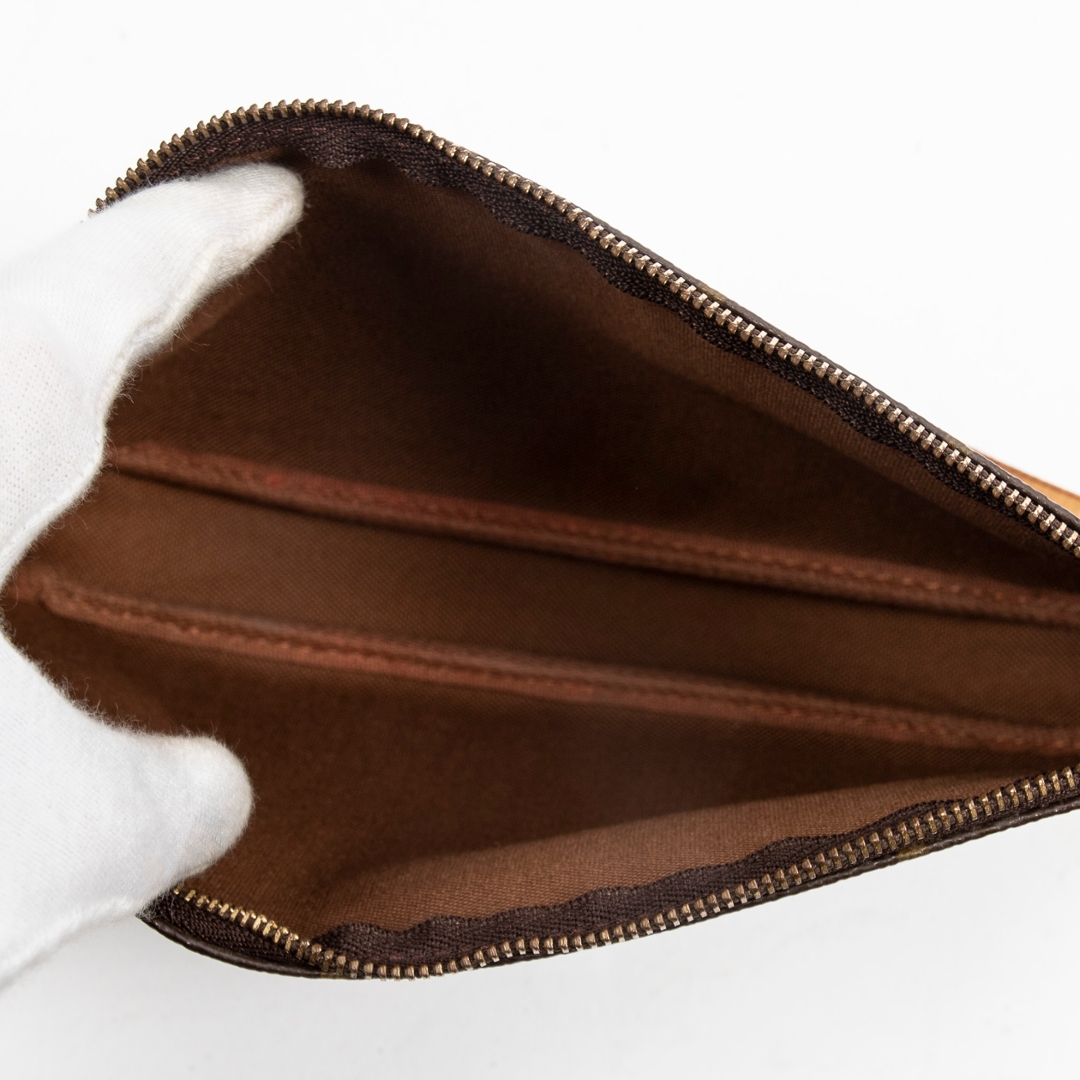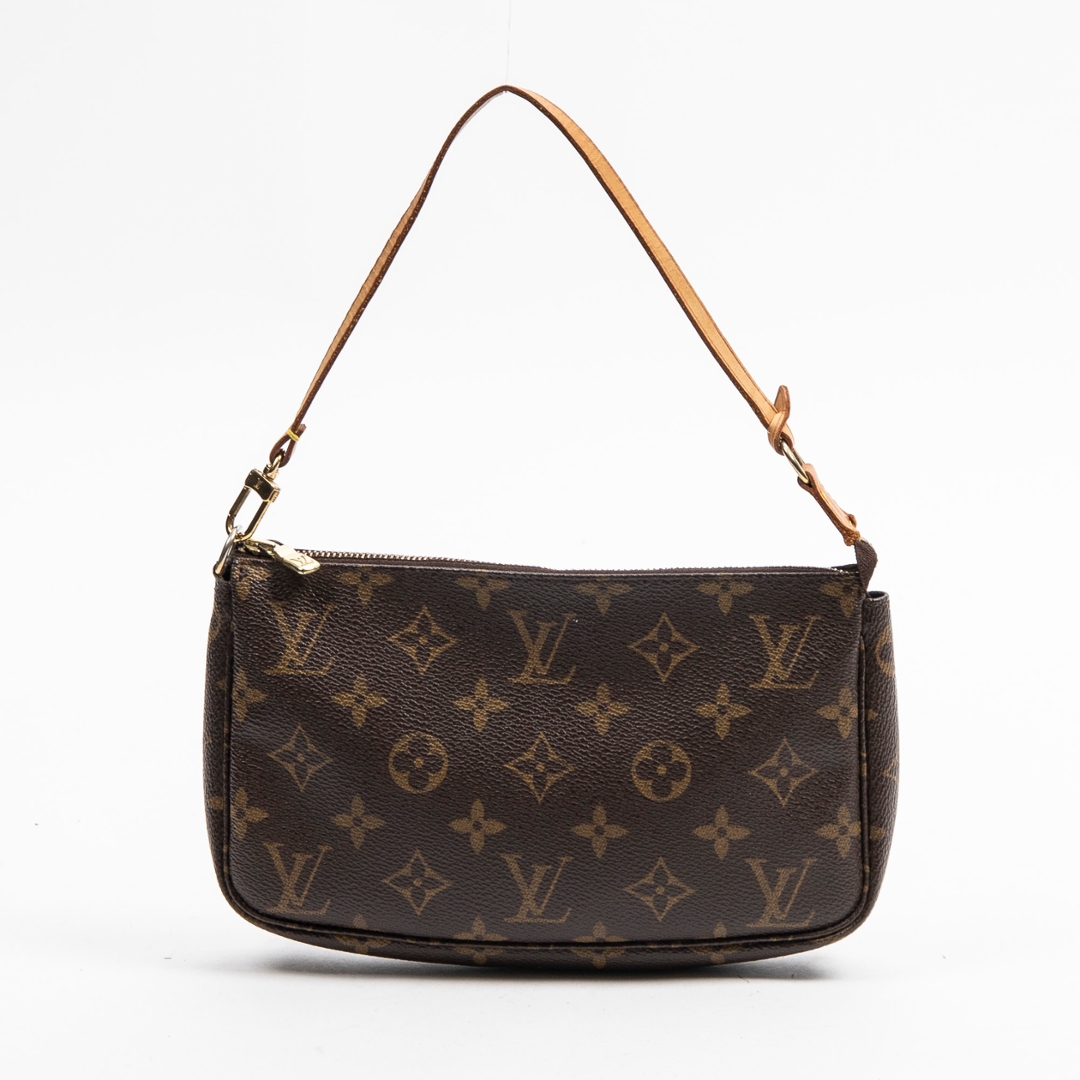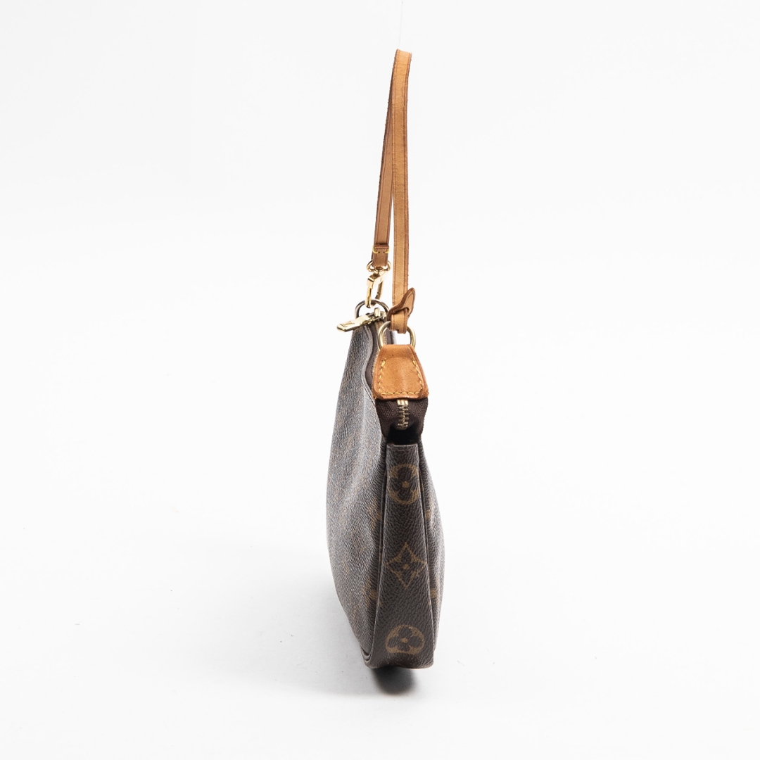 A vintage Louis Vuitton Pochette Accessoires bag crafted in the house’s iconic monogram coated canvas, finished with natural leather trim and gold-tone hardware. This compact and highly recognisable design embodies effortless Parisian styling, making it a staple piece within the Louis Vuitton collection.