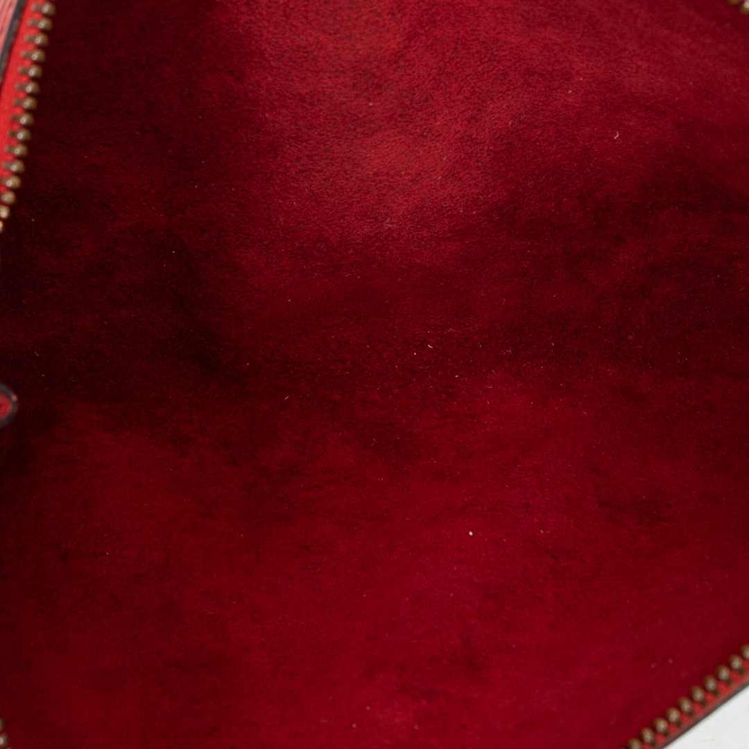 A vintage Louis Vuitton red calf leather Pochette Accessoires bag with a certificate of authenticity. Approximately 13cm height, 24cm width.