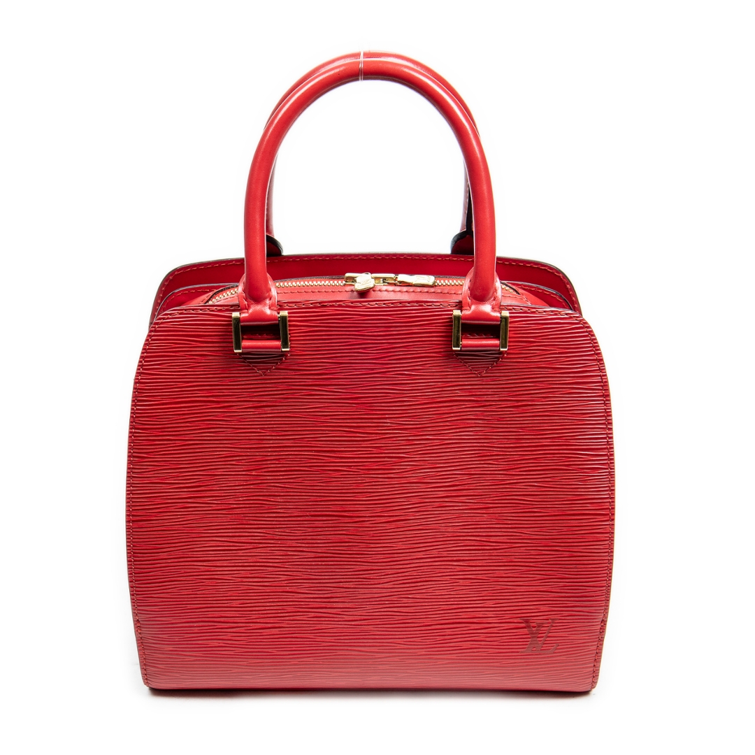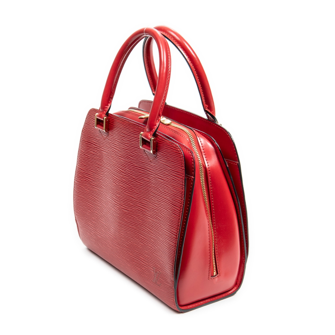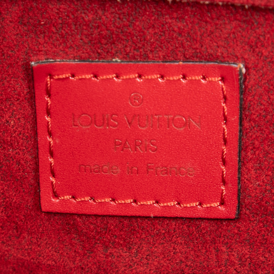 A vintage Louis Vuitton red calf leather Pont-Neuf bag with a certificate of authenticity. Approximately 22cm height, 24cm width.