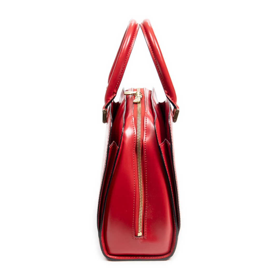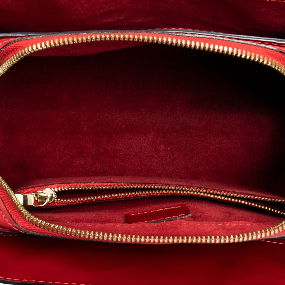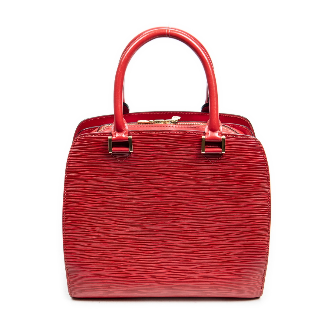 A vintage Louis Vuitton red calf leather Pont-Neuf bag with a certificate of authenticity. Approximately 22cm height, 24cm width.