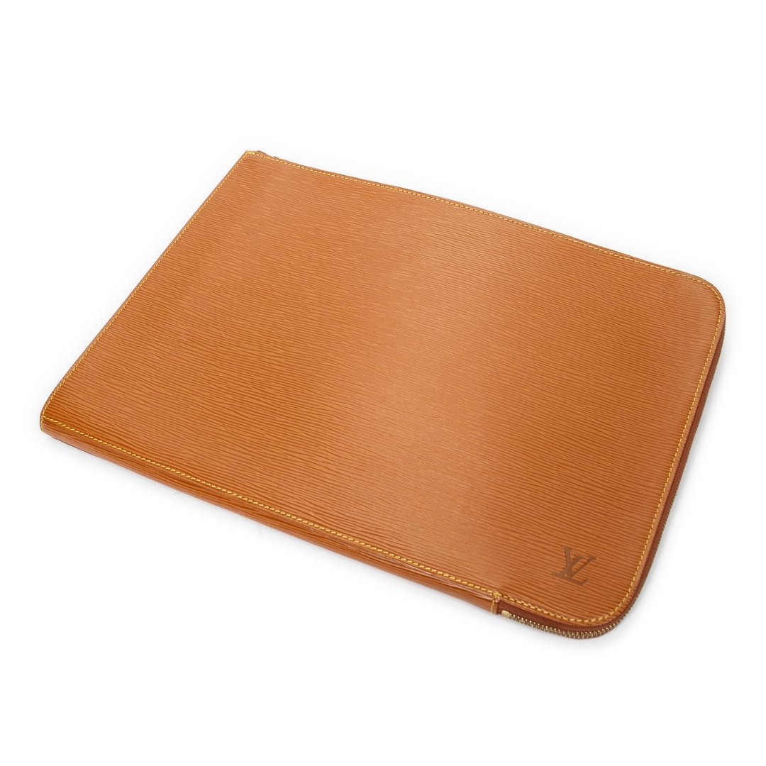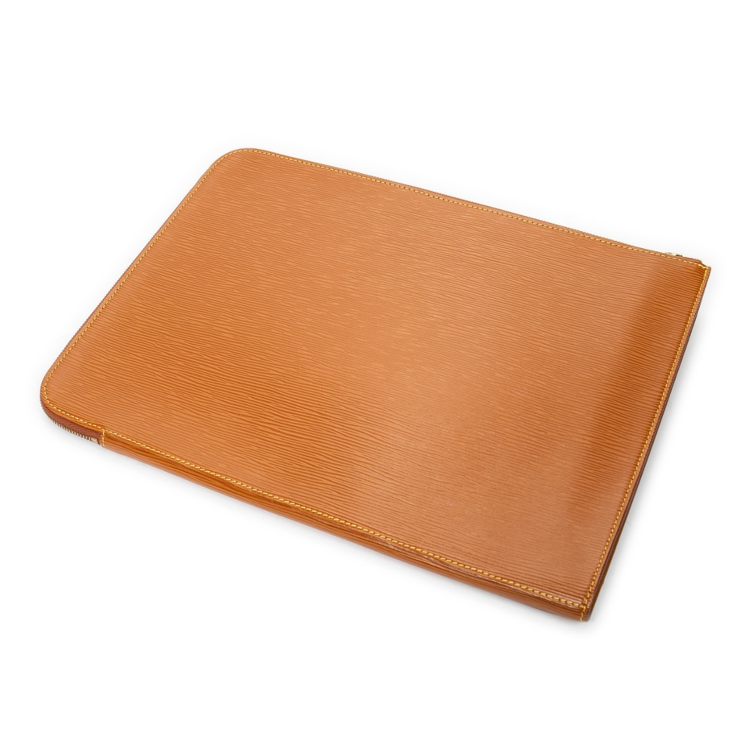 A vintage Louis Vuitton gold calf leather Porte Document bag with a certificate of authenticity. Approximately 28cm height, 38cm width.