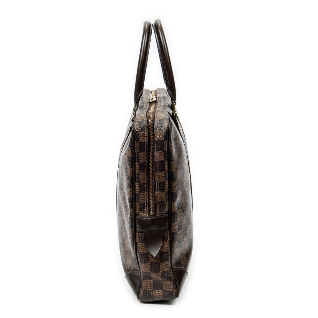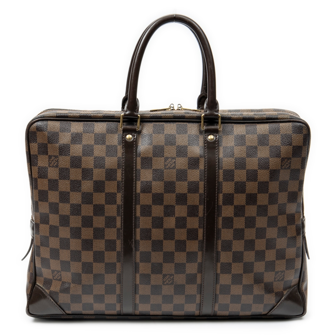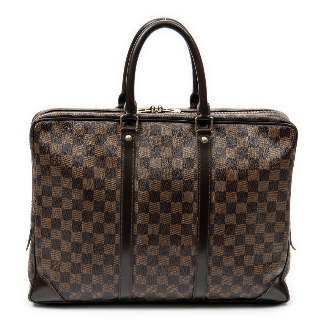 A vintage Louis Vuitton damier coated canvas Porte Documents-Voyage bag with a certificate of authenticity. Approximately 30cm height, 41cm width.