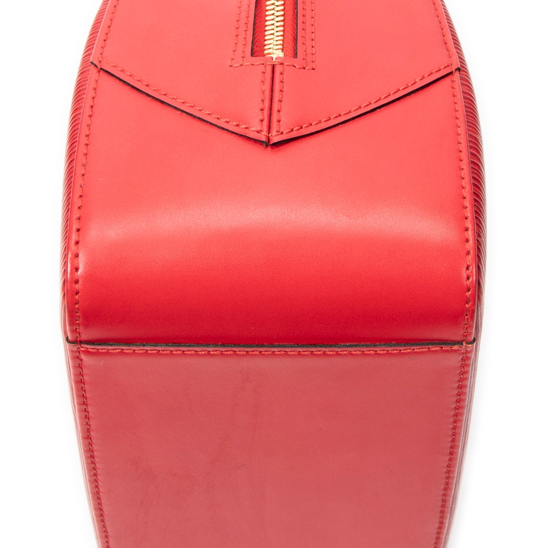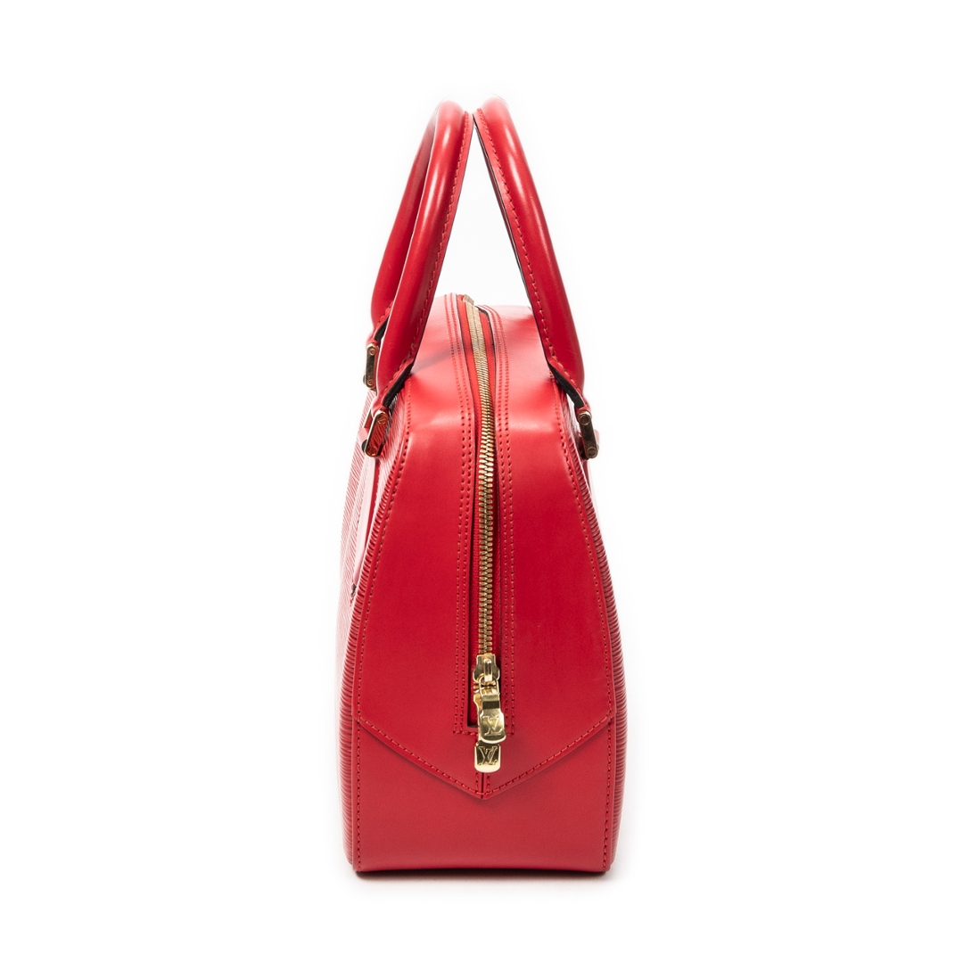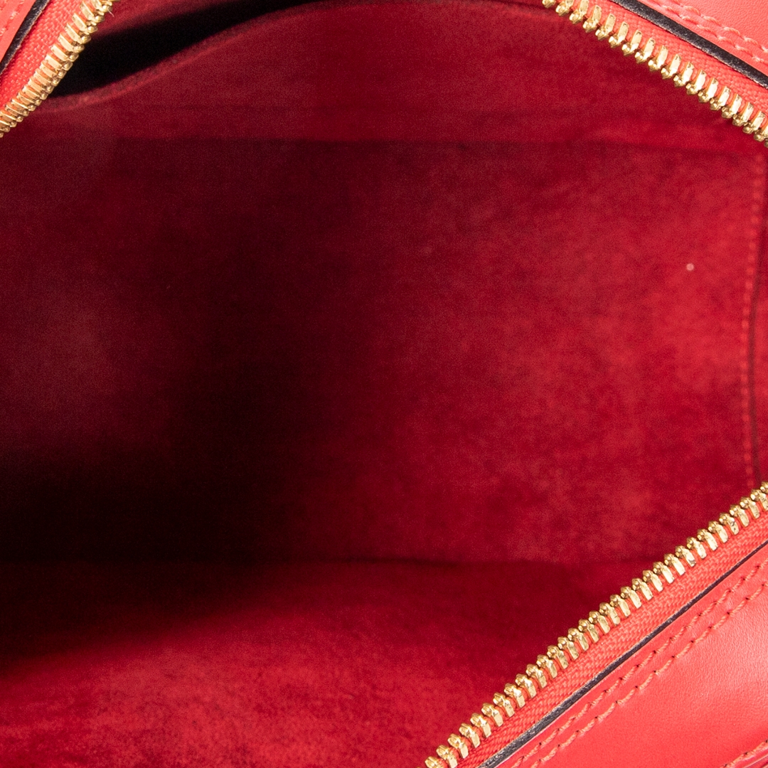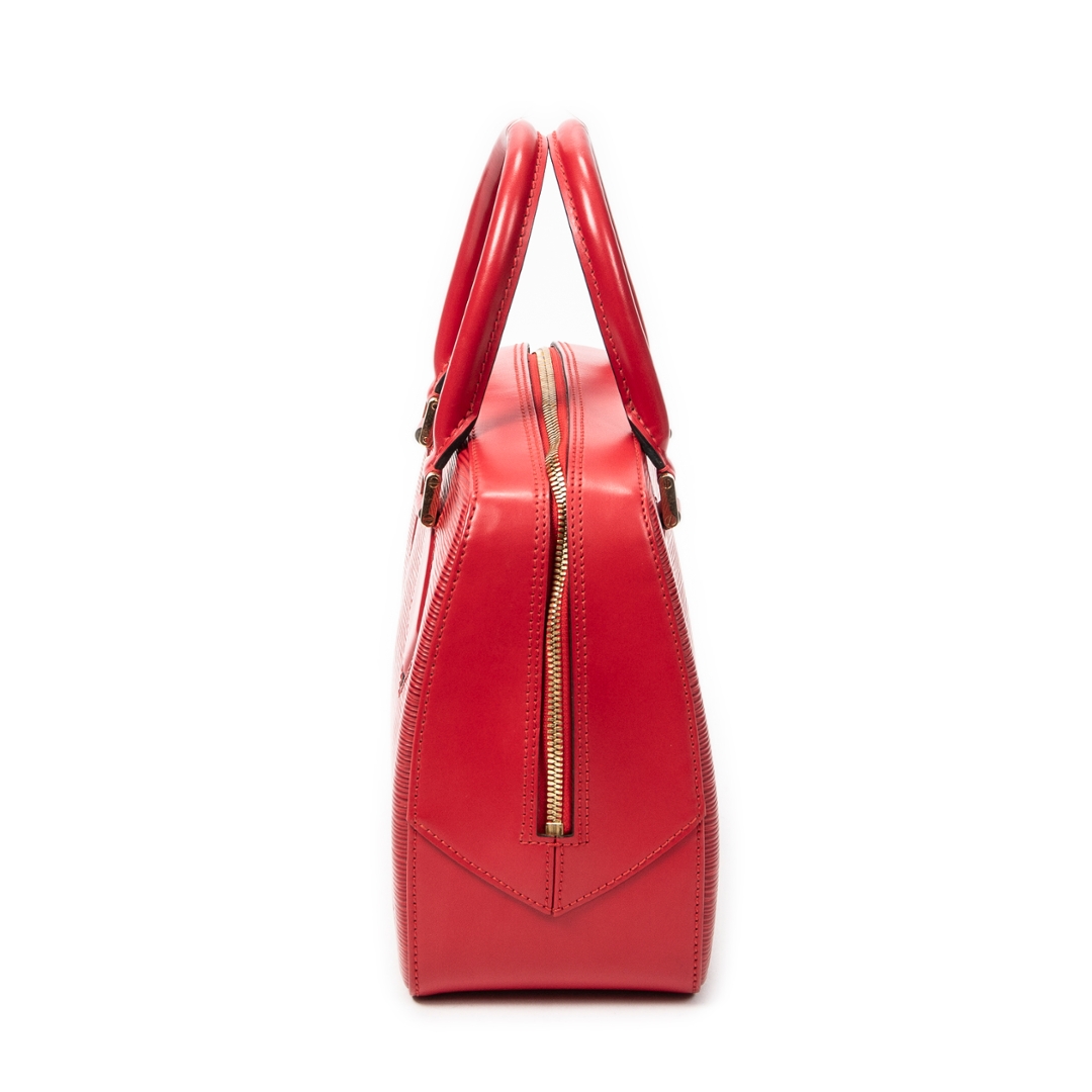A vintage Louis Vuitton red calf leather Sablons bag with a certificate of authenticity. Approximately 20cm height, 26cm width.