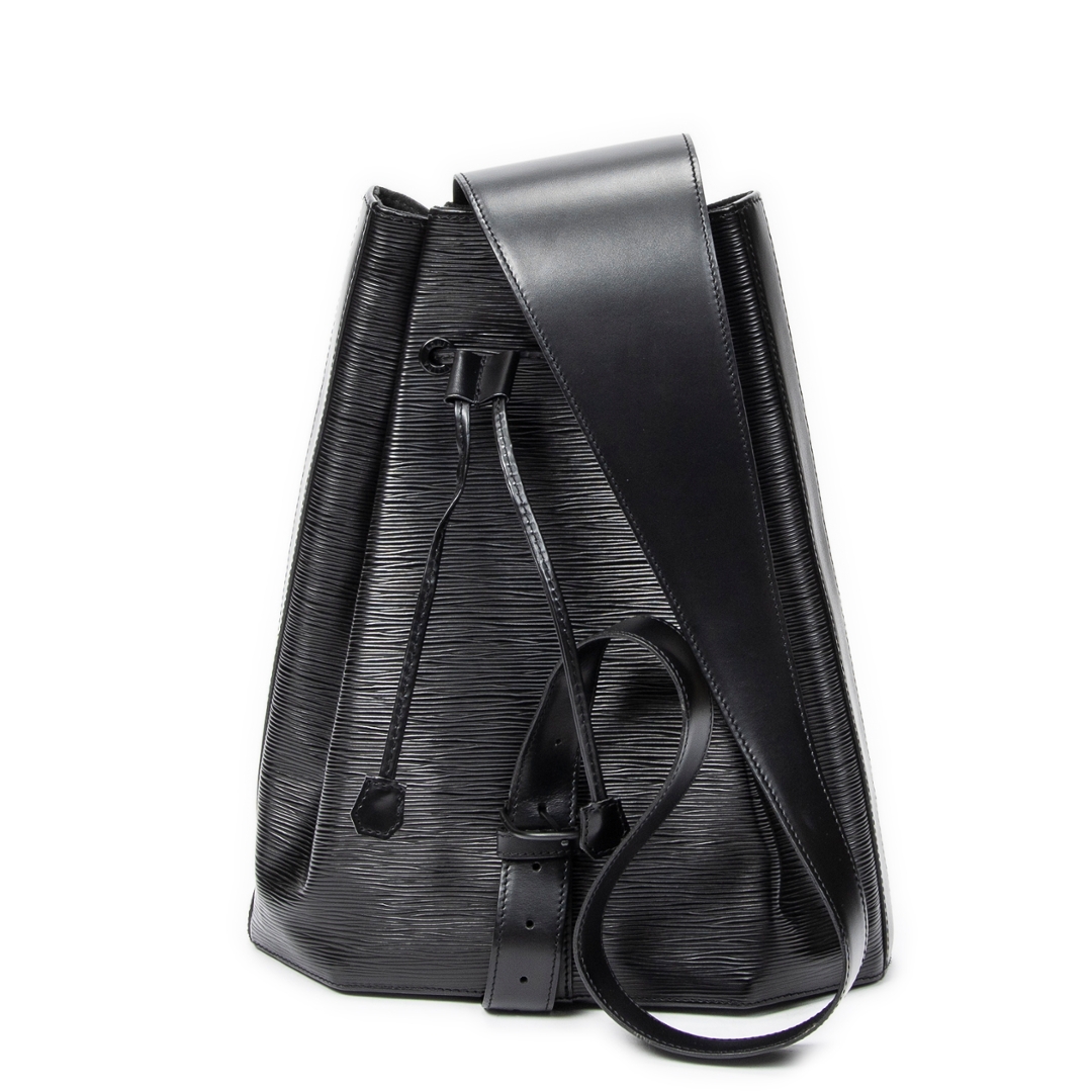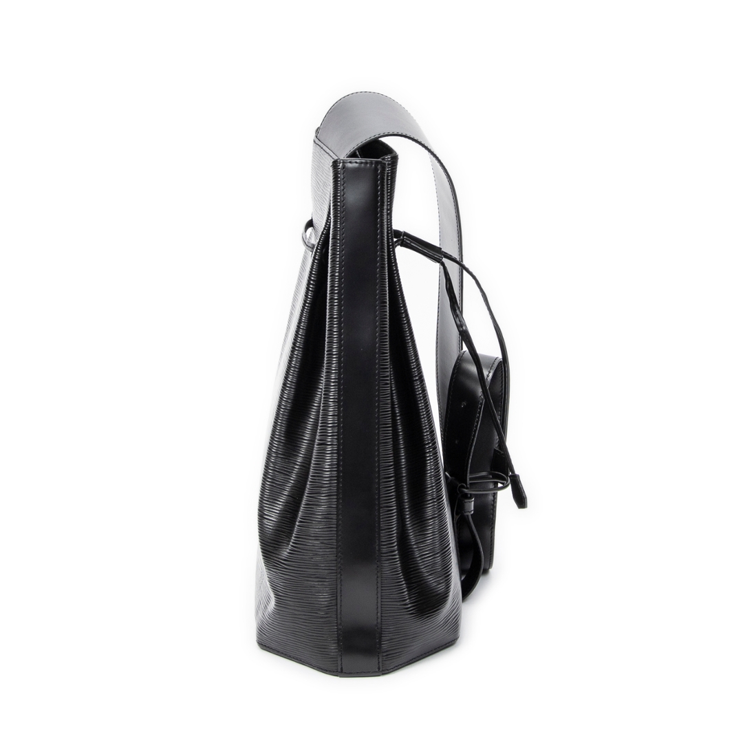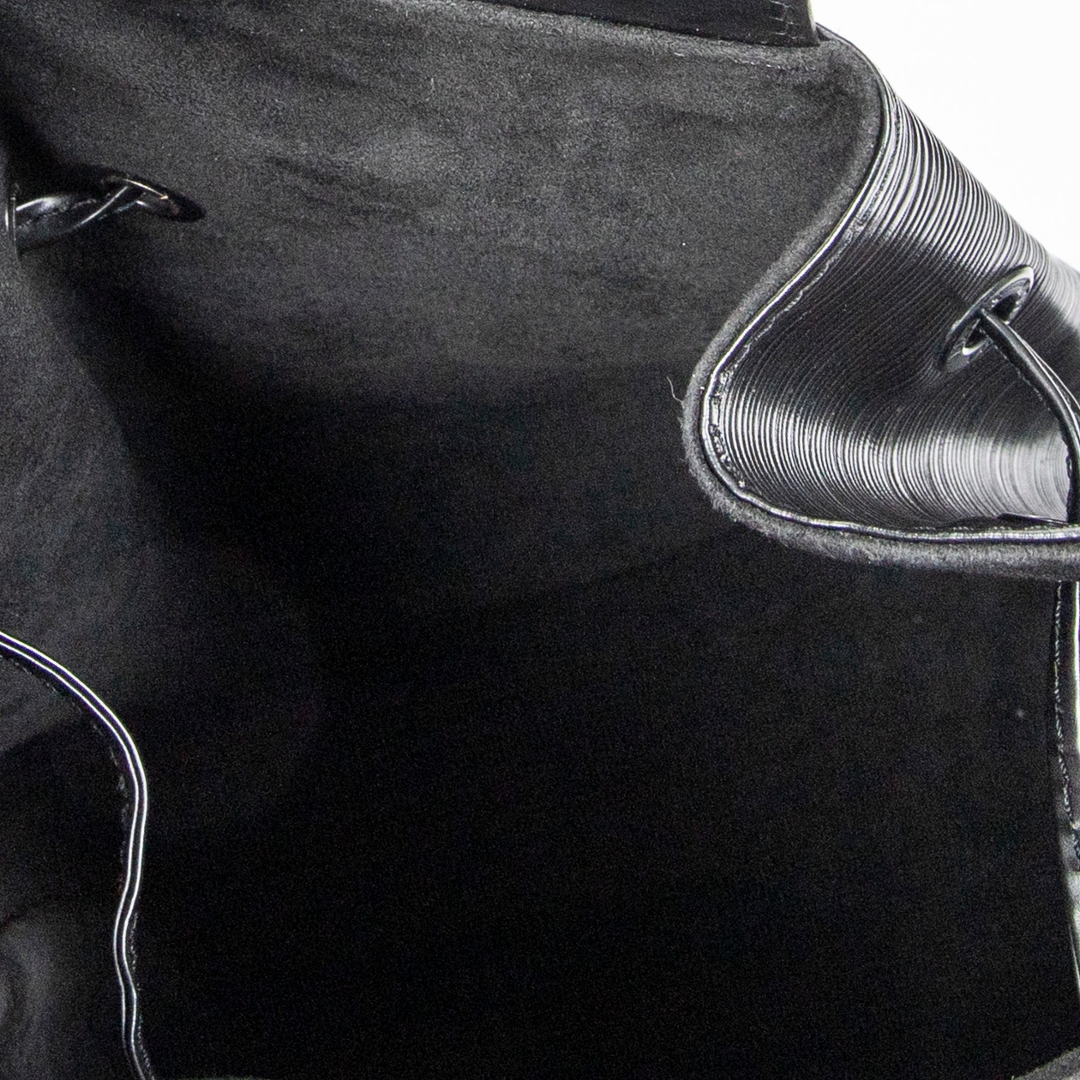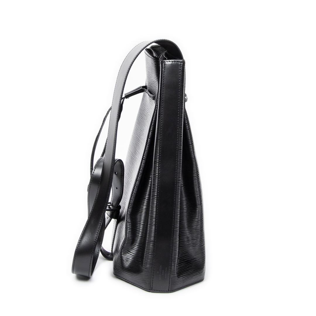 A vintage Louis Vuitton black calf leather Sac A Dos bag with a certificate of authenticity. Approximately 36cm height, 30cm width.