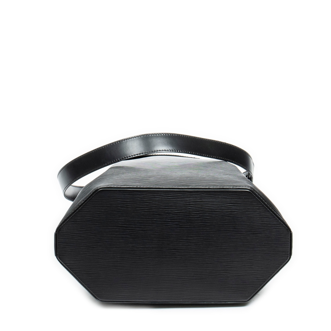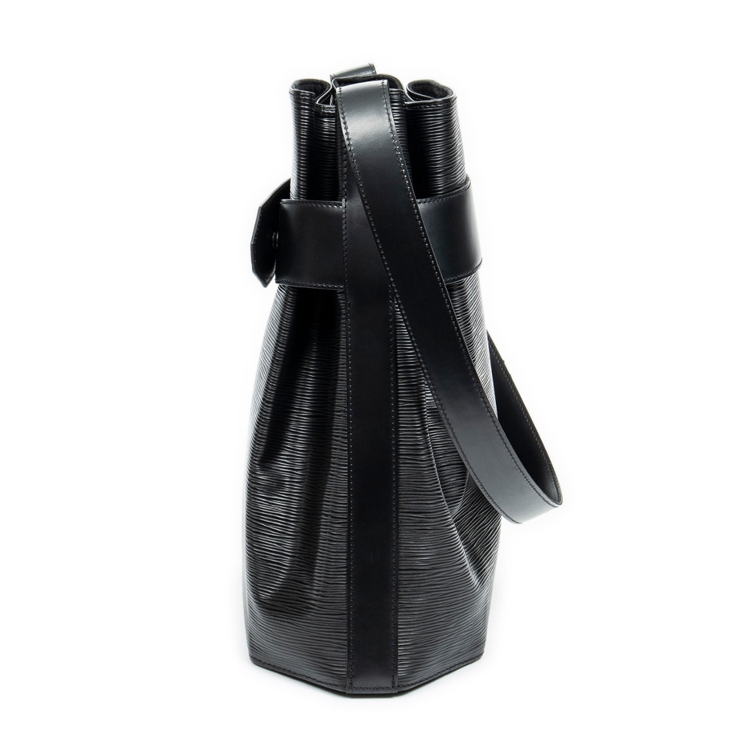 A vintage Louis Vuitton black calf leather Sac D'Epaule bag with a certificate of authenticity, Approximately 36cm height, 30cm width.