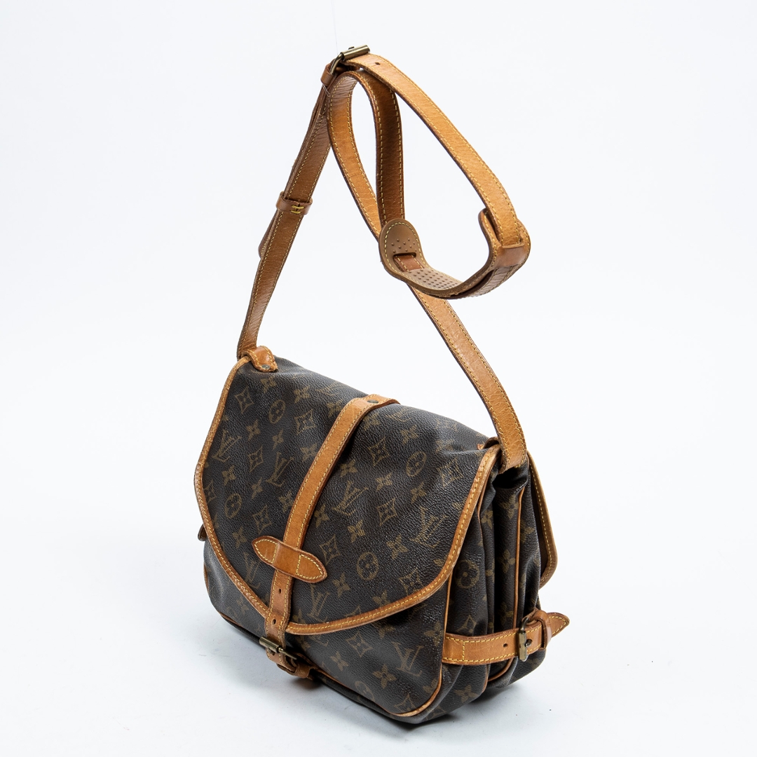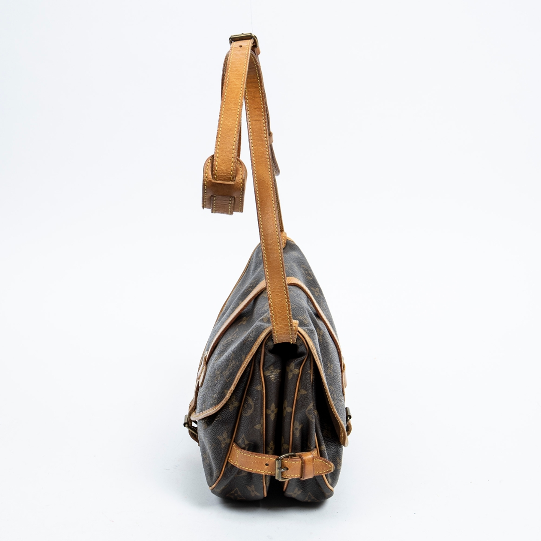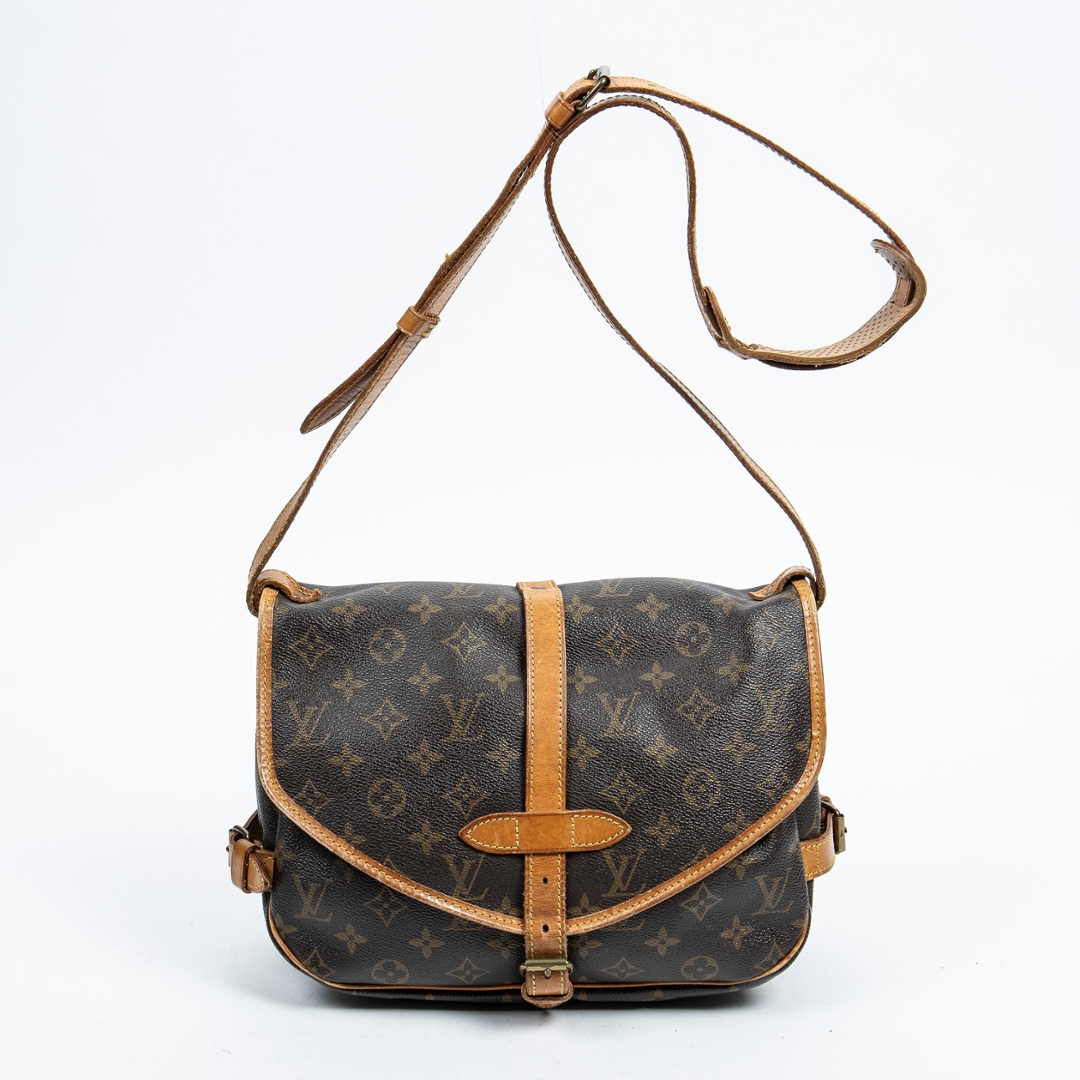 A vintage Louis Vuitton monogram coated canvas Saumur bag with a certificate of authenticity. Approximately 20cm height, 30cm width.