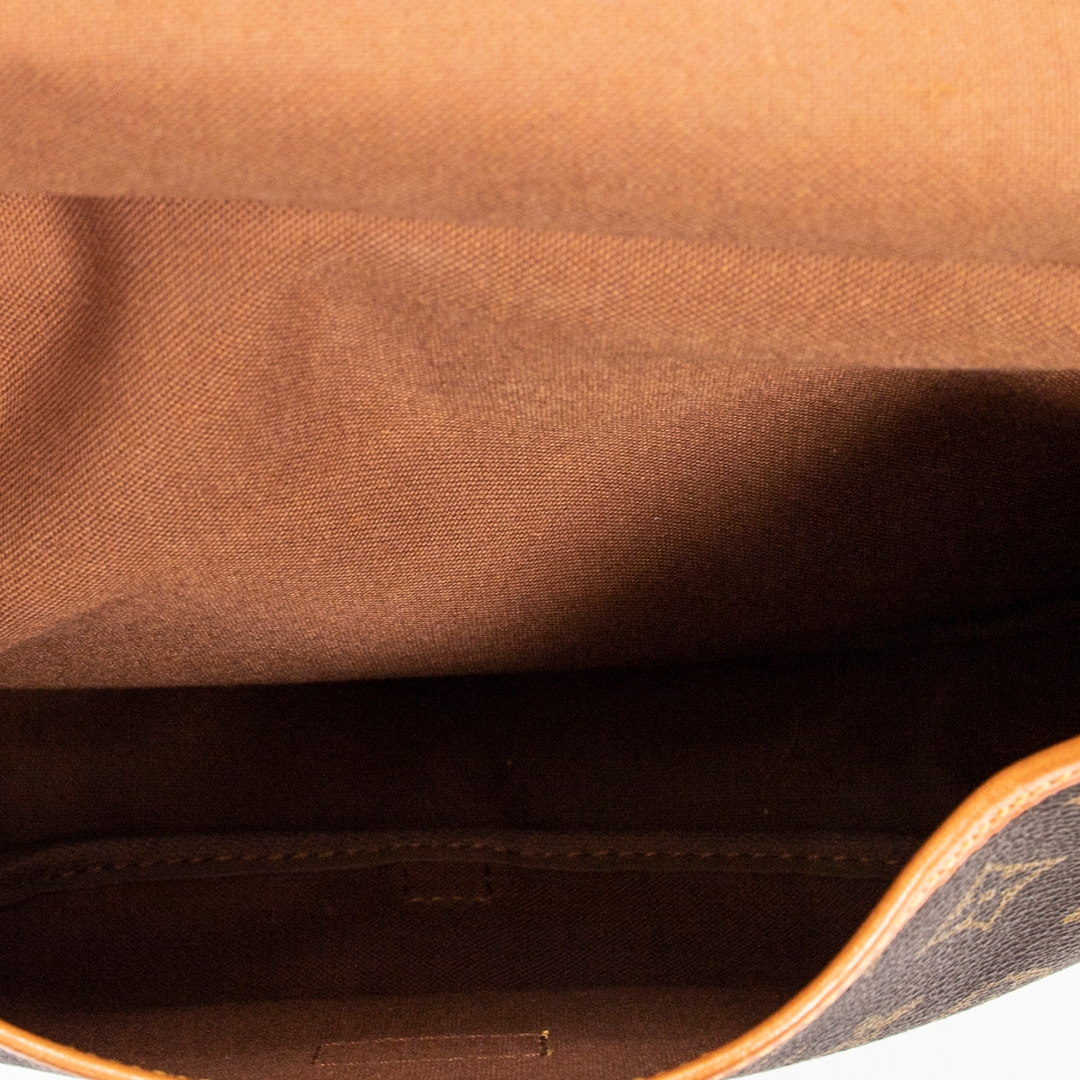 A vintage Louis Vuitton monogram coated canvas Saumur bag with a certificate of authenticity. Approximately 20cm height, 30cm width.