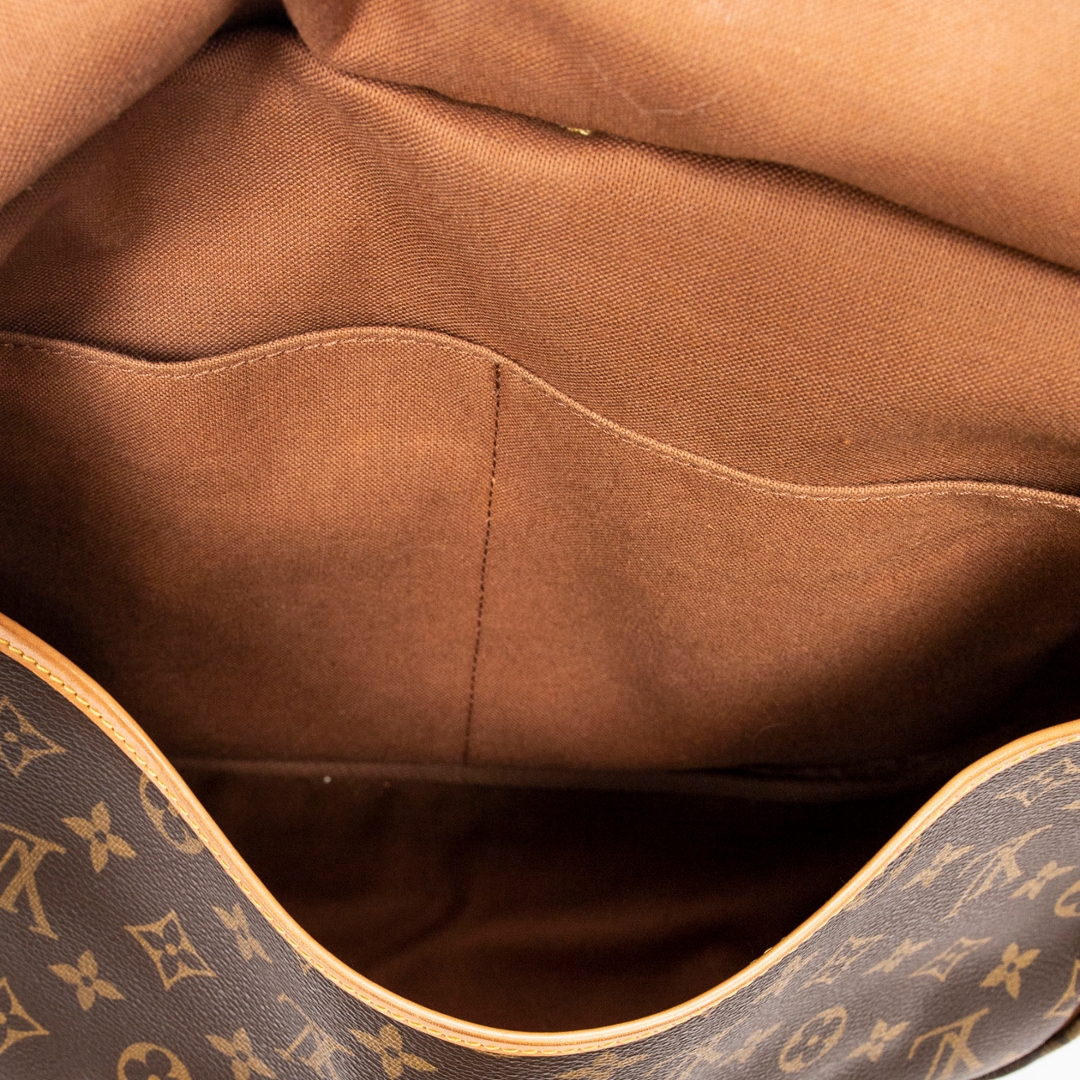 A vintage Louis Vuitton monogram coated canvas Saumur bag with a certificate of authenticity. Approximately 26cm height, 35cm width.