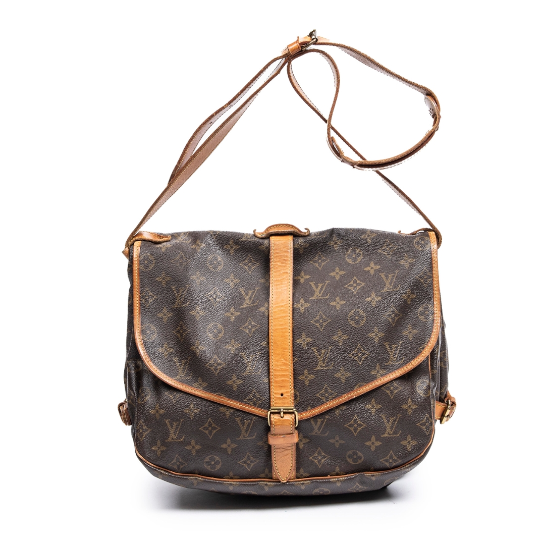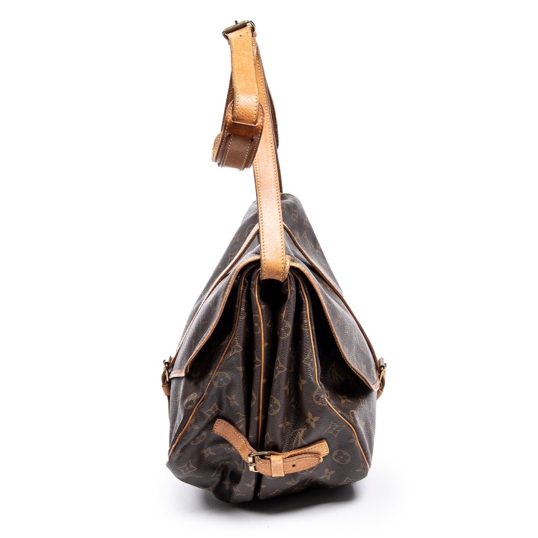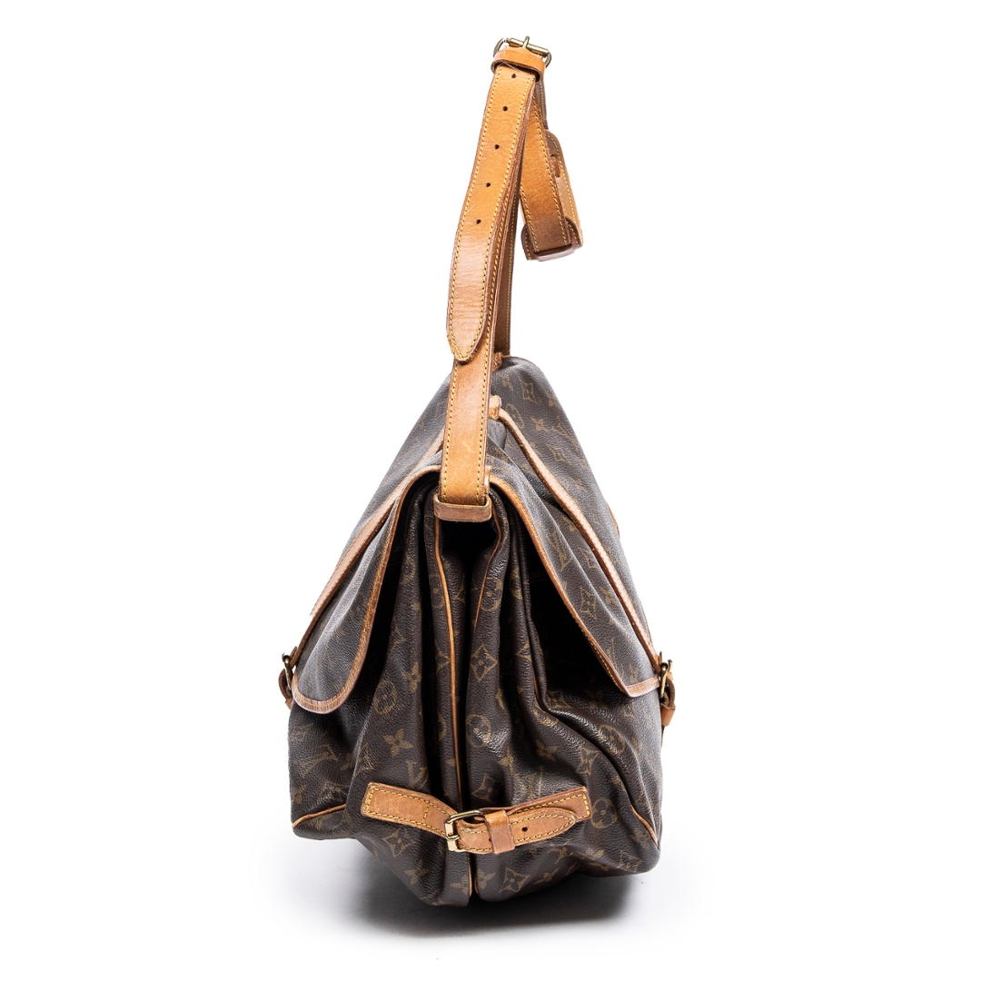 A vintage Louis Vuitton monogram coated canvas Saumur bag with a certificate of authenticity. Approximately 26cm height, 35cm width.