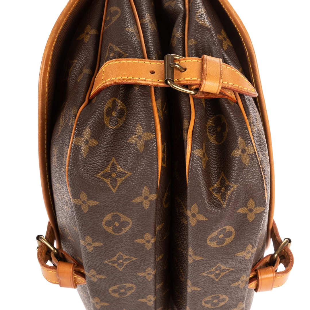 A vintage Louis Vuitton monogram coated canvas Saumur bag with a certificate of authenticity. Approximately 22cm height, 27cm width.