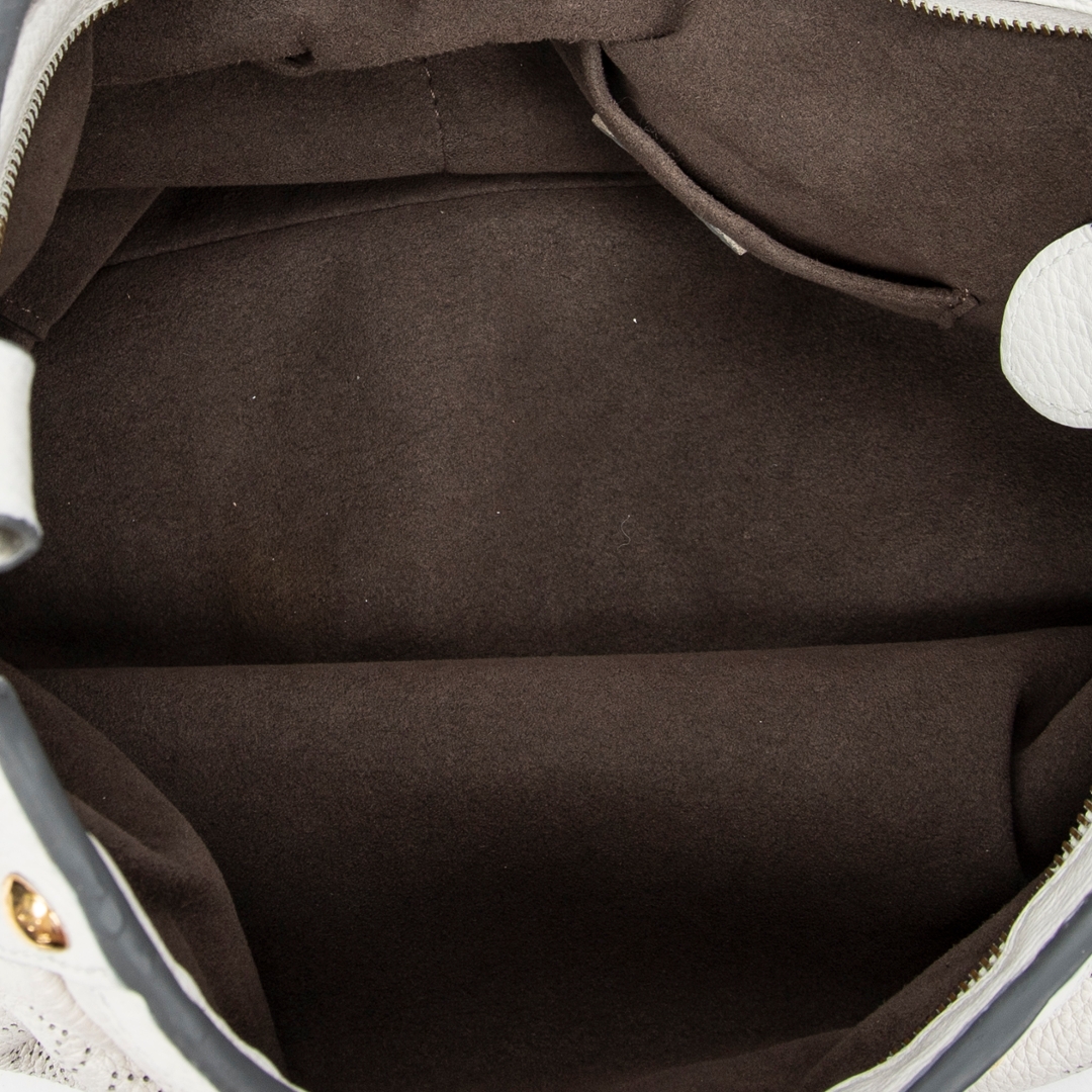 A vintage Louis Vuitton white calf leather Solar bag with a certificate of authenticity. Approximately 26cm height, 39cm width.