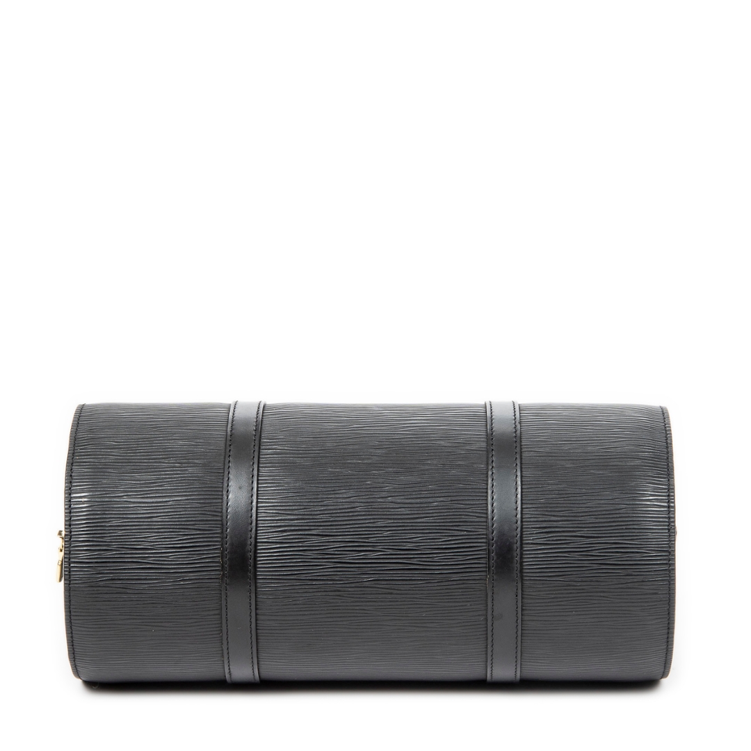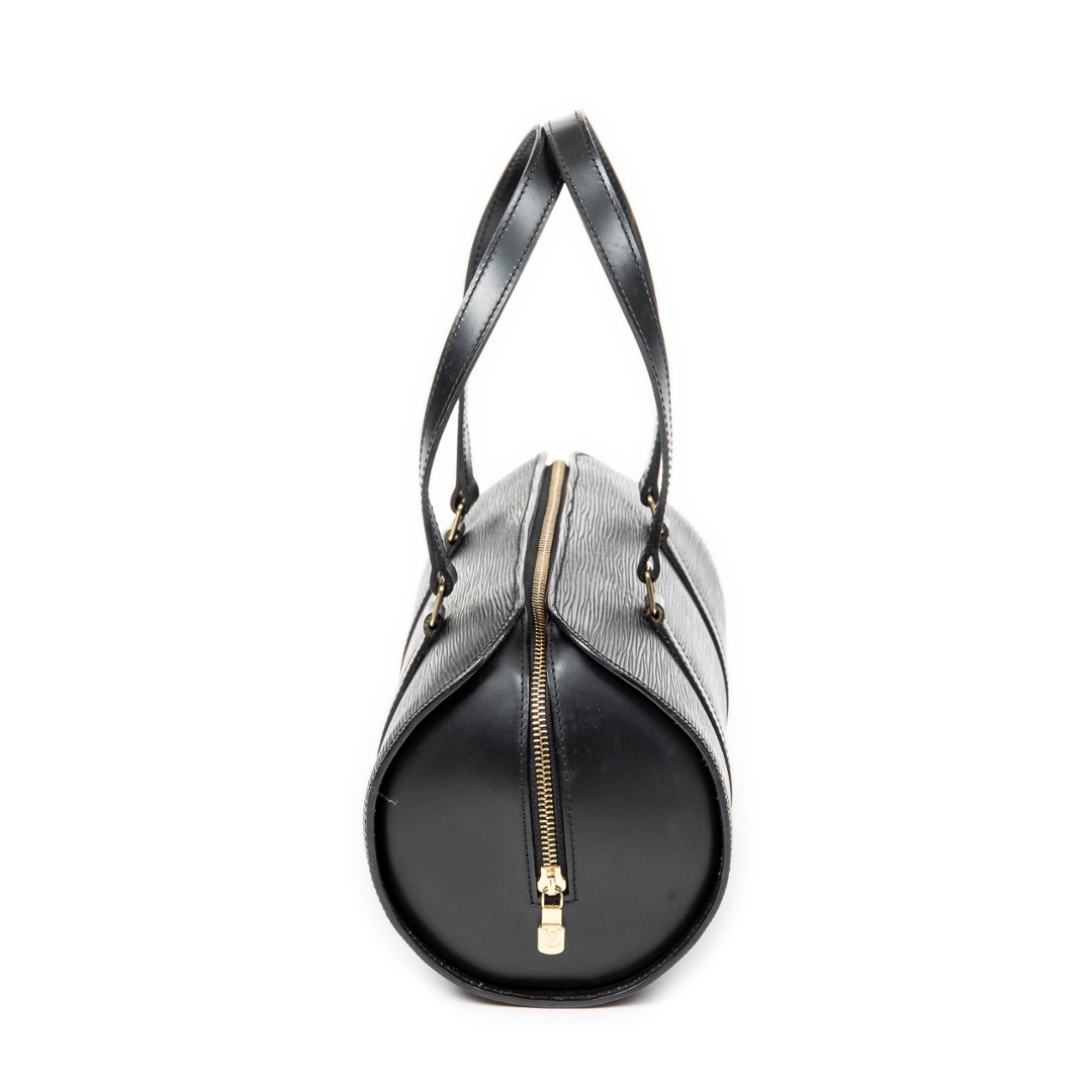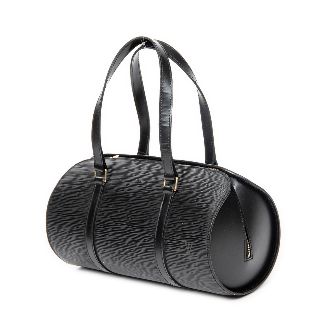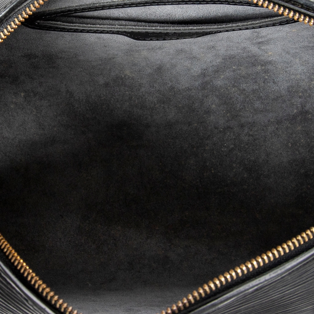 A vintage Louis Vuitton black calf leather Soufflot bag with a certificate of authenticity, Approximately 14cm height, 30cm width.