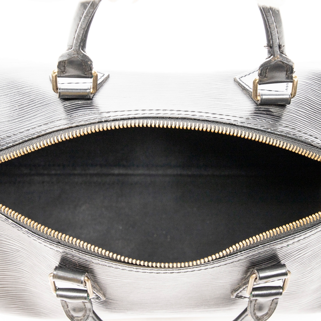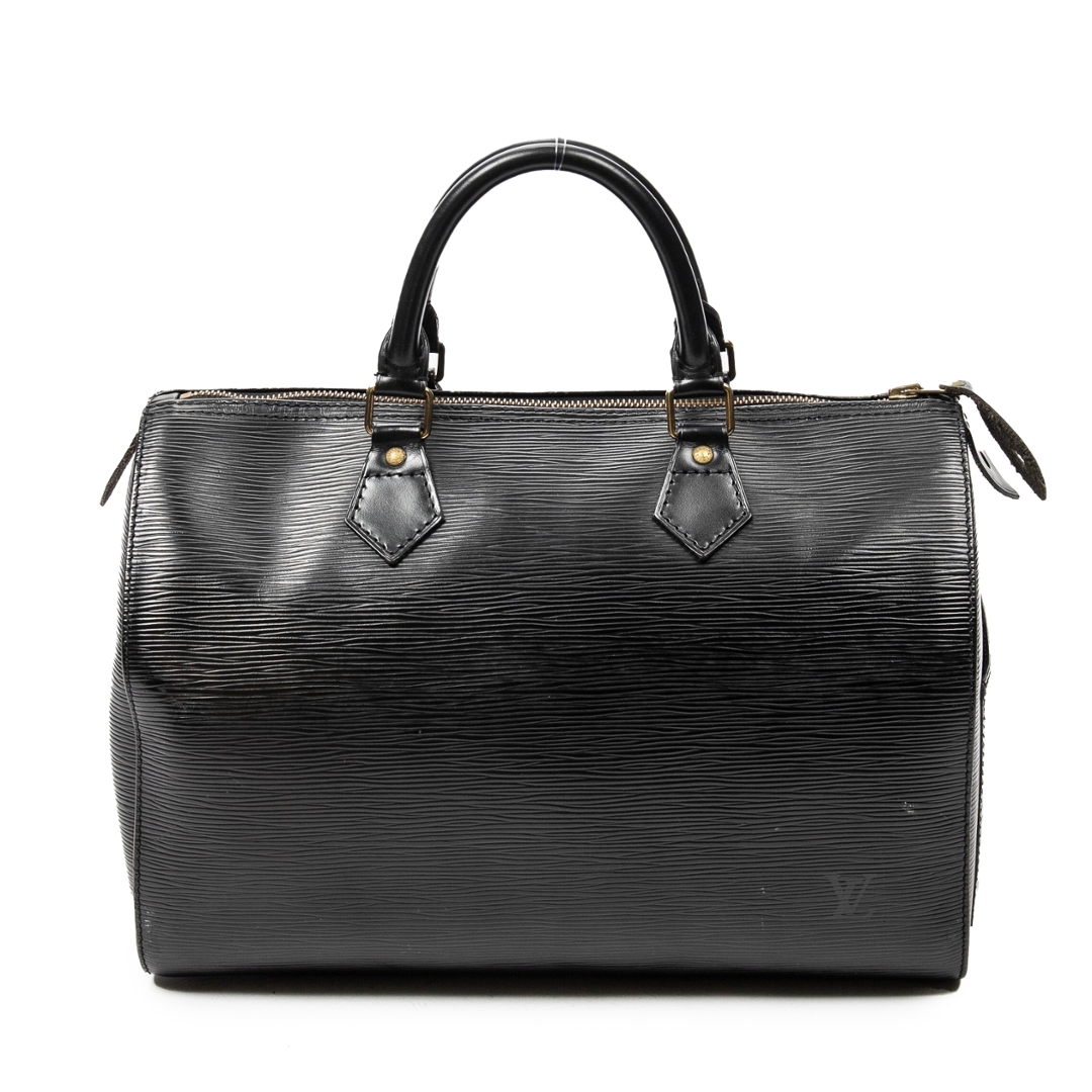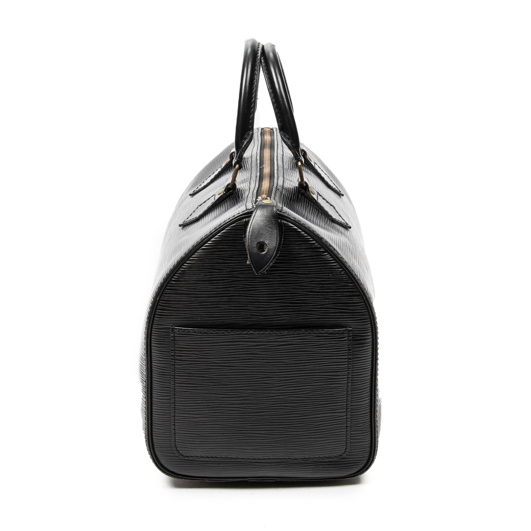 A vintage Louis Vuitton black calf leather Speedy bag with a certificate of authenticity. Approximately 22cm height, 32cm width.