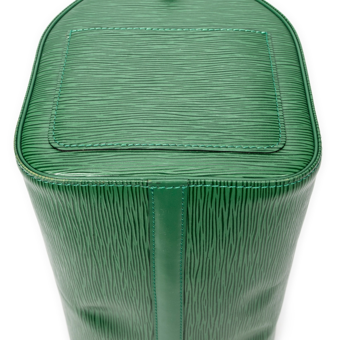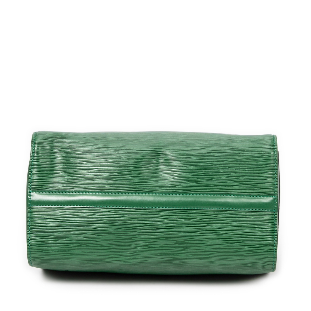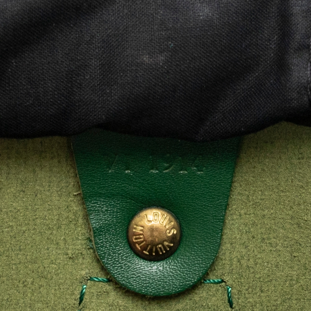 A vintage Louis Vuitton green calf leather Speedy bag with a certificate of authenticity. Approximately 22cm height, 32cm width.