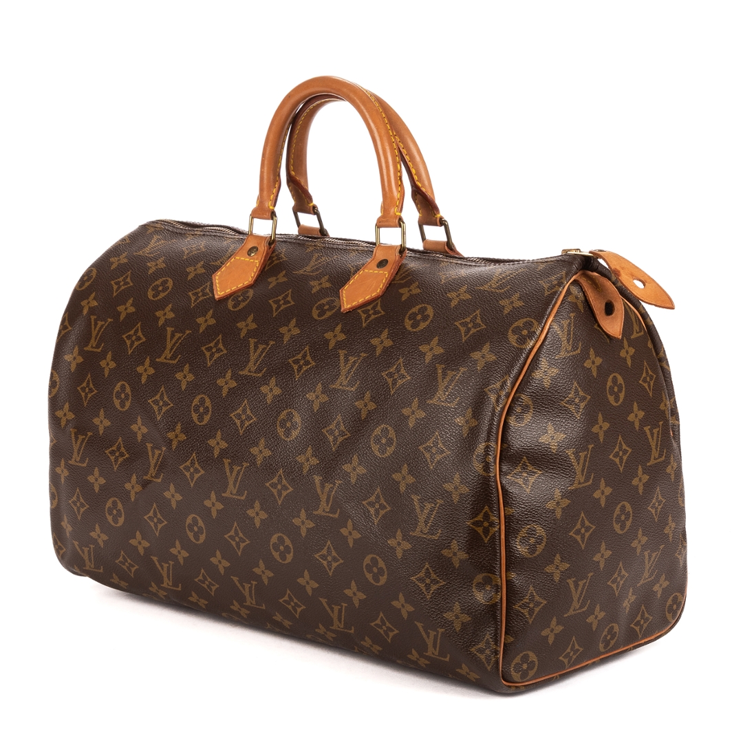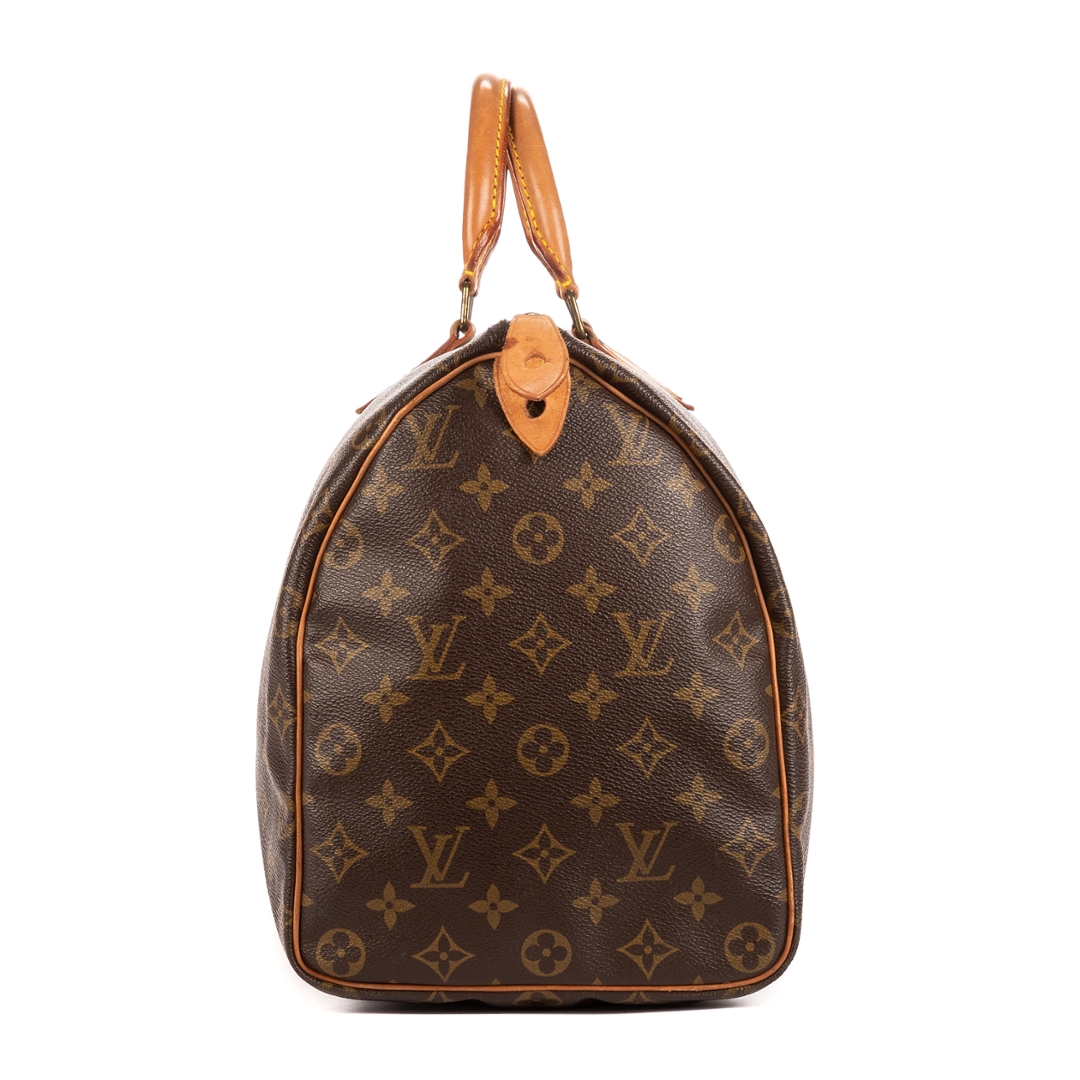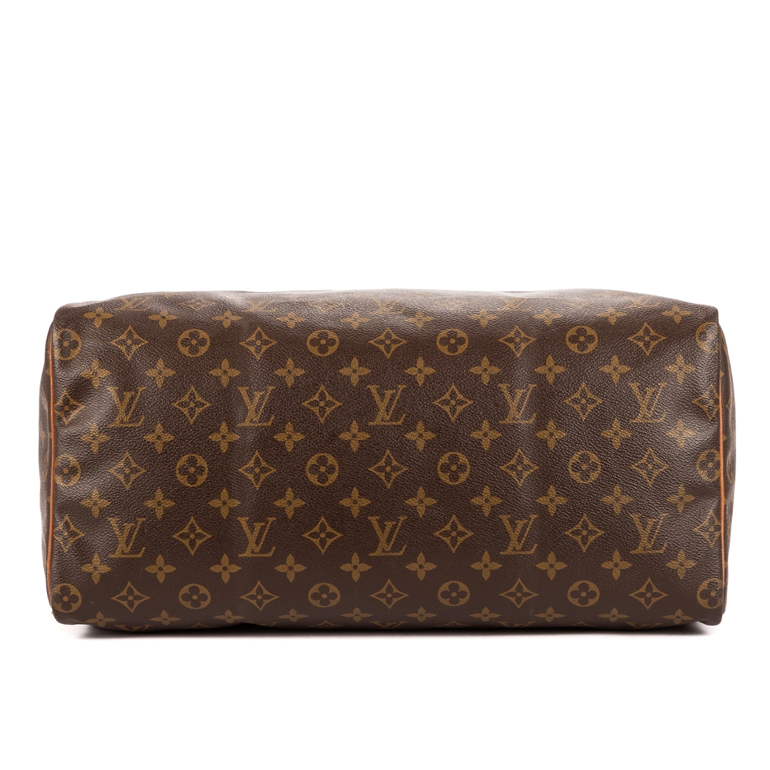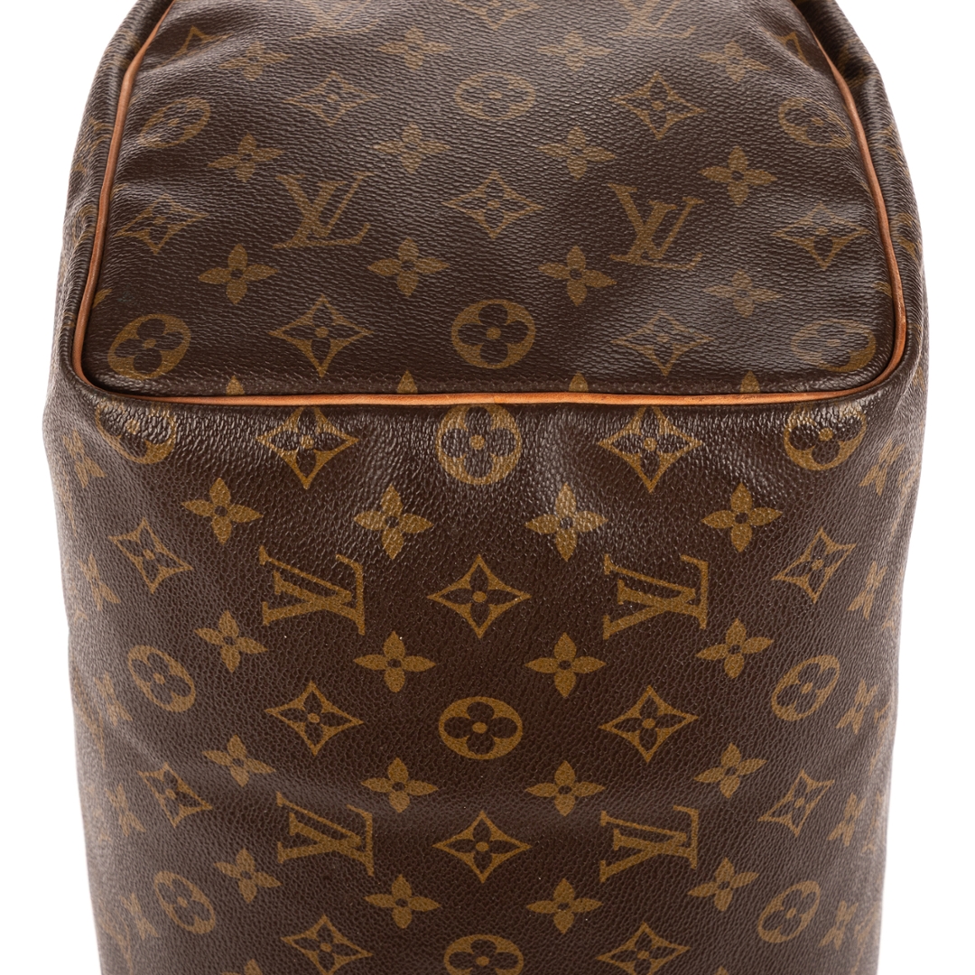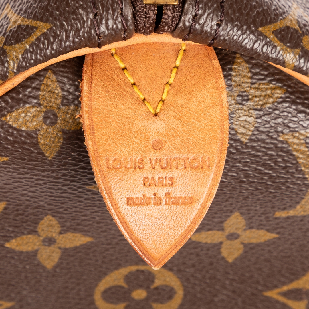 A vintage Louis Vuitton monogram coated canvas Speedy bag with a certificate of authenticity, Approximately 29cm height, 50cm width.