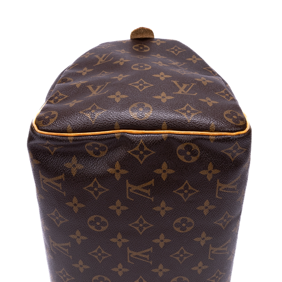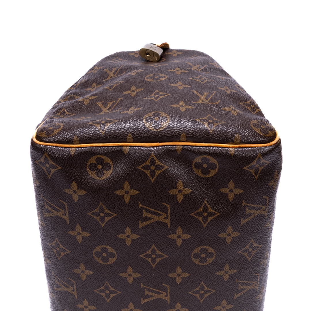 A vintage Louis Vuitton monogram coated canvas Speedy bag with a certificate of authenticity. Approximately 23cm height, 35cm width.